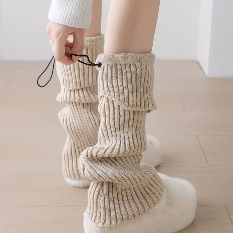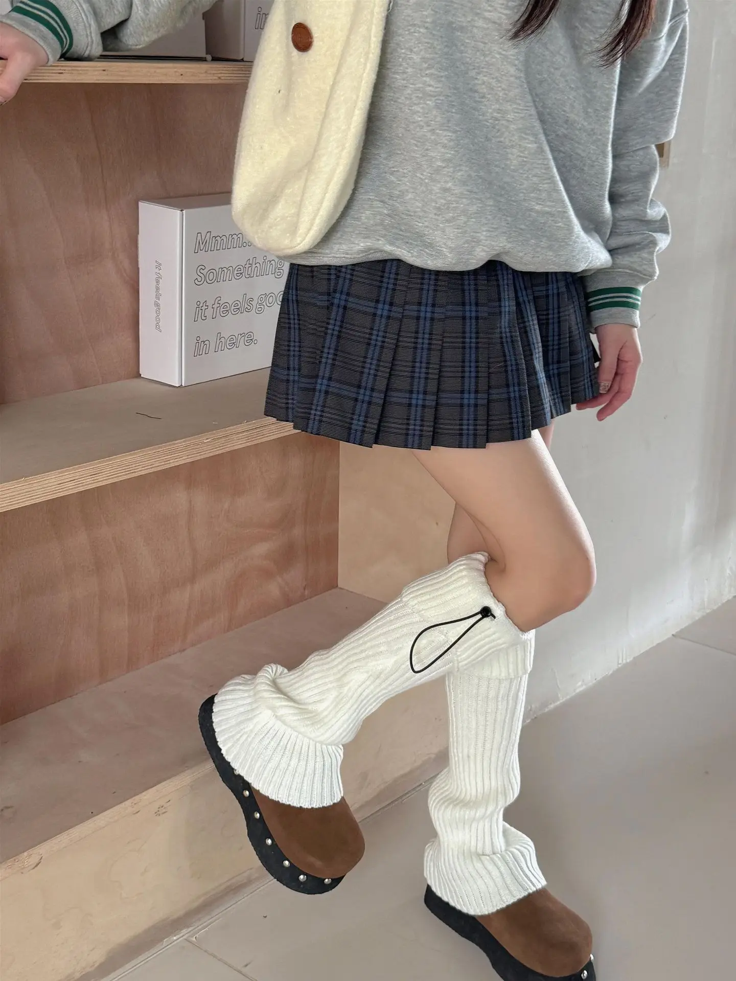Lbsfy Elastic Drawstring Knitted Leg Socks Winter Warm Jk Leggings Stockings Korea Women Y2K Pile Socks Korea Women Calf Socks