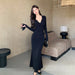 LBSFY -Elegant Black Mermaid Dresses for Women Autumn Winter Lace V-Neck Long Sleeve Party Dress High Waist Slim Fit Vestidos Mujer New