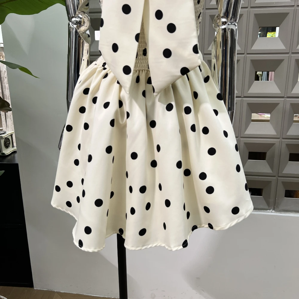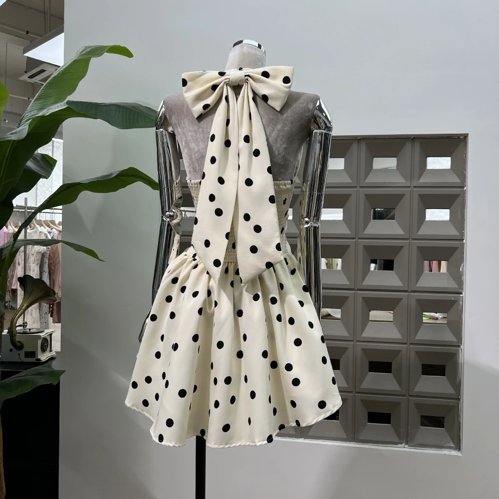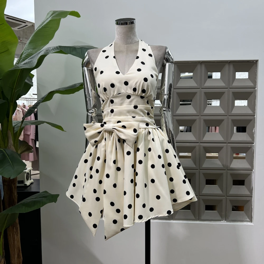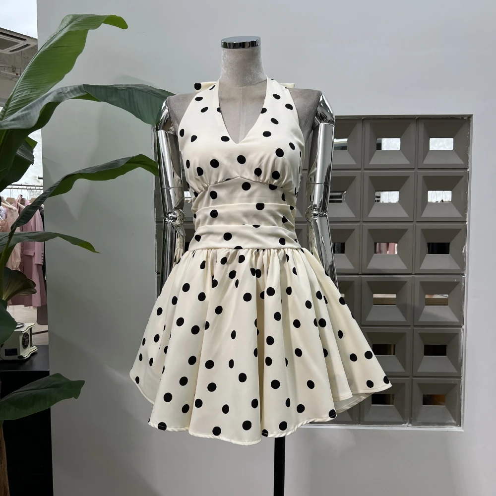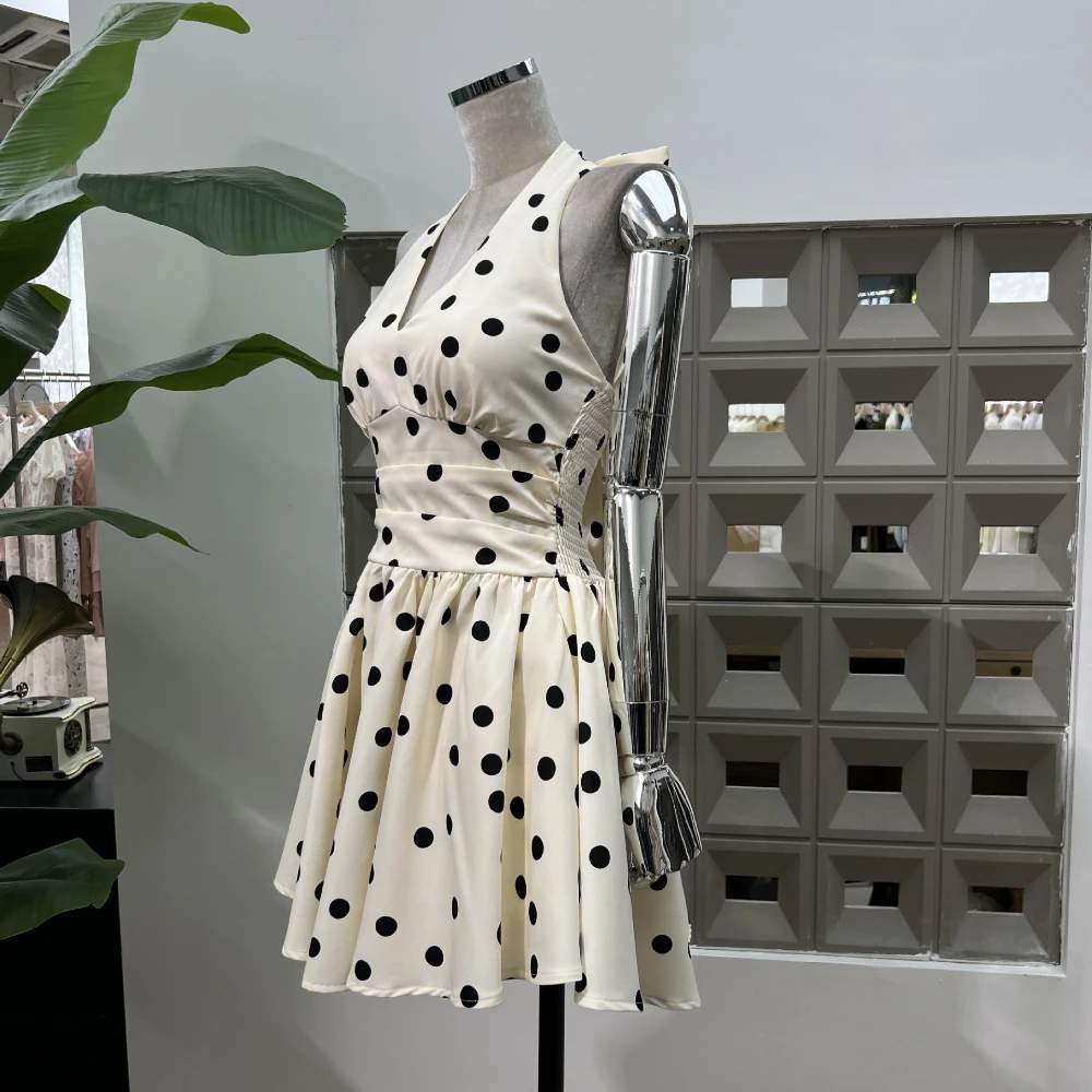 LBSFY -Elegant Dot Halter V-Neck Mini Dress Backless A-Line Gowns Women's Clothing Summer Beach Slimming Holiday Dresses Vestidos