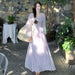 LBSFY -Elegant French Romantic Ruffles Chiffon Purple Women's Dresses Square-Collar Slim Waist Long Sleeves korean Dress Vacation New