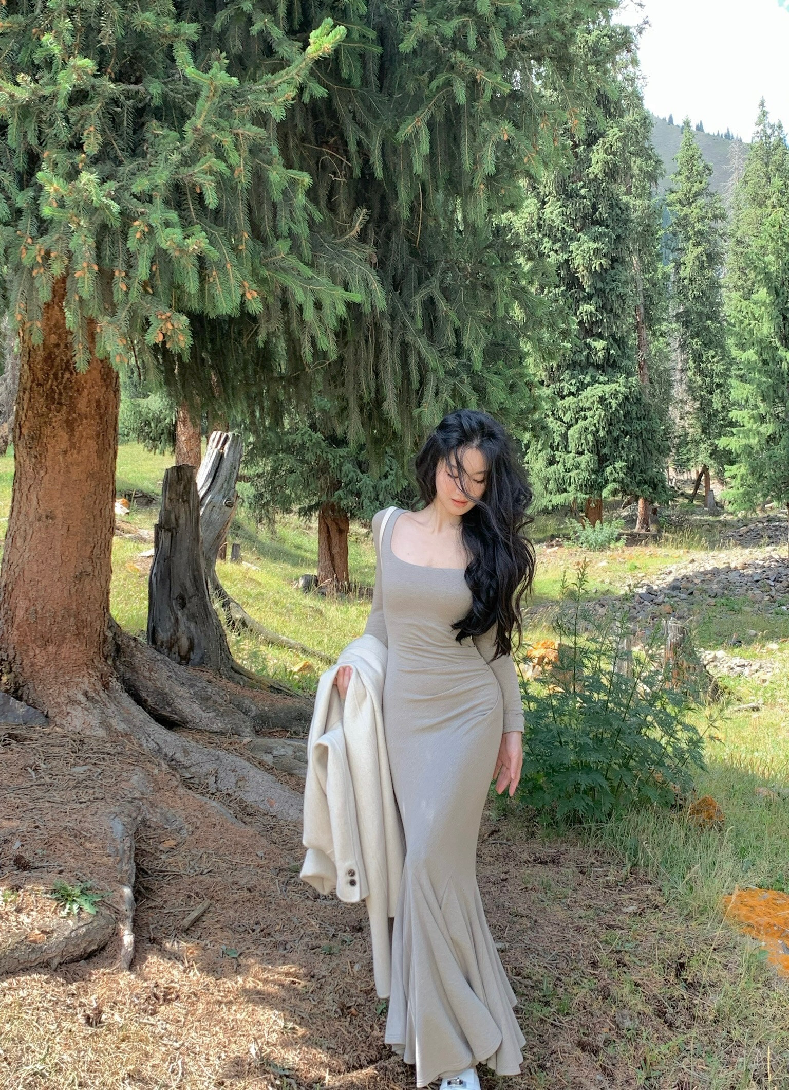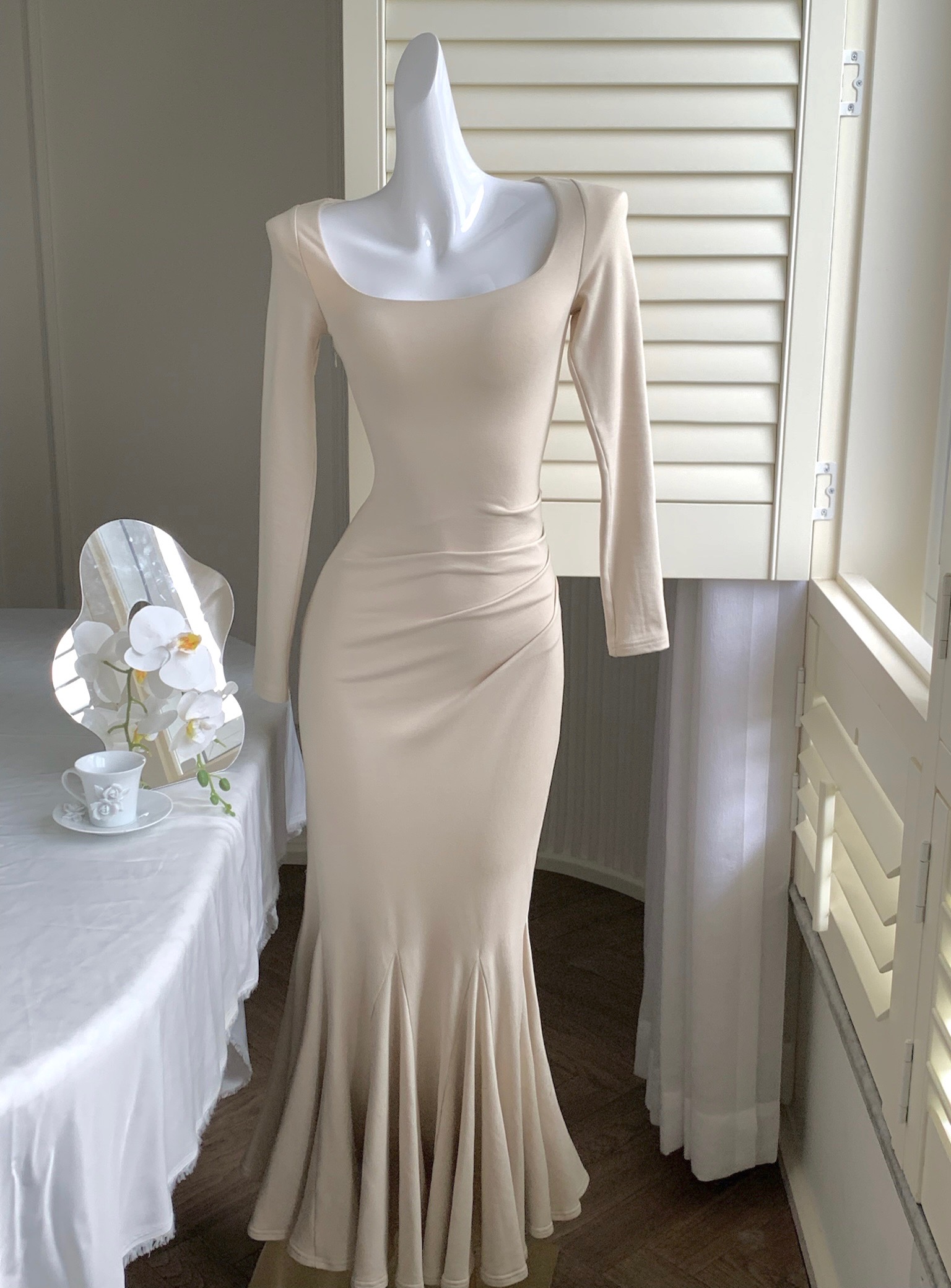 LBSFY -Elegant Long Sleeve Knitted Mermaid Dresses Women Sexy Fashion Slim Solid Evening Party Prom Casual Vestido Mujer New Autumn
