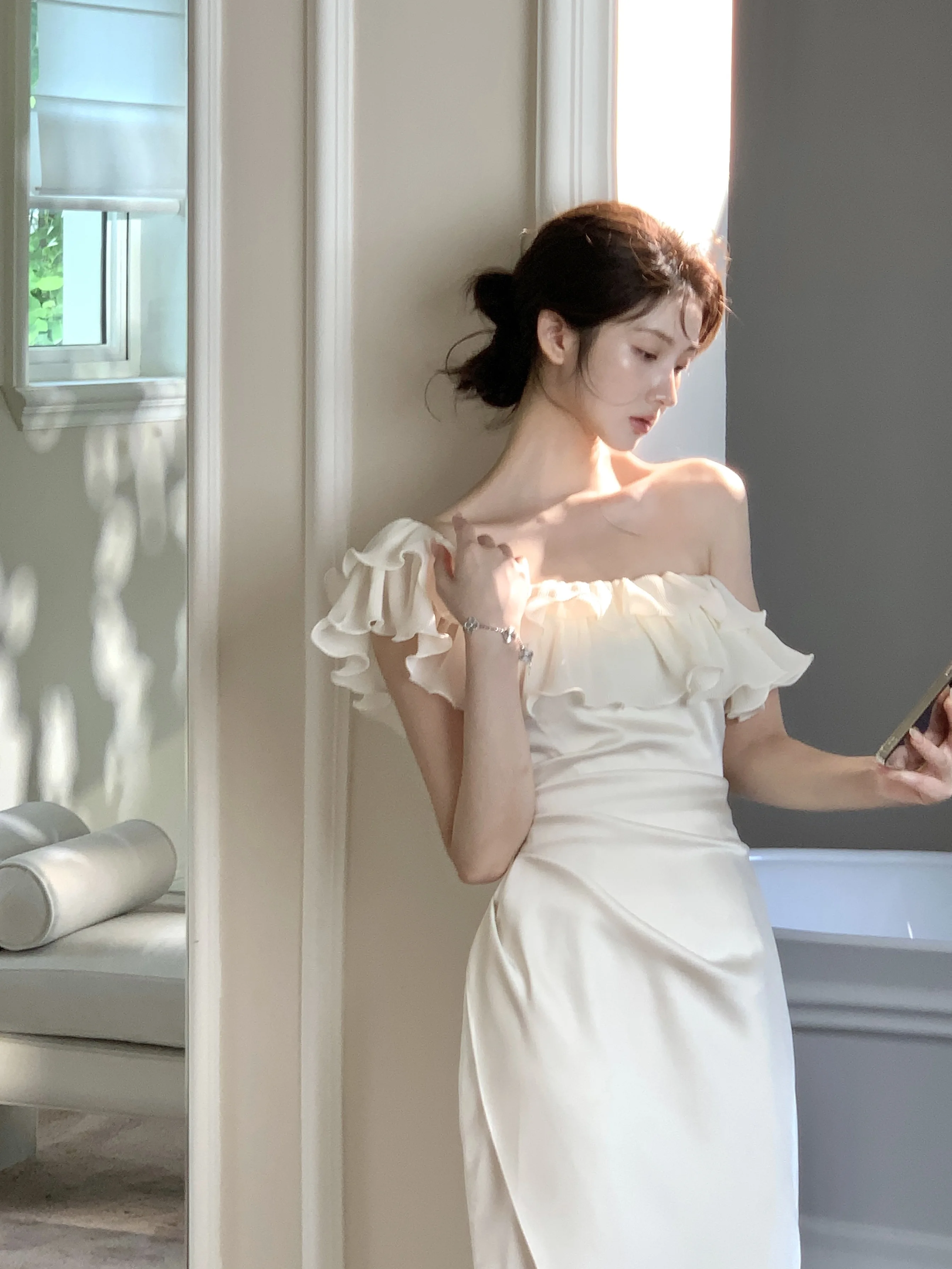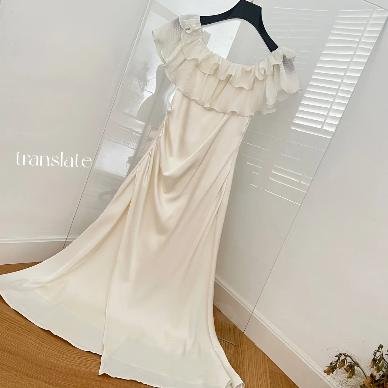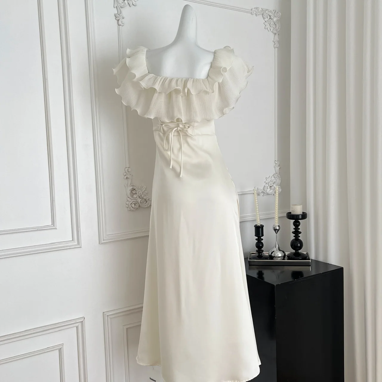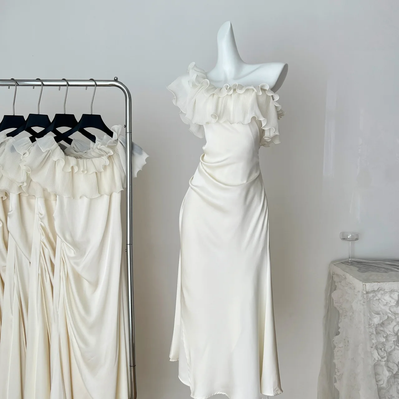LBSFY -Elegant Party Chic Satin Mermaid Dress For Woman Ruffles Slash-Neck Slim Fit Patchwork Solid Dresses Evening Prom Female Clothes