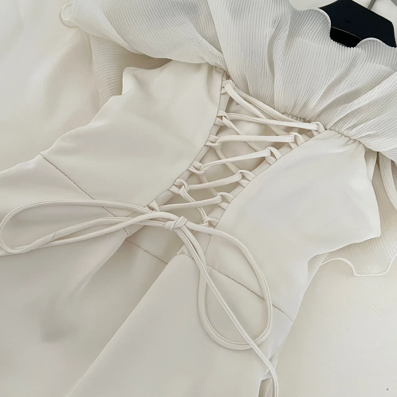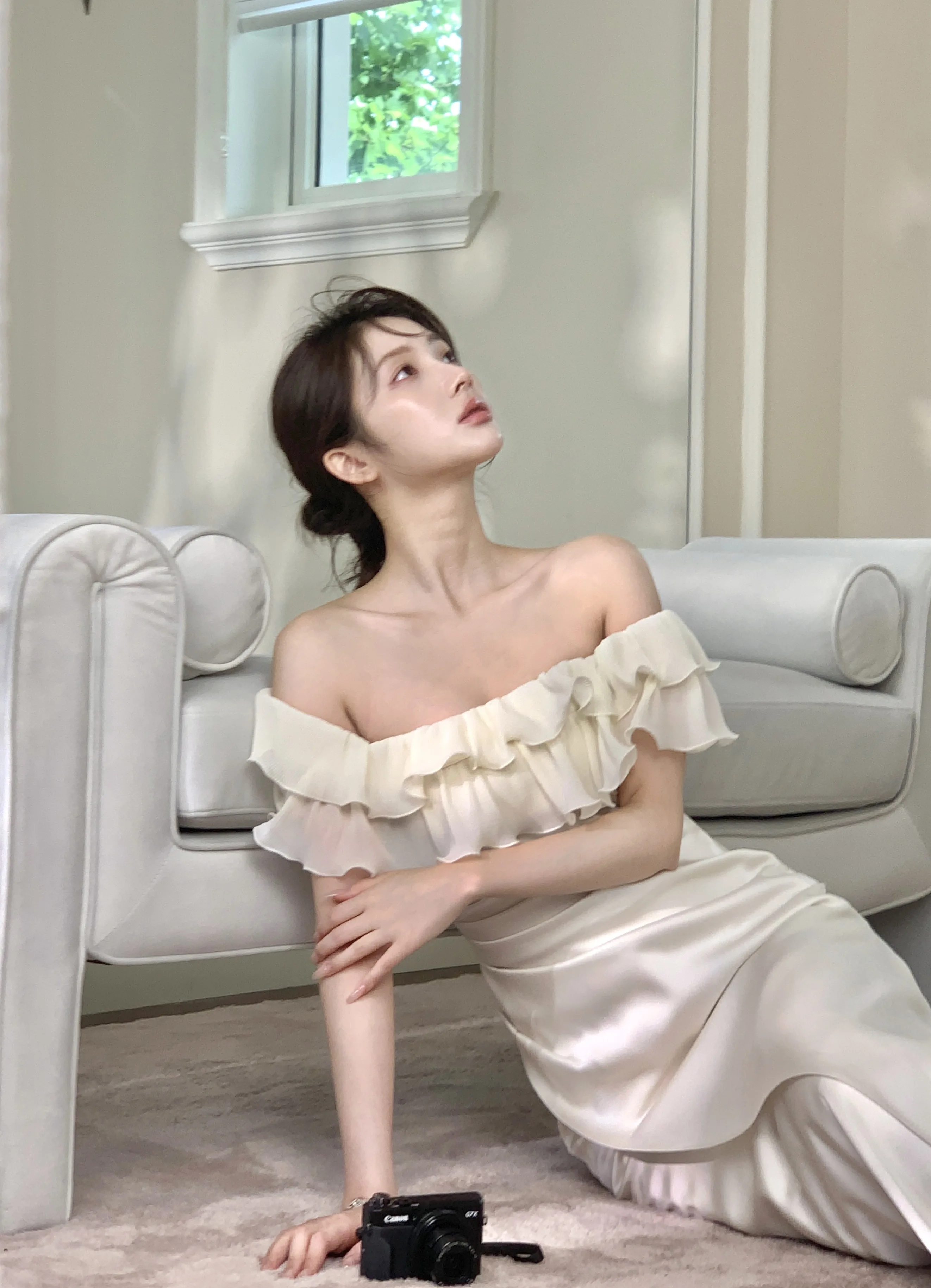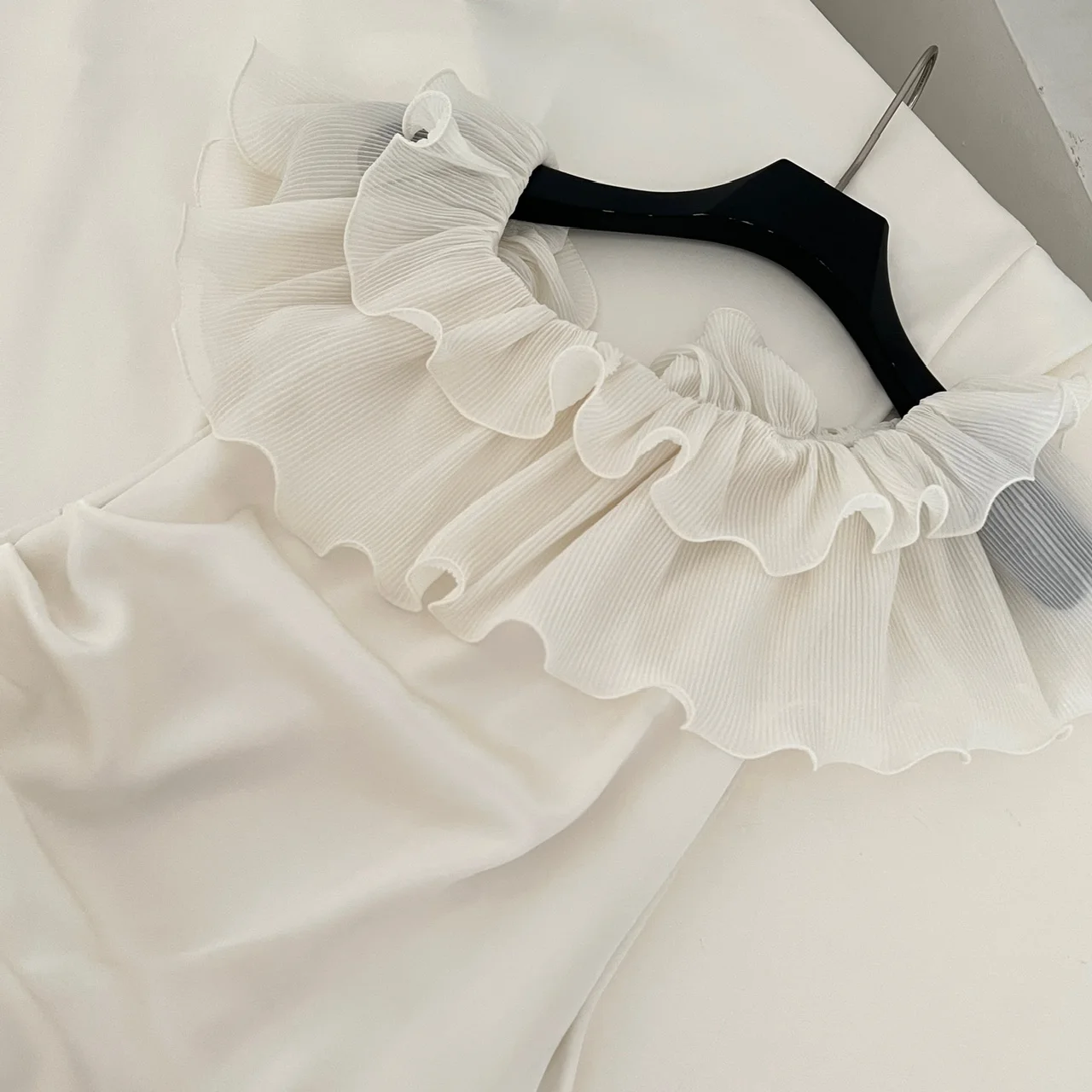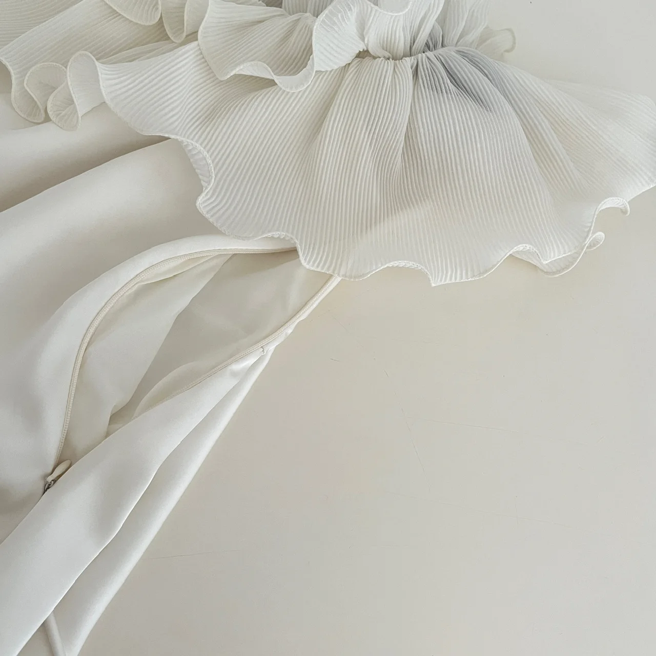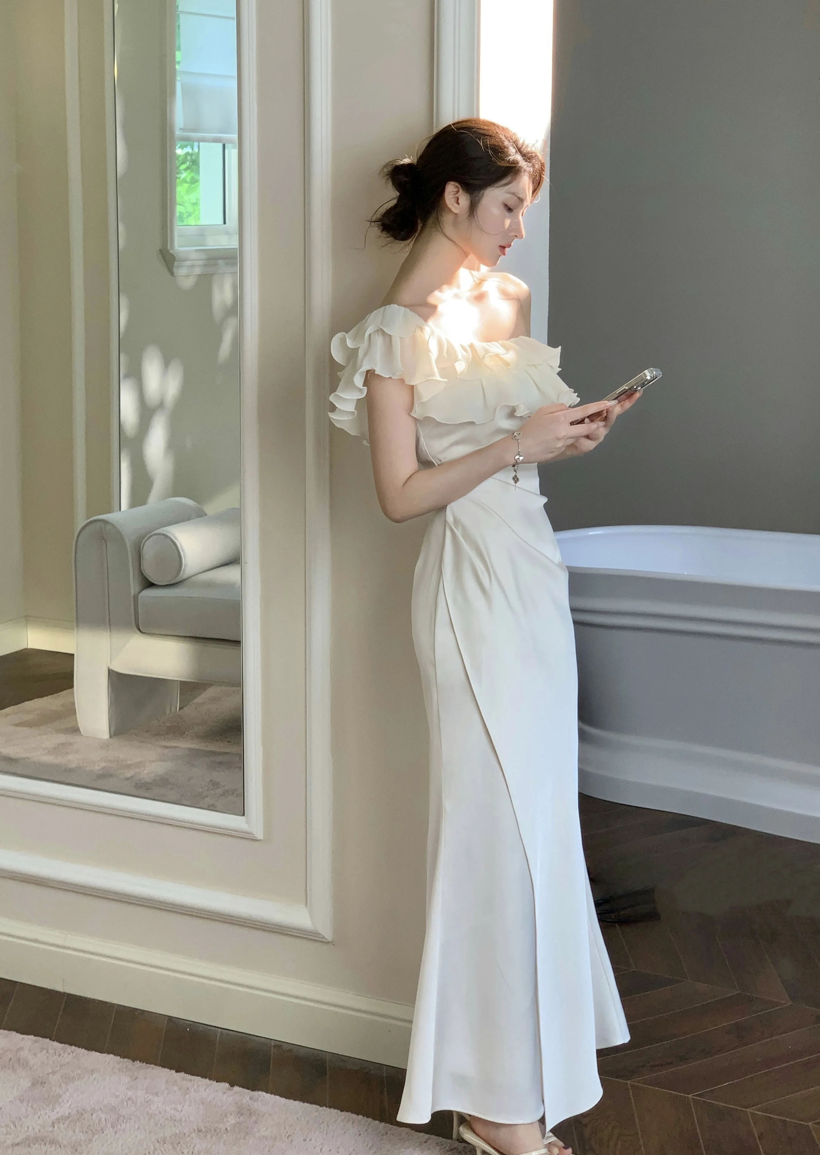 LBSFY -Elegant Party Chic Satin Mermaid Dress For Woman Ruffles Slash-Neck Slim Fit Patchwork Solid Dresses Evening Prom Female Clothes