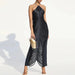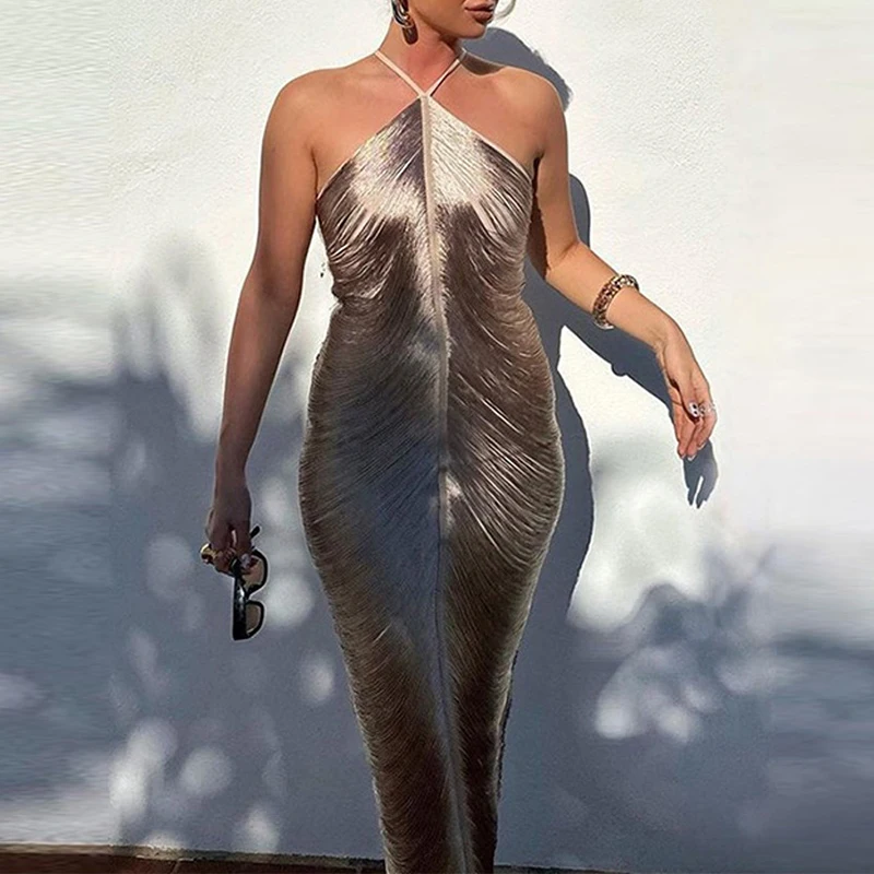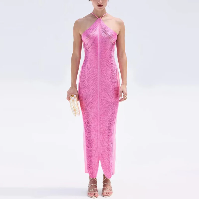 LBSFY - Elegant Sleeveless Hollow-shoulder Long Dress Fashion Women Solid Temperament Tassel Dress Sexy Slim Halter Club Party Dress