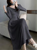 LBSFY -Elegant Solid Evening Dresses for Women Autumn Wedding Prom Robe Pleated Halter Long Sleeves Swinging Collar Vestidos Mujer New