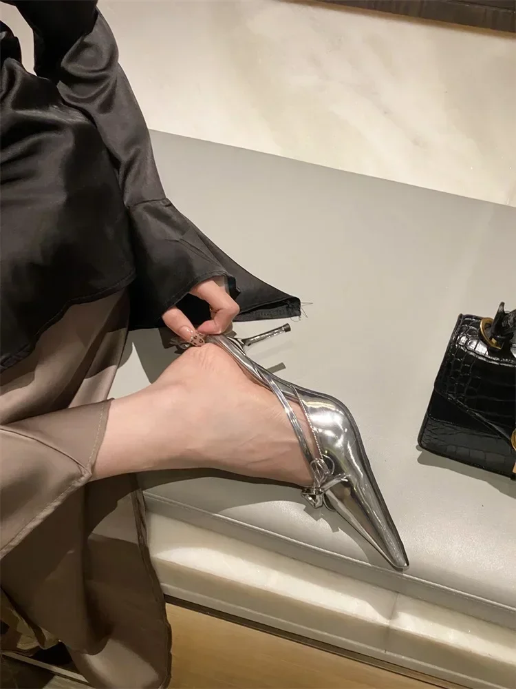 Lbsfy Elegant Thin High Heel Slide Sandals Women Fashion Butterfly-knot Pointed Toe Women Slippers Sexy Party Dress Shoes Luxury Heels