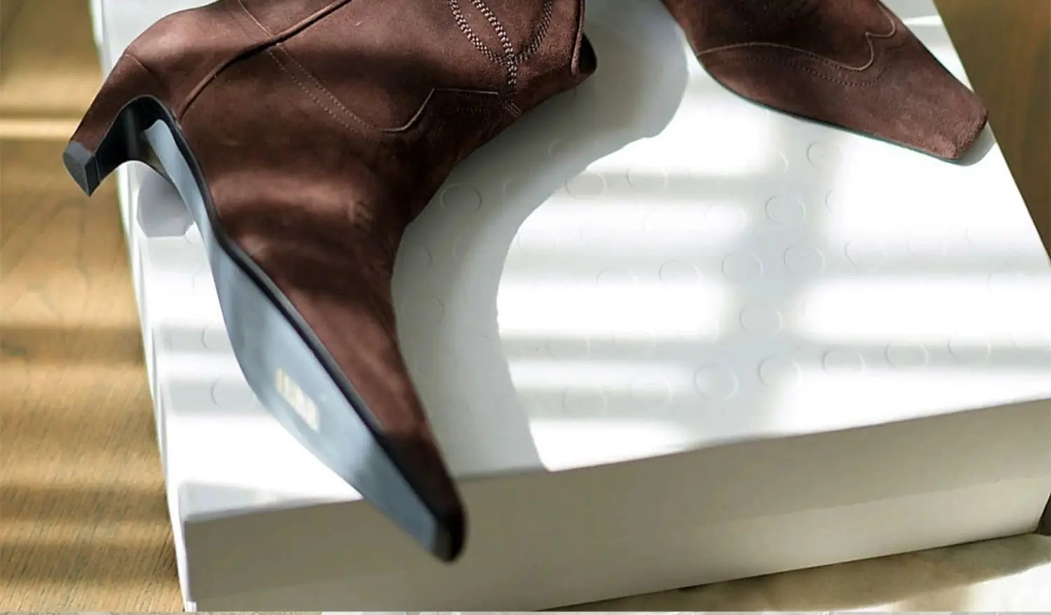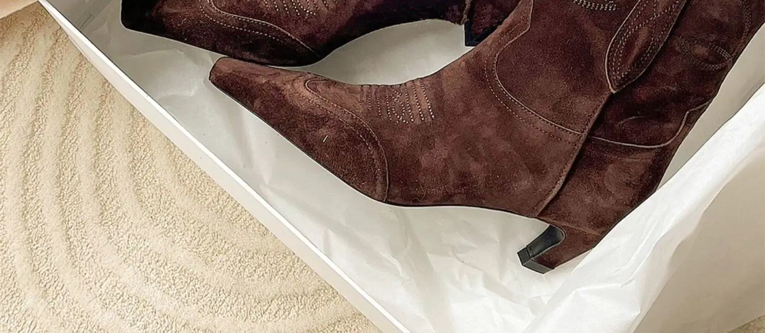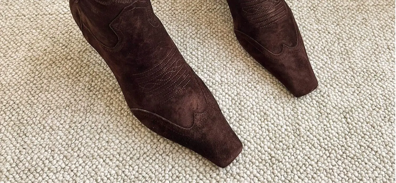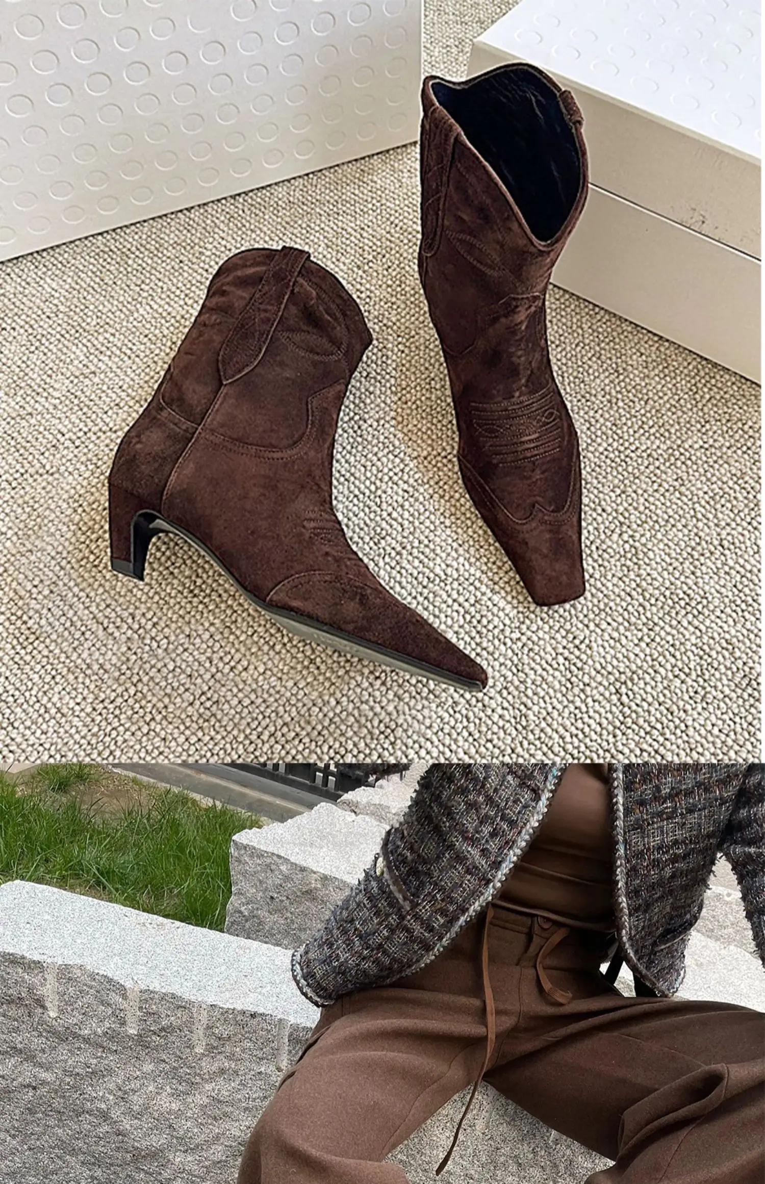 LBSFY - Embroidered Square Toe Cat Heel Western Cowboy Boots Woman Winter 2024 Slip-On Shaped Heel Slim Boots Fashion Shoes for Women