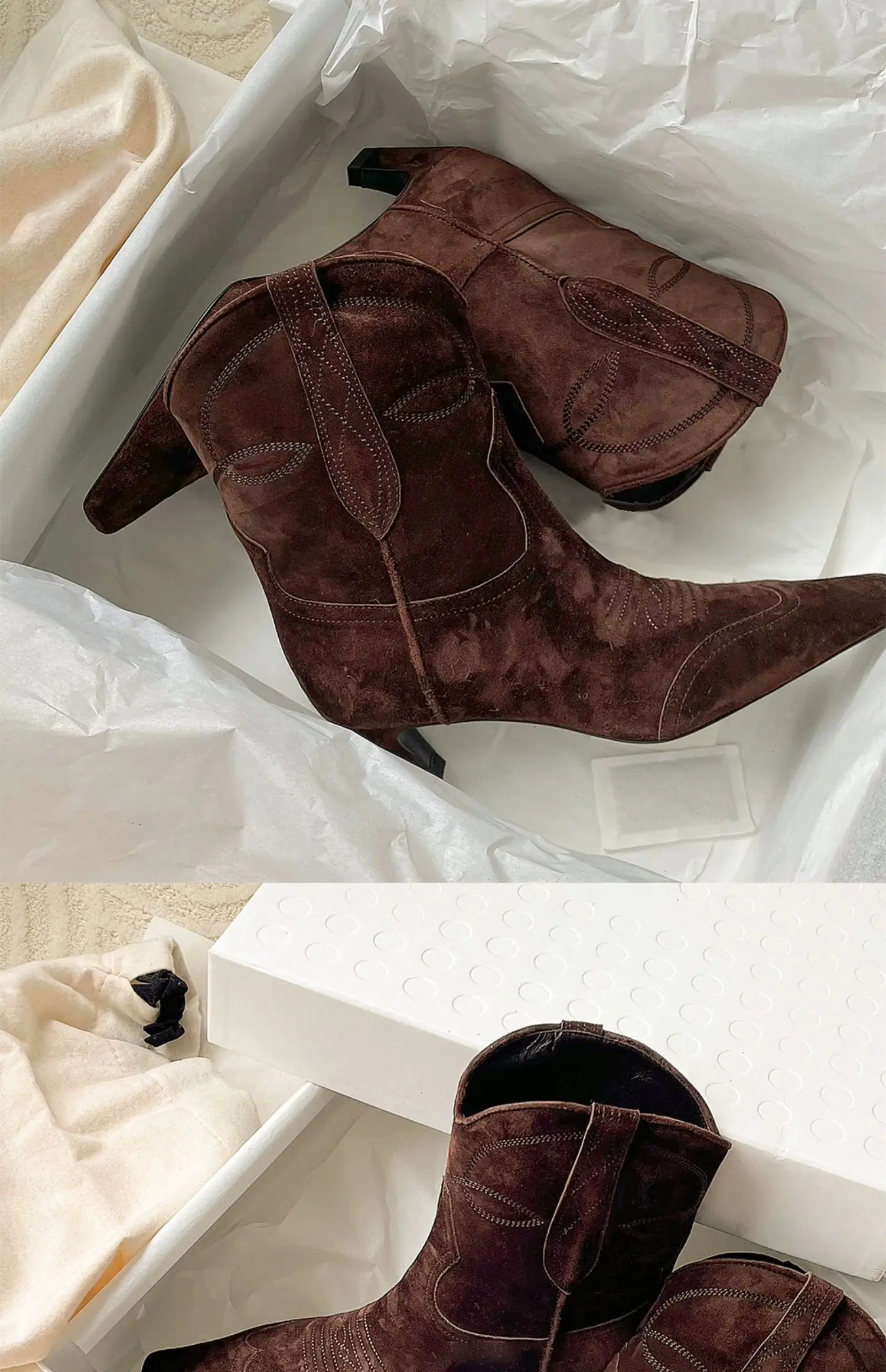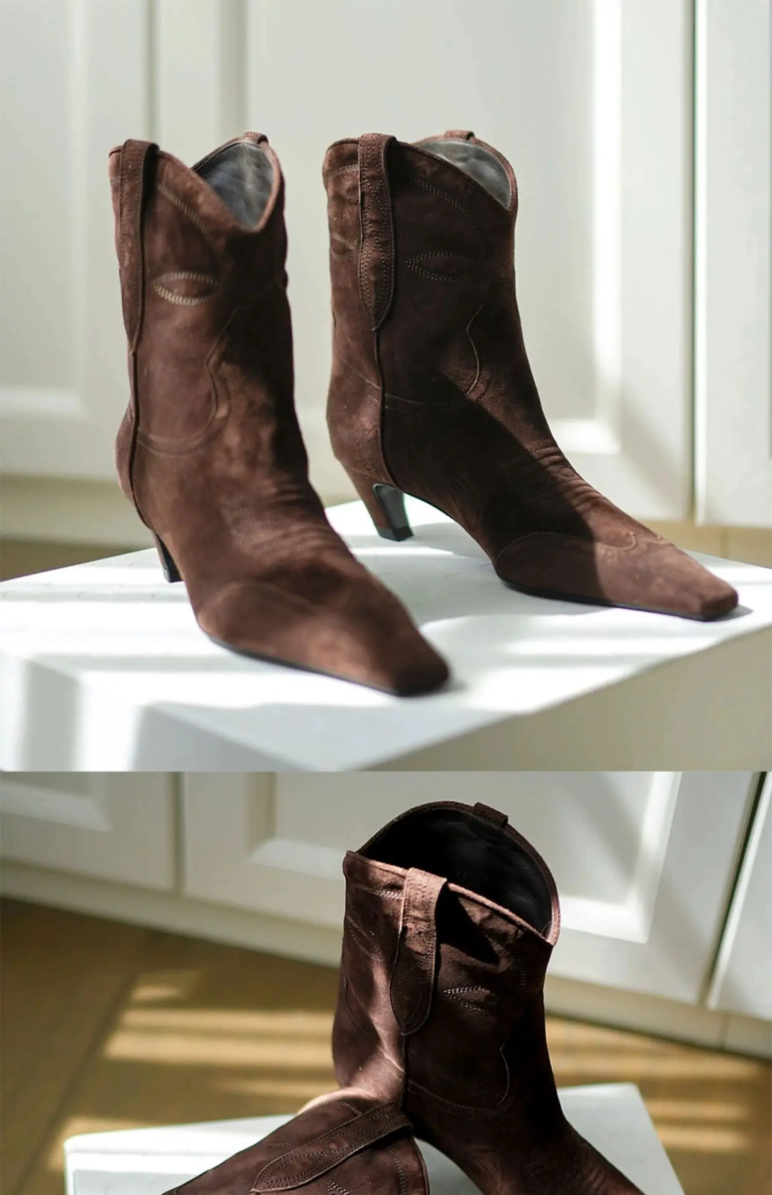 LBSFY  -  Embroidered Square Toe Cat Heel Western Cowboy Boots Woman Winter 2024 Slip-On Shaped Heel Slim Boots Fashion Shoes for Women
