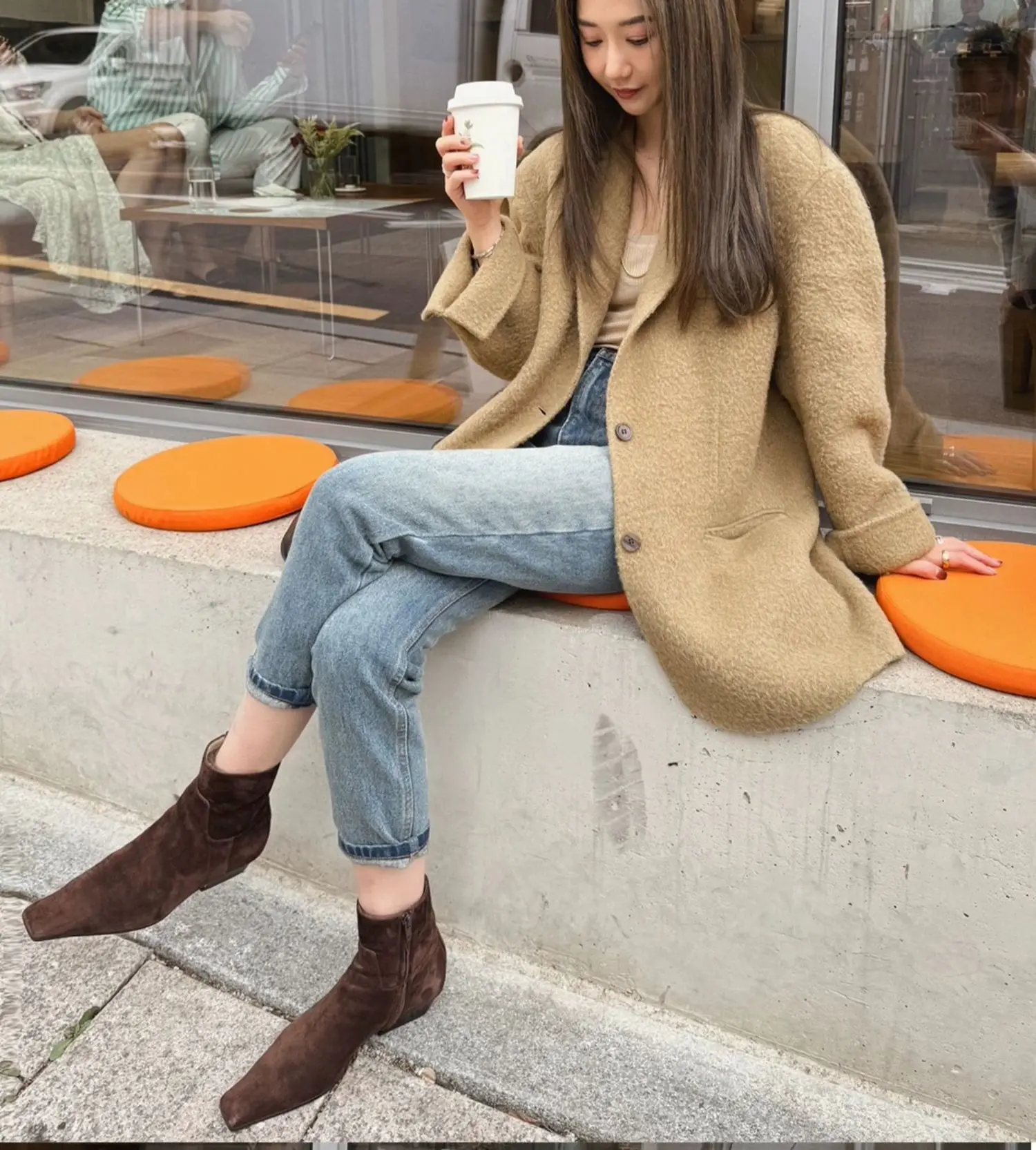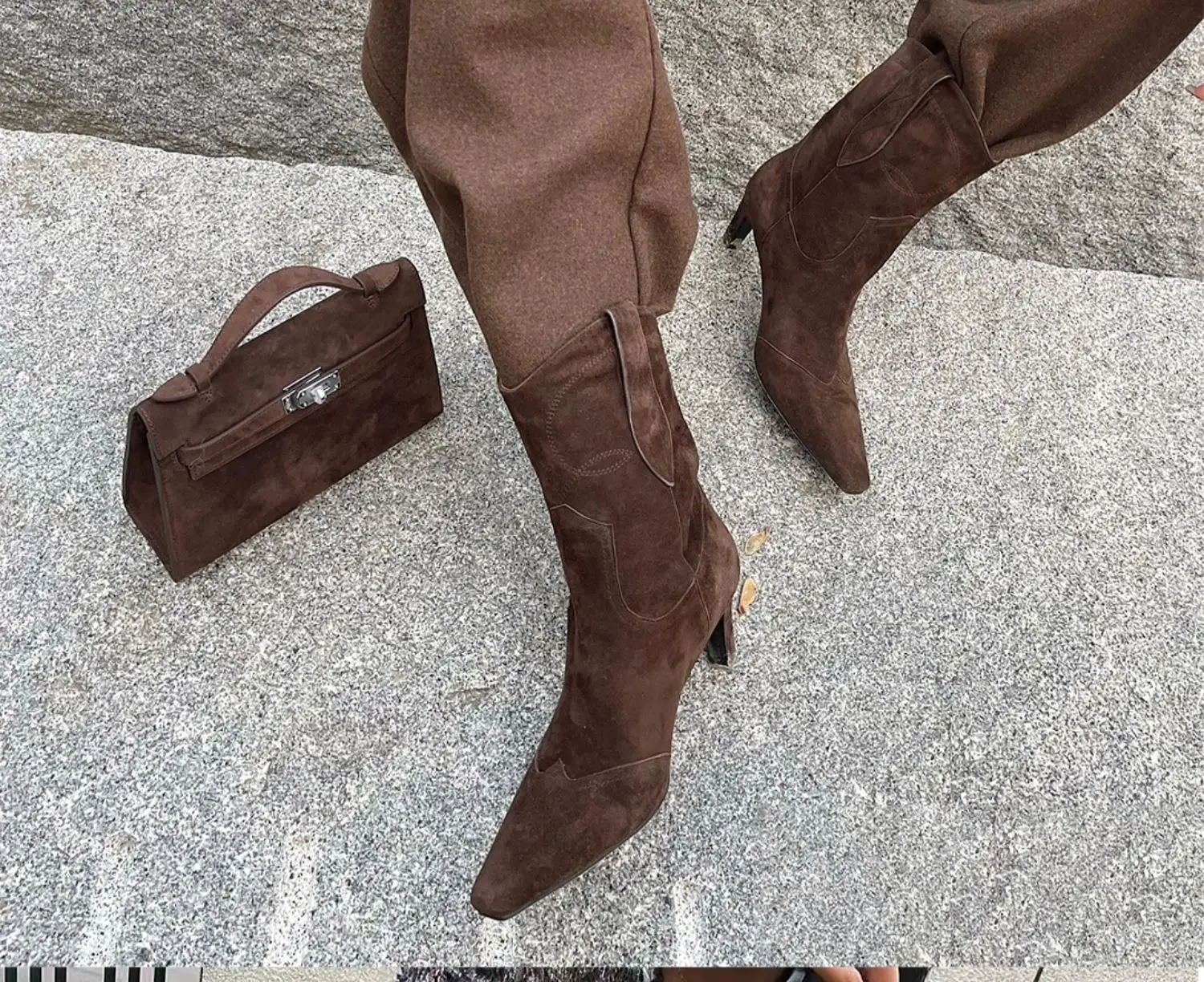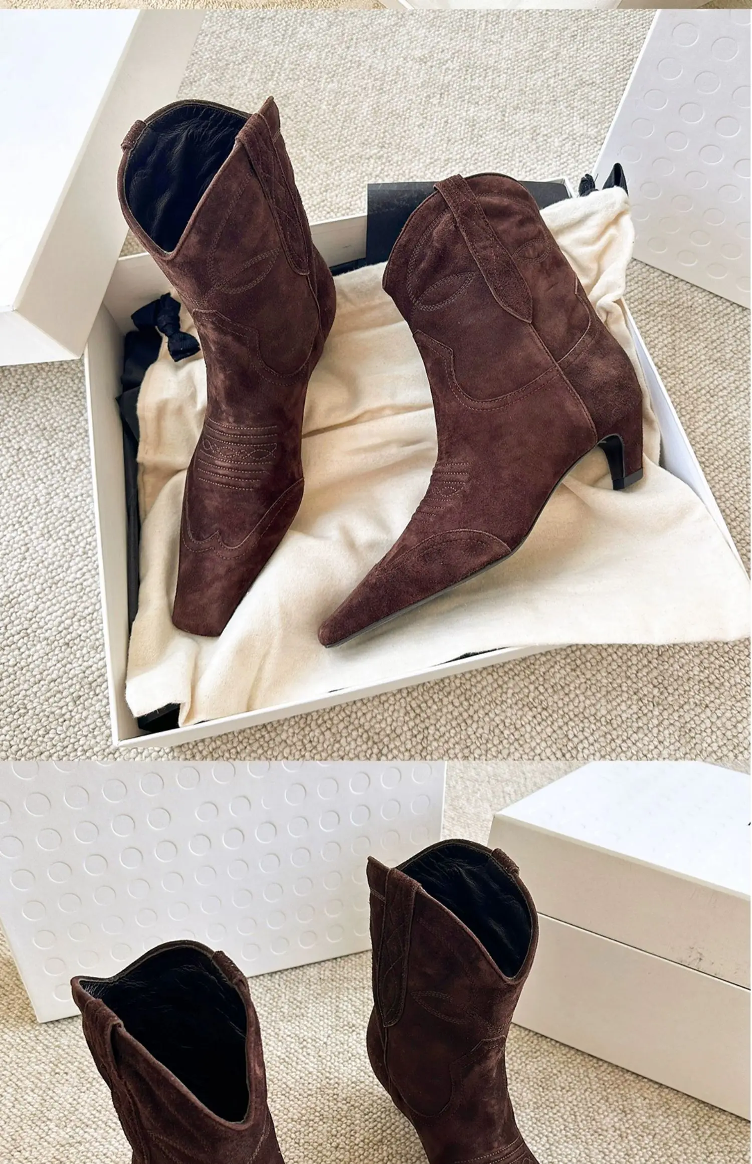 LBSFY  -  Embroidered Square Toe Cat Heel Western Cowboy Boots Woman Winter 2024 Slip-On Shaped Heel Slim Boots Fashion Shoes for Women