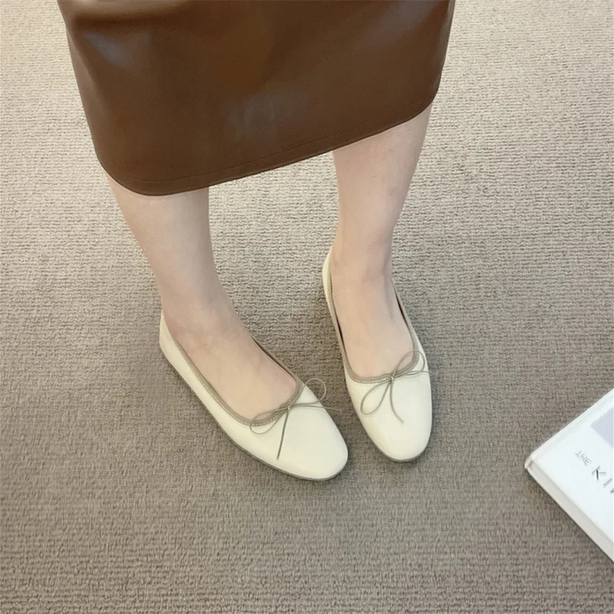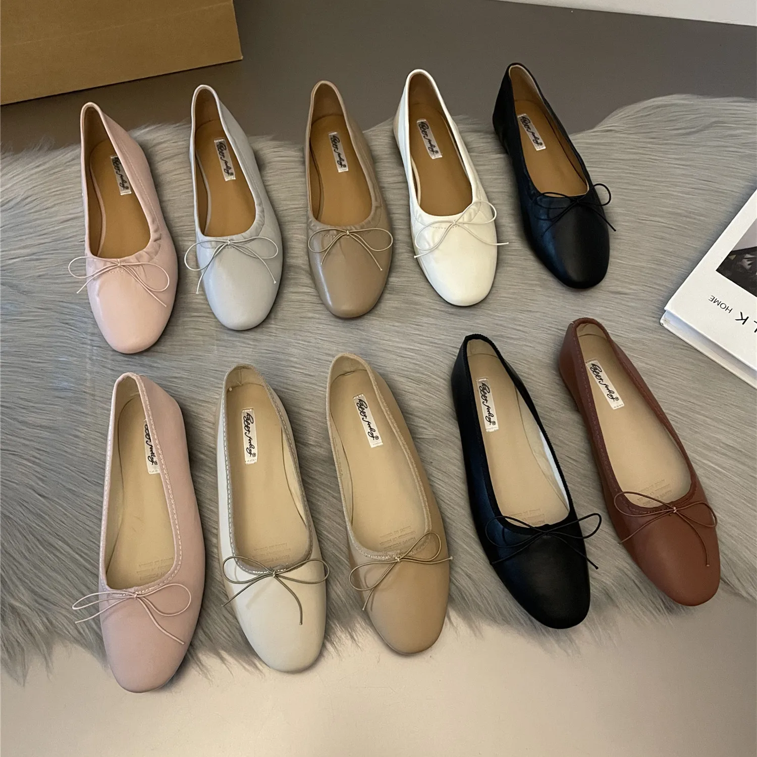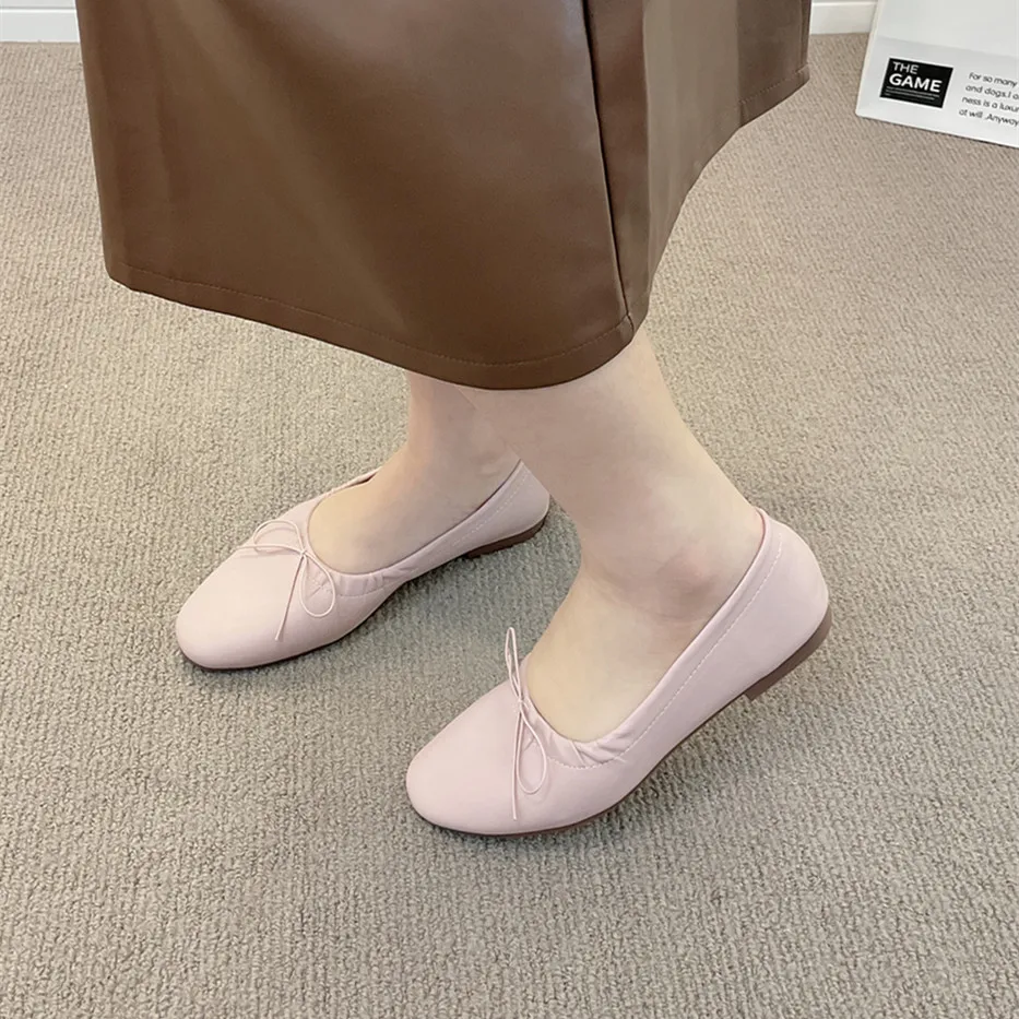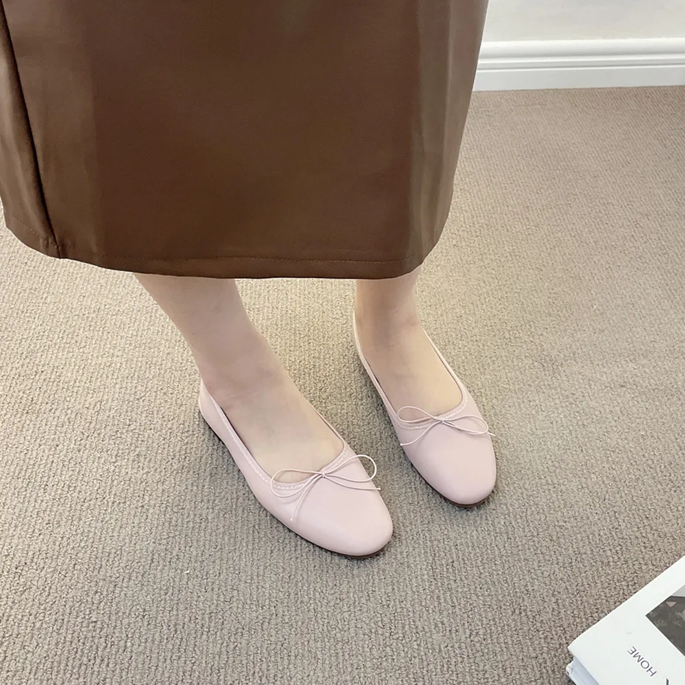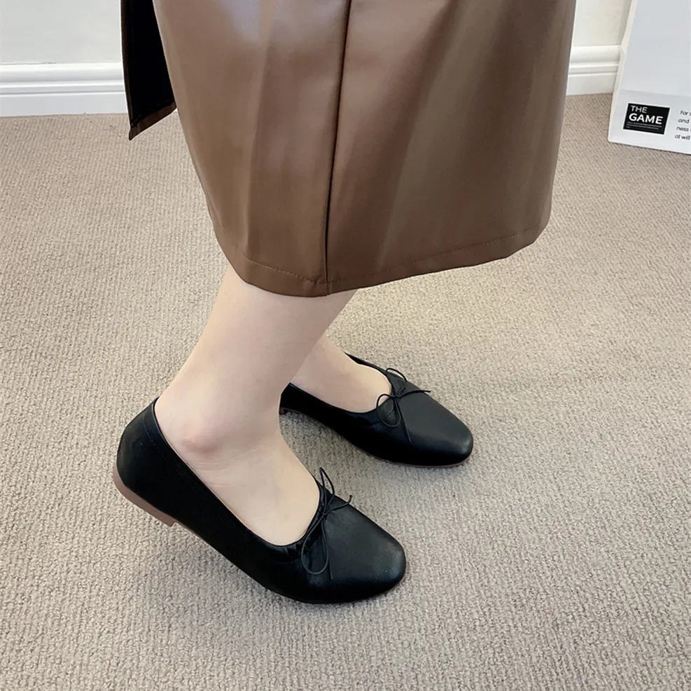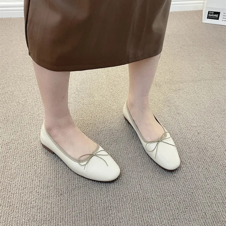 LBSFY -Fashion Bow Tie Flats Ballet Shoes Women Female Ballet Round Toe Shallow Cut Ballerina Soft Moccasin Dress Shoes Zapato