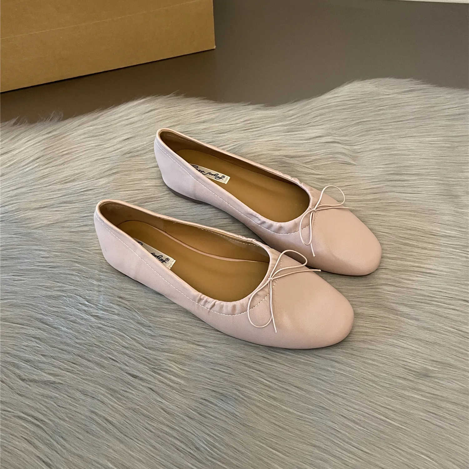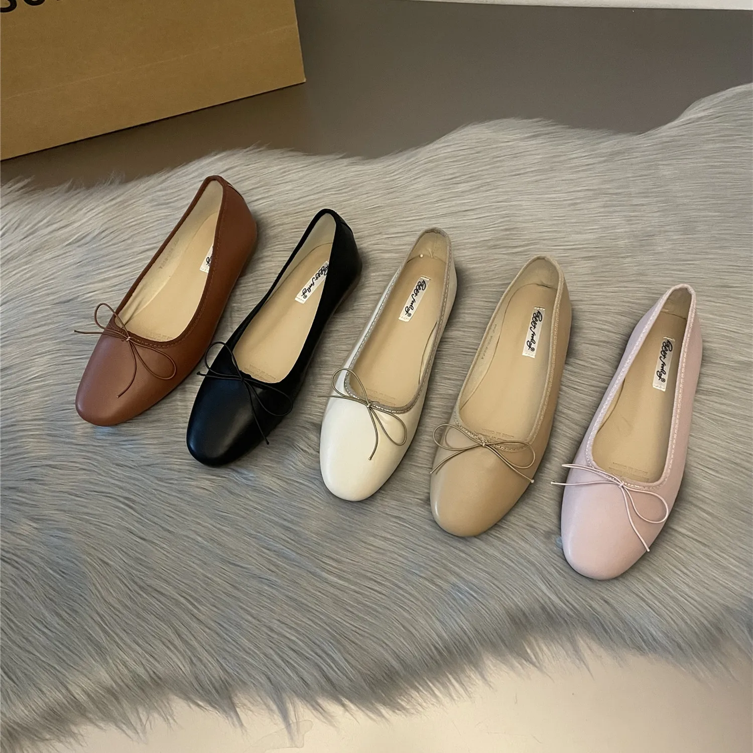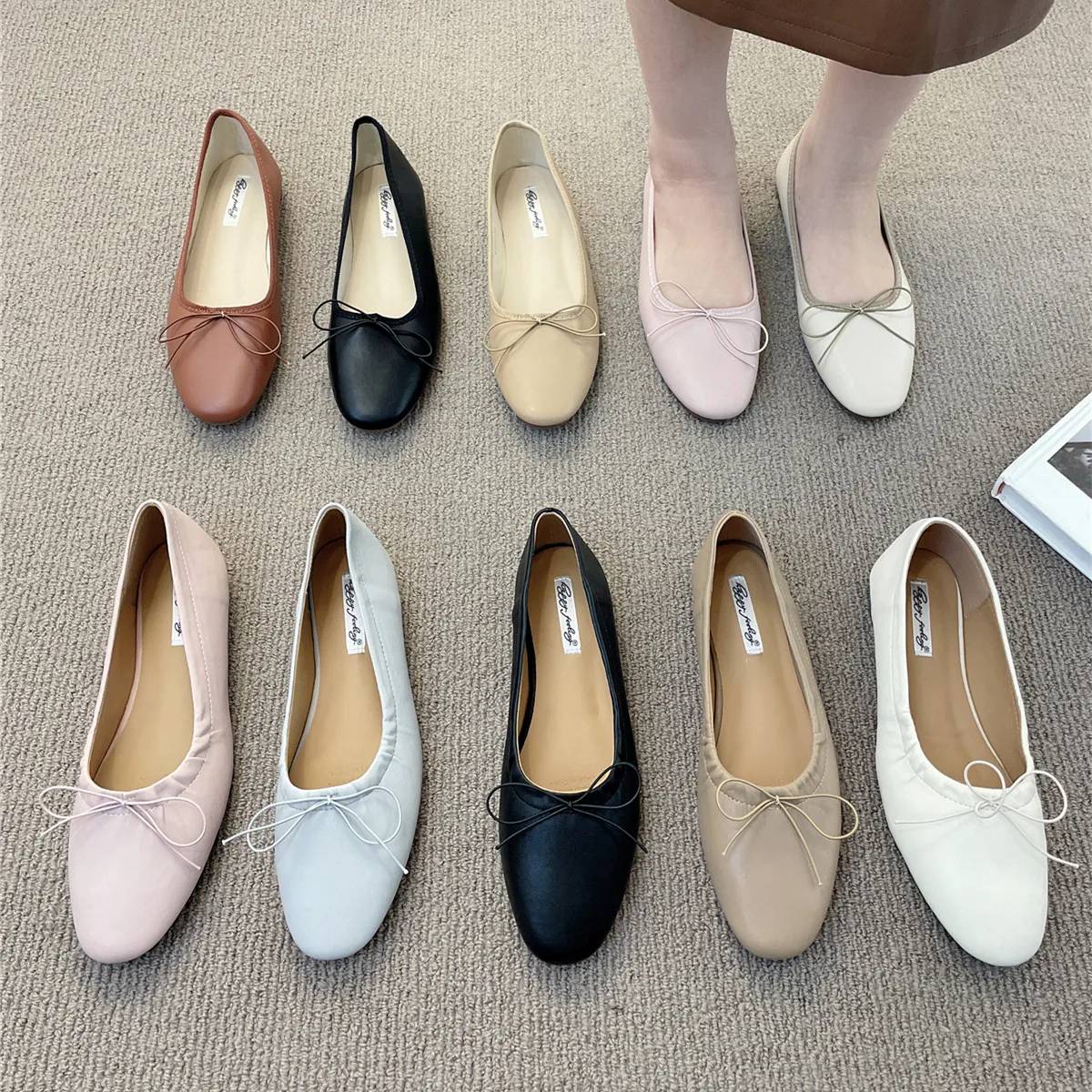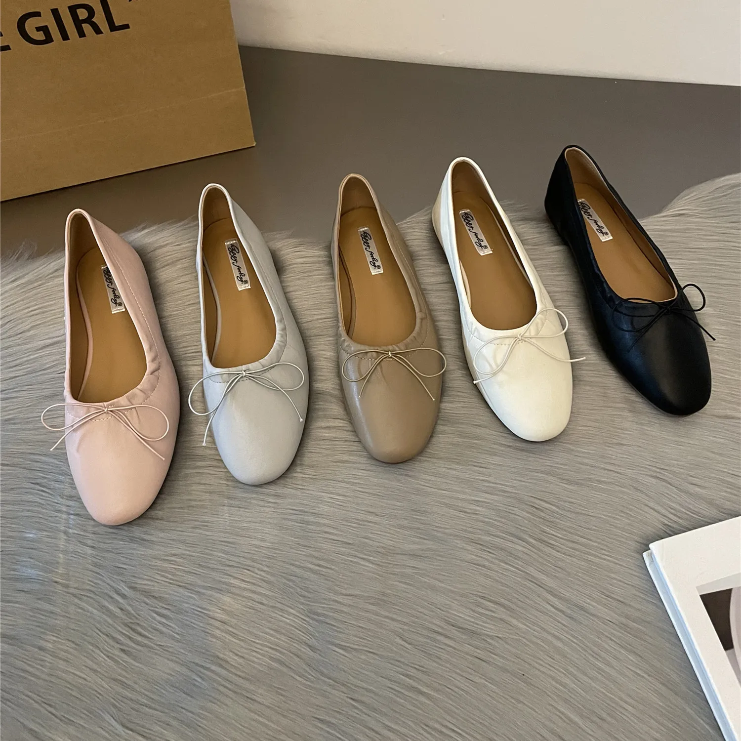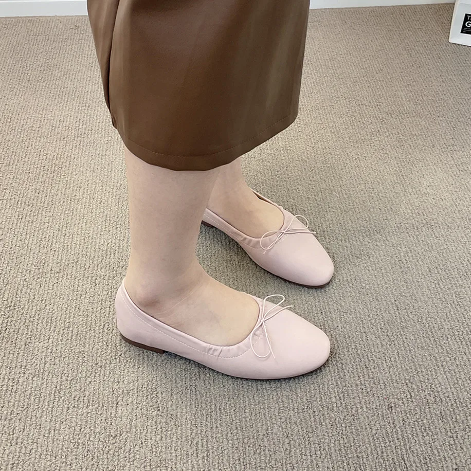 LBSFY -Fashion Bow Tie Flats Ballet Shoes Women Female Ballet Round Toe Shallow Cut Ballerina Soft Moccasin Dress Shoes Zapato