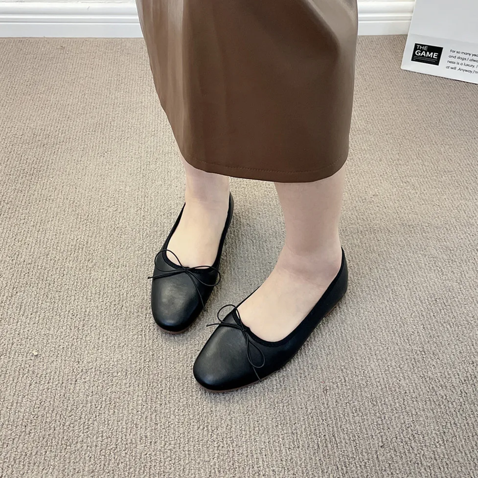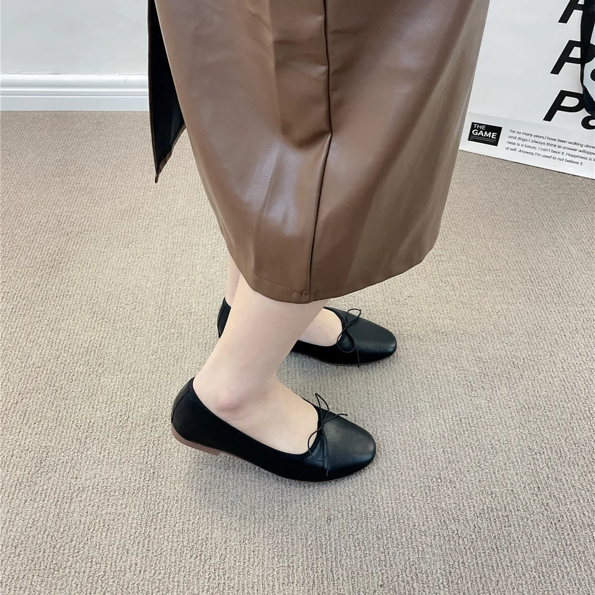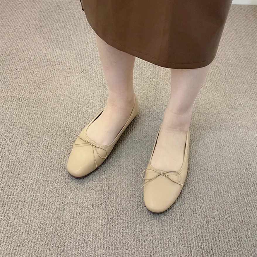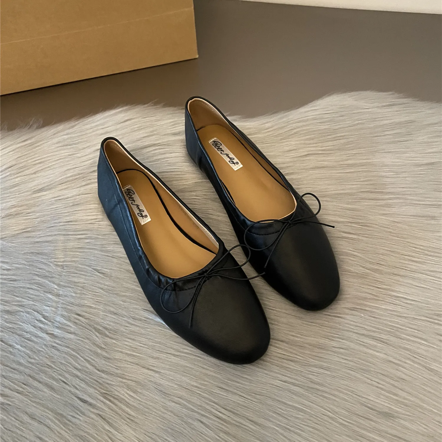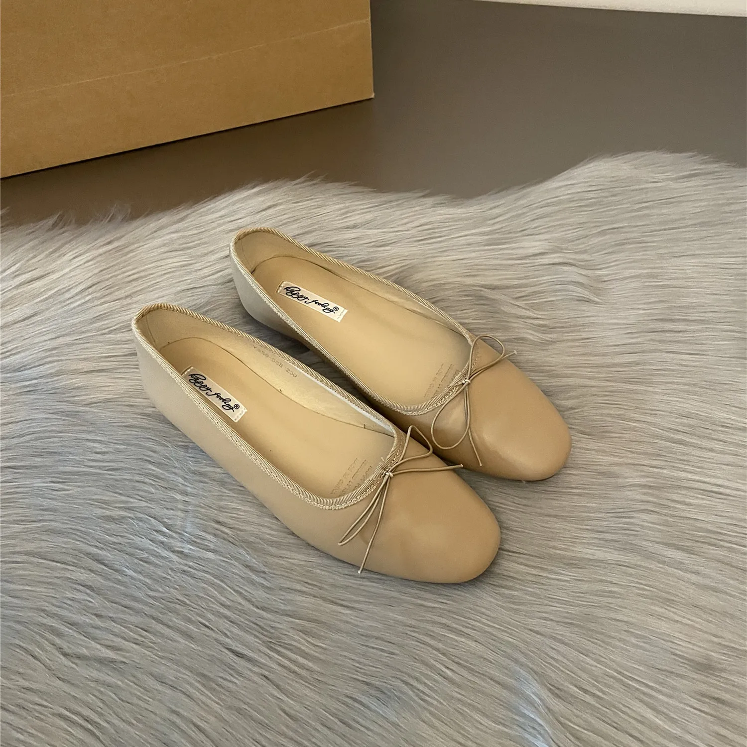 LBSFY -Fashion Bow Tie Flats Ballet Shoes Women Female Ballet Round Toe Shallow Cut Ballerina Soft Moccasin Dress Shoes Zapato
