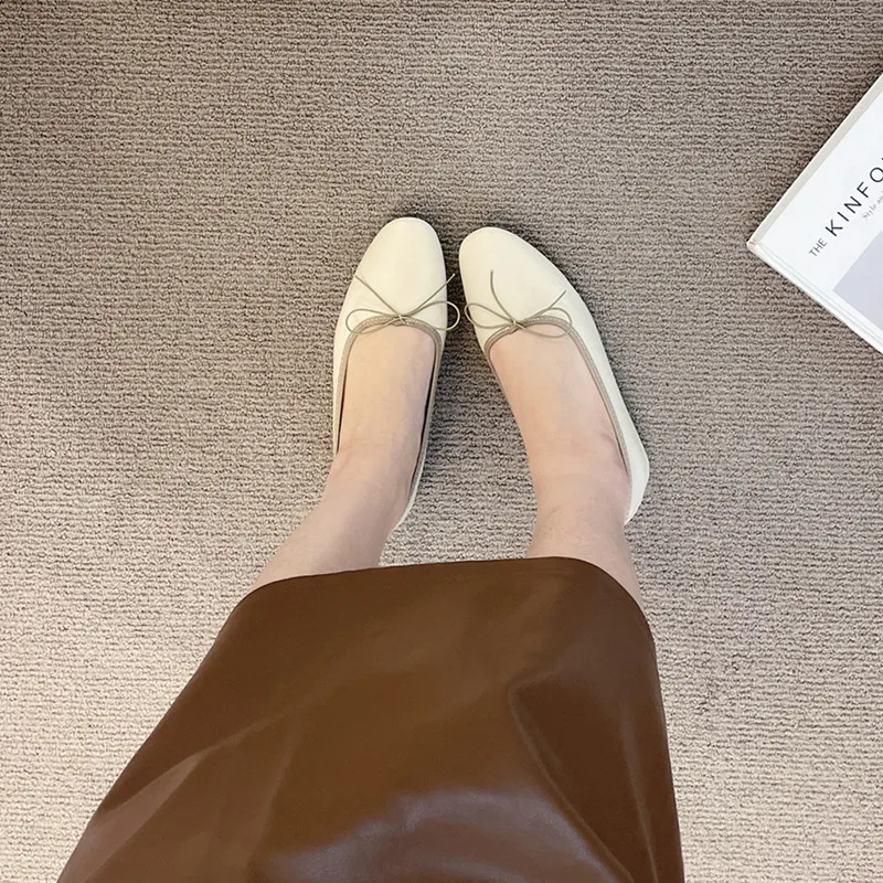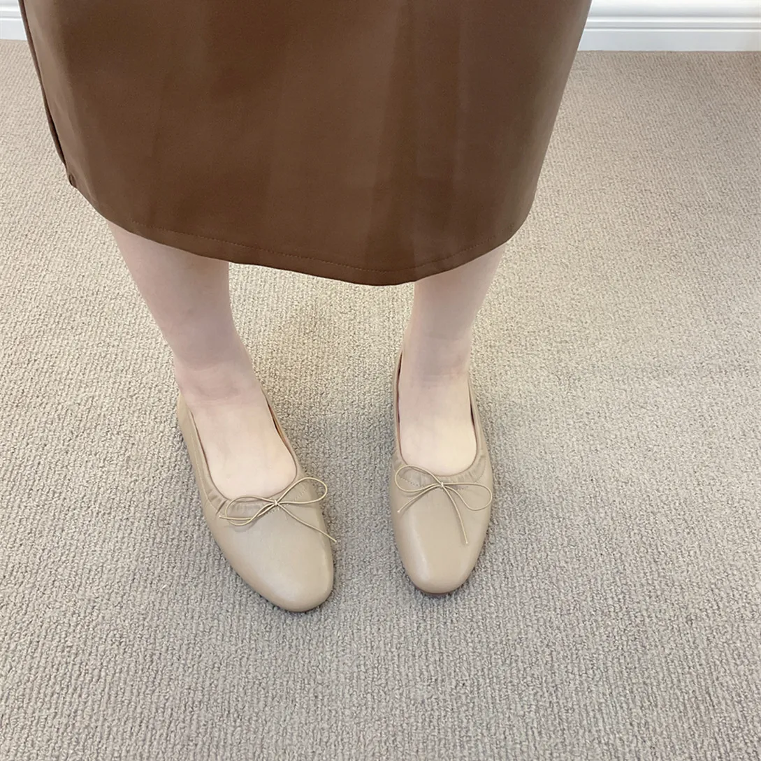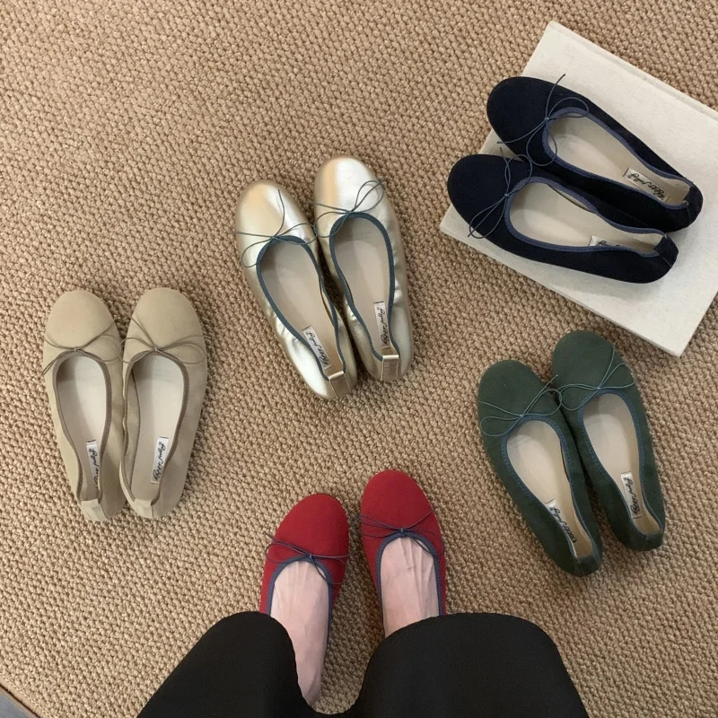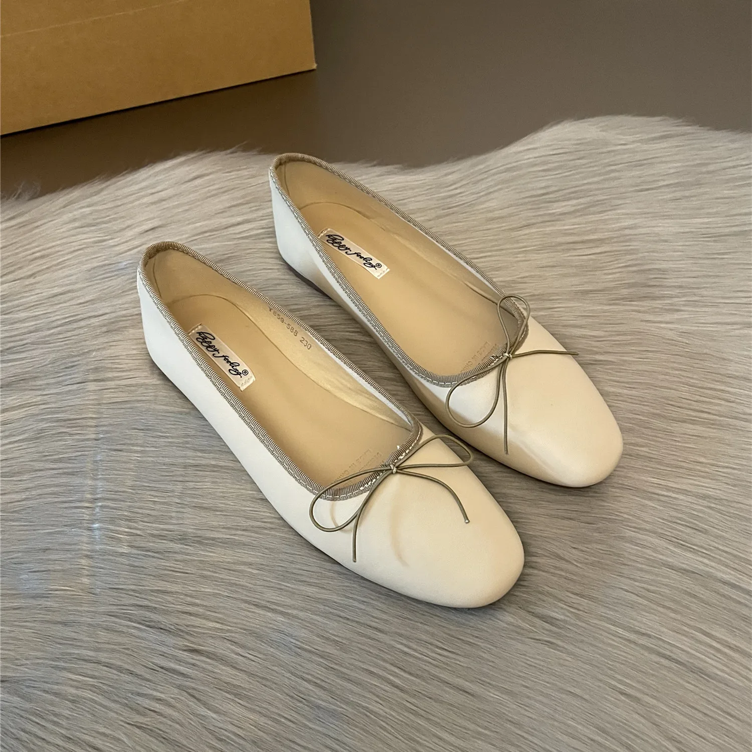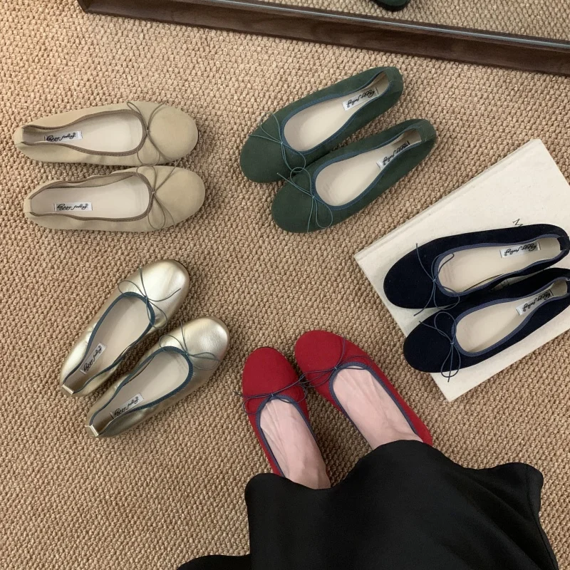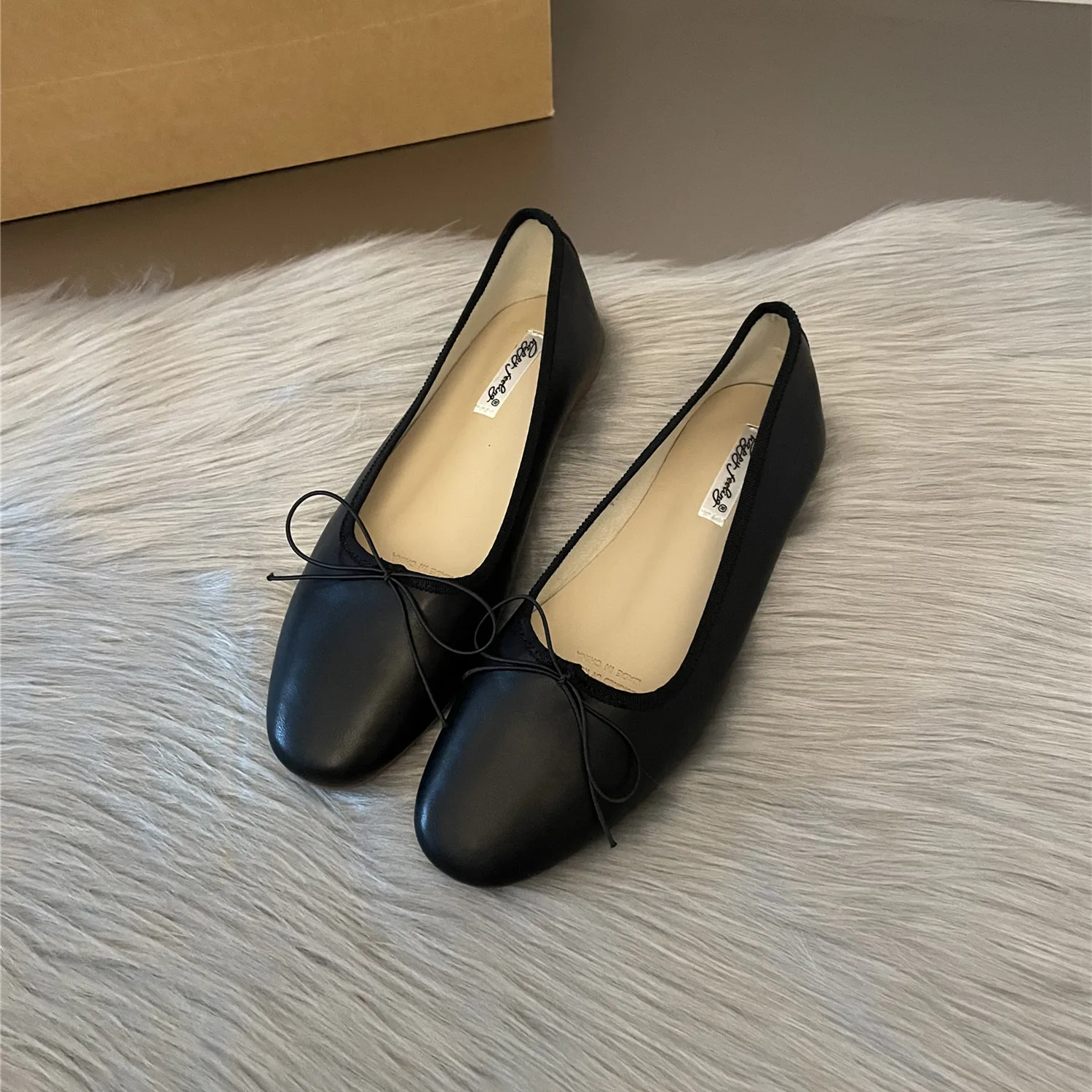 LBSFY -Fashion Bow Tie Flats Ballet Shoes Women Female Ballet Round Toe Shallow Cut Ballerina Soft Moccasin Dress Shoes Zapato