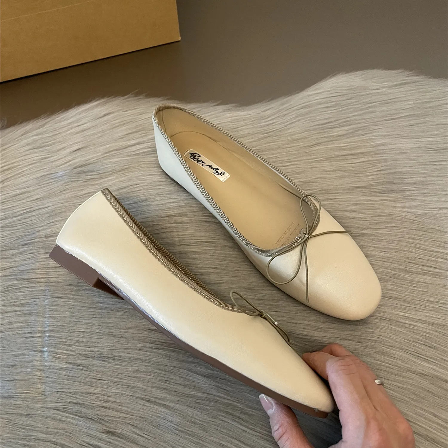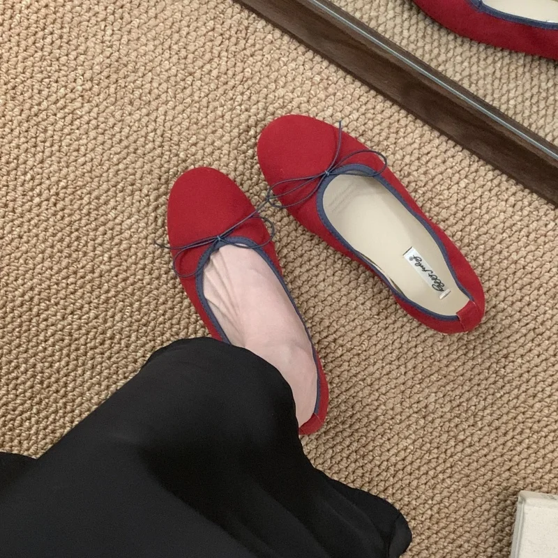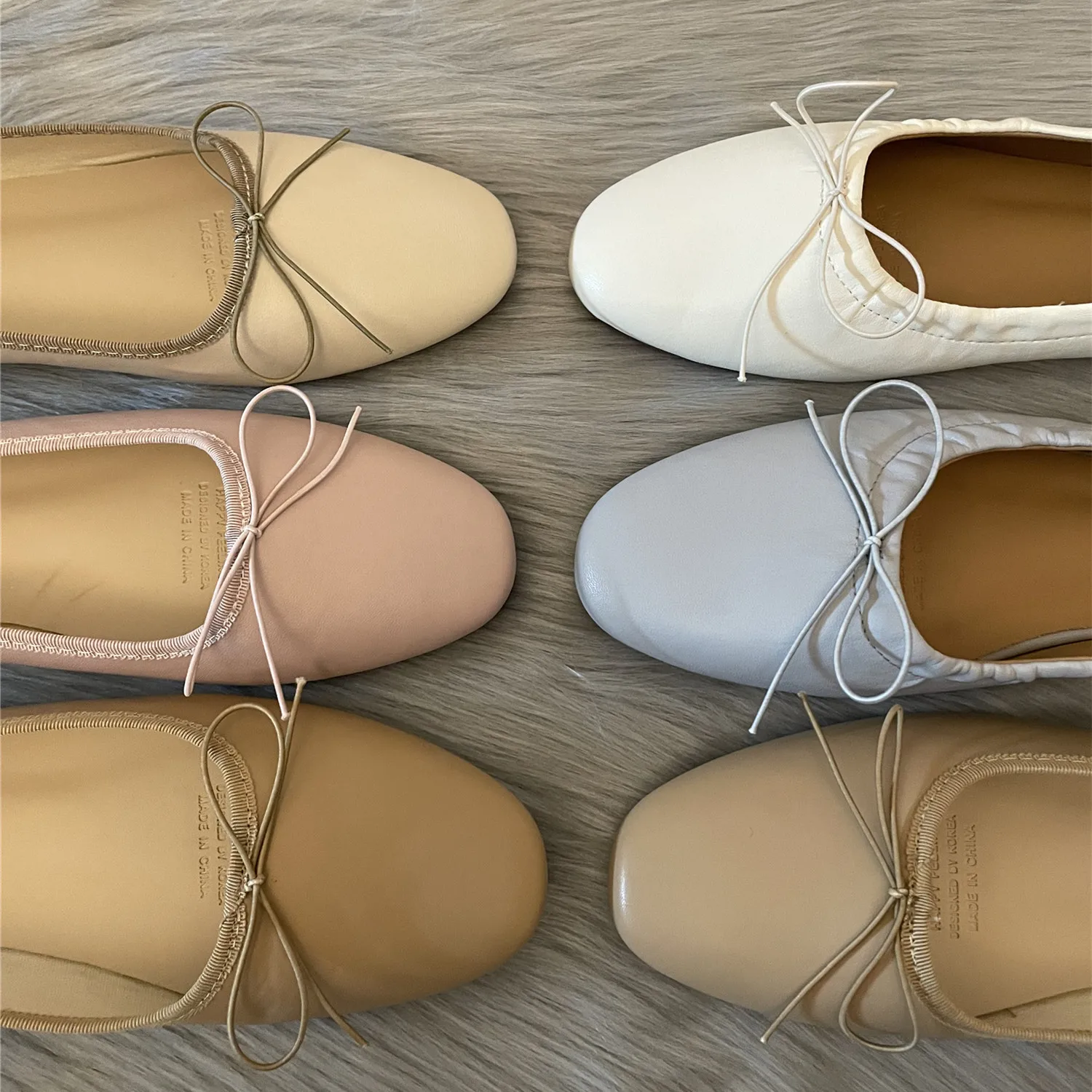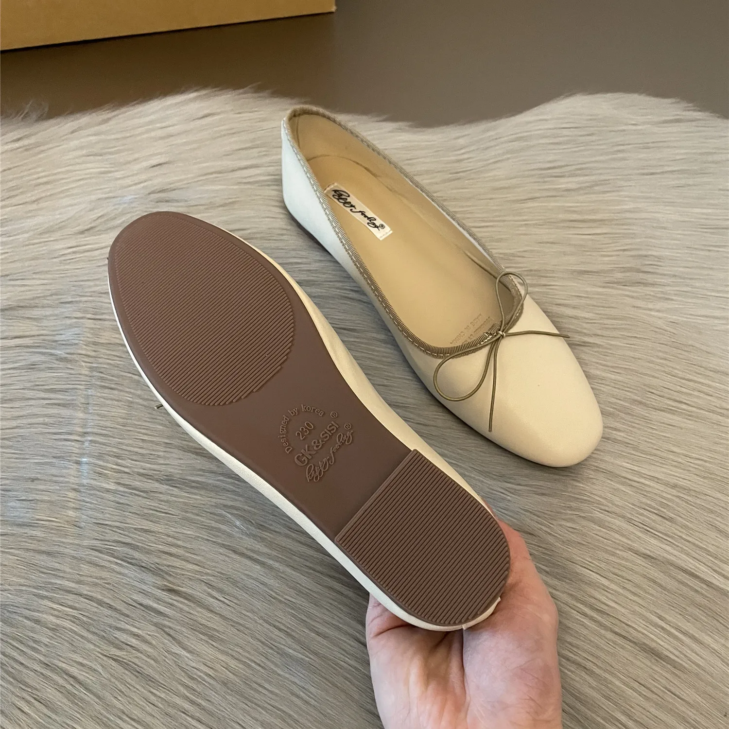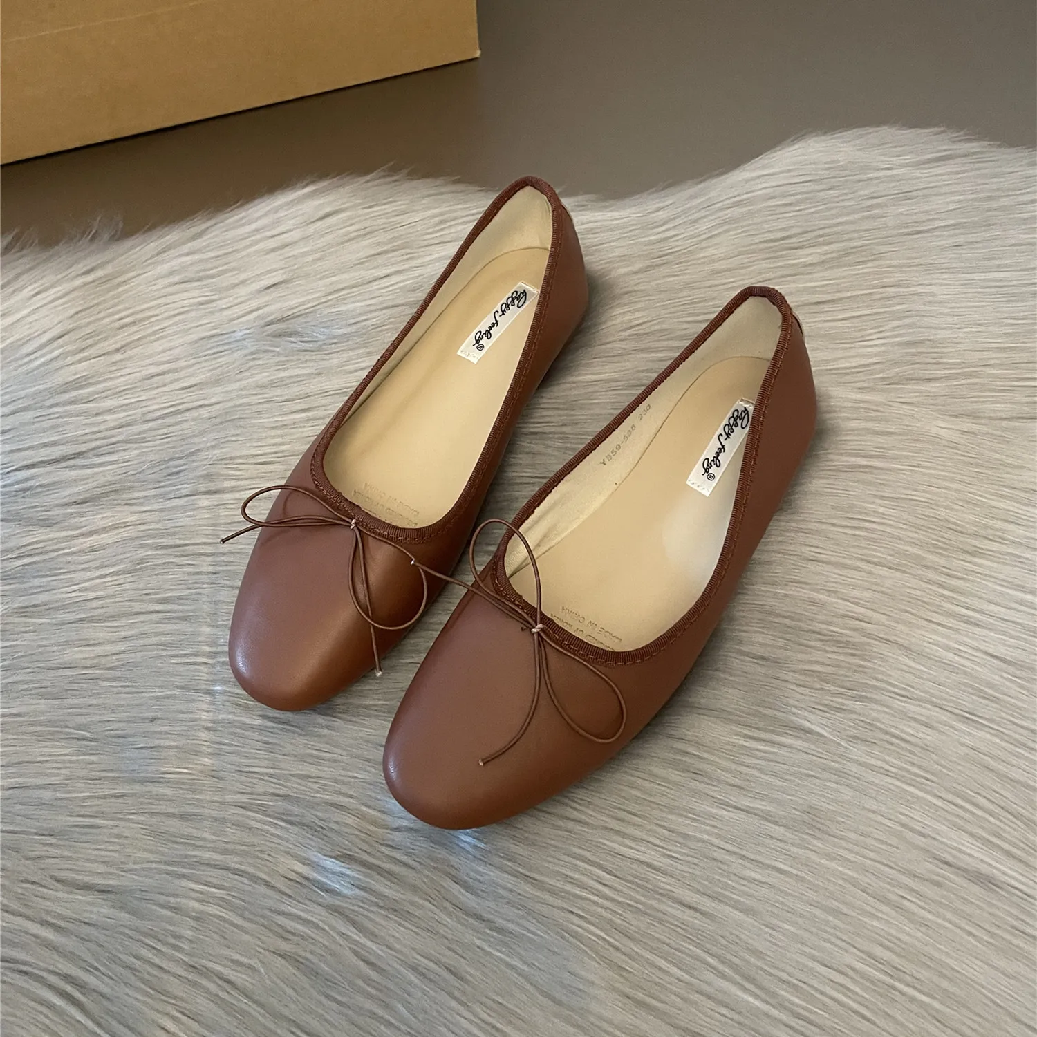 LBSFY -Fashion Bow Tie Flats Ballet Shoes Women Female Ballet Round Toe Shallow Cut Ballerina Soft Moccasin Dress Shoes Zapato