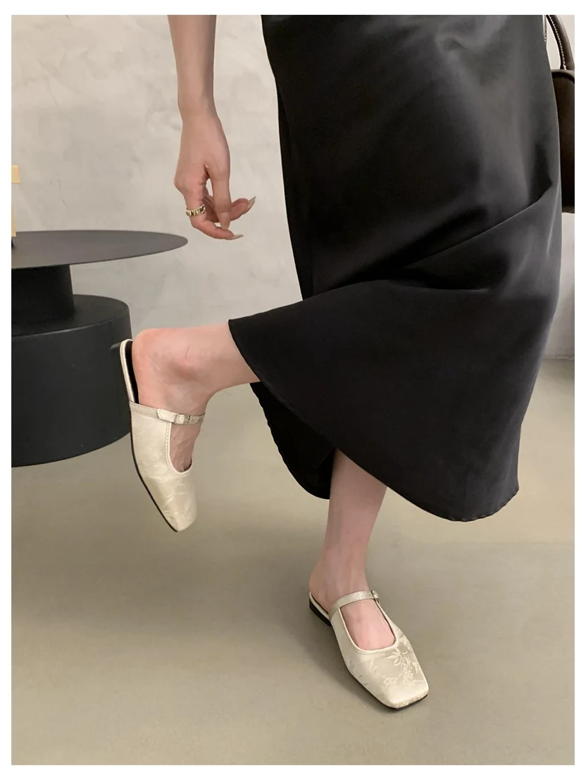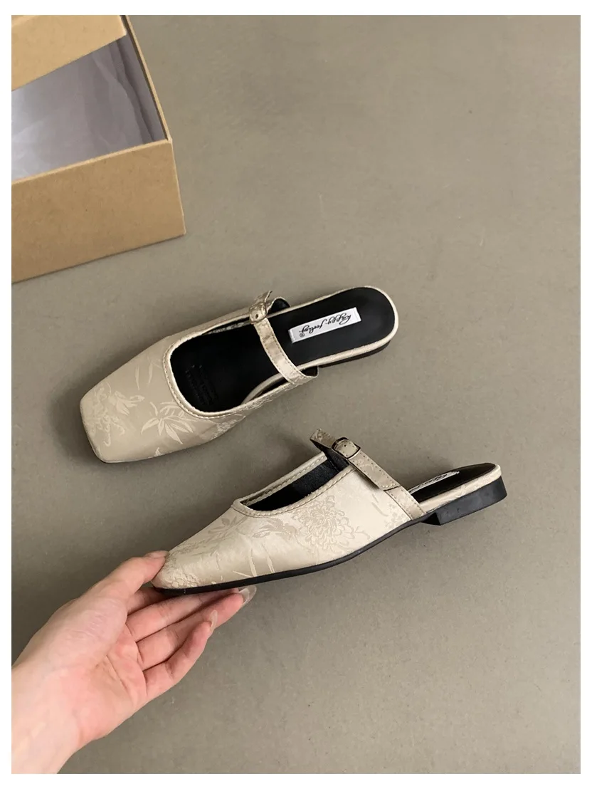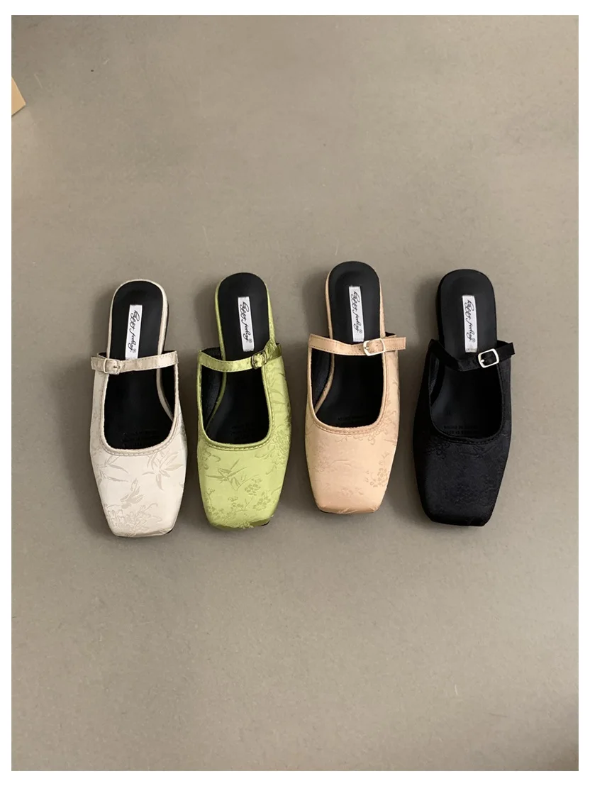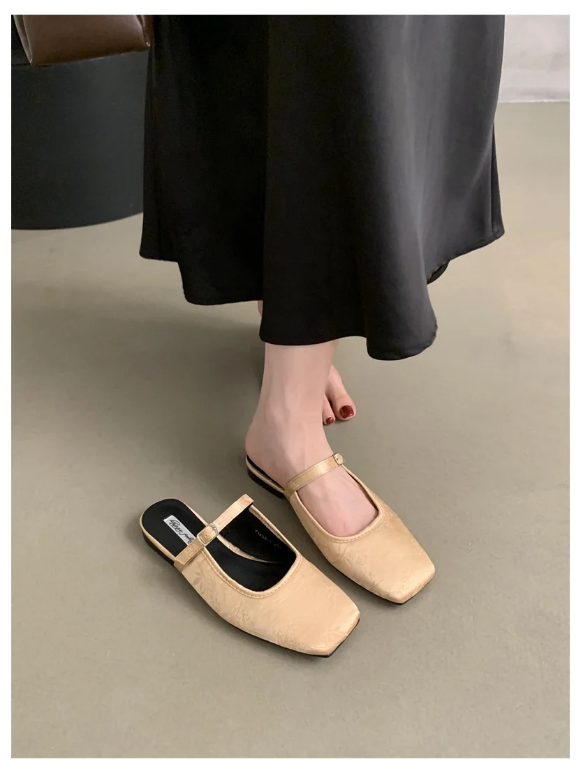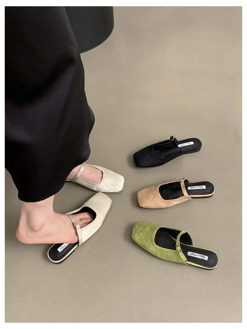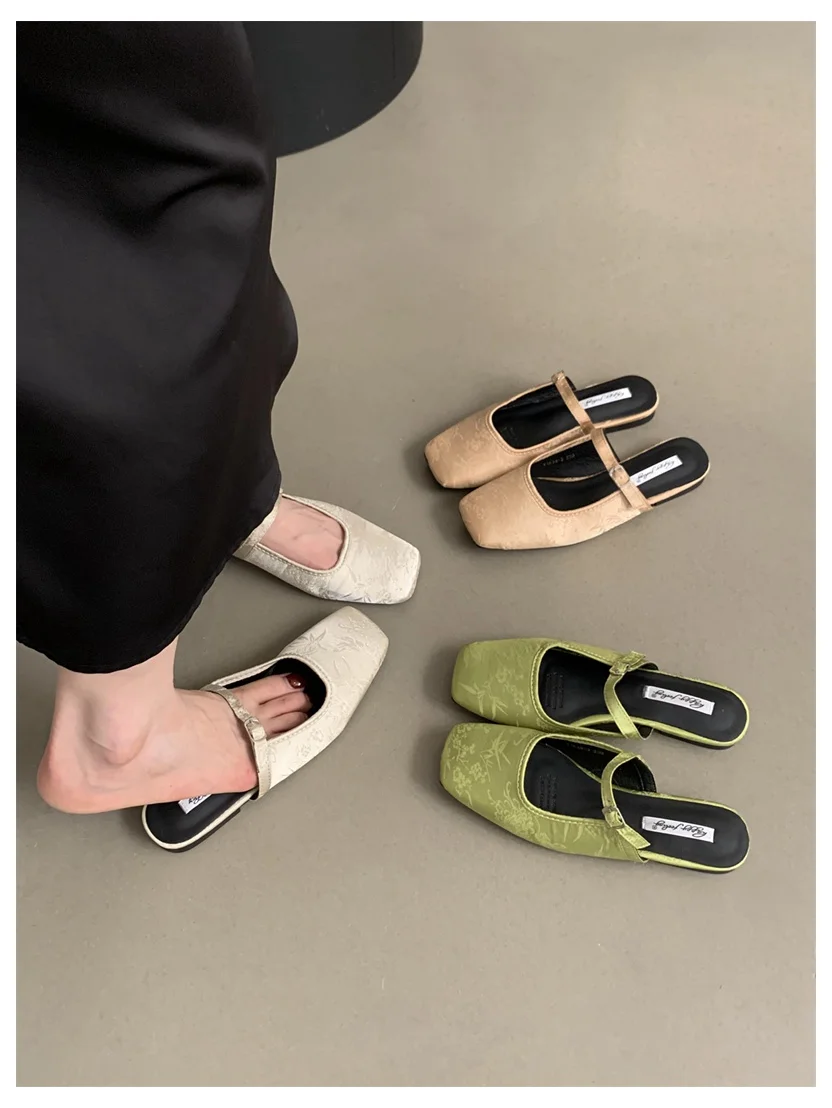 LBSFY -Fashion Brand Close Toe Mule Slippers Women Slides Flats Ballet Outdoor Flip Flops Ladies Shoes Loafer Elegant Silk Sandal Mujer