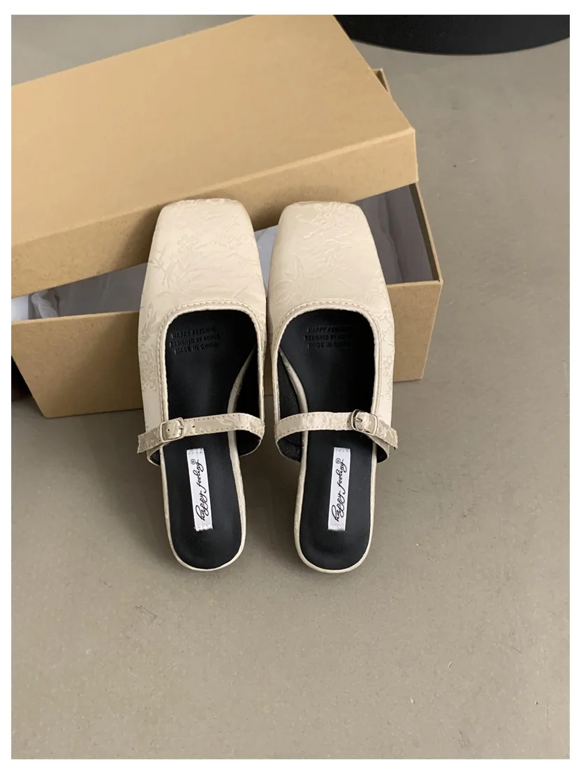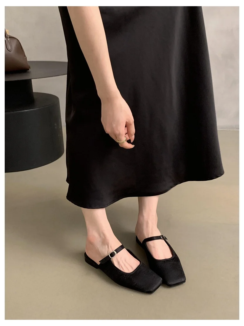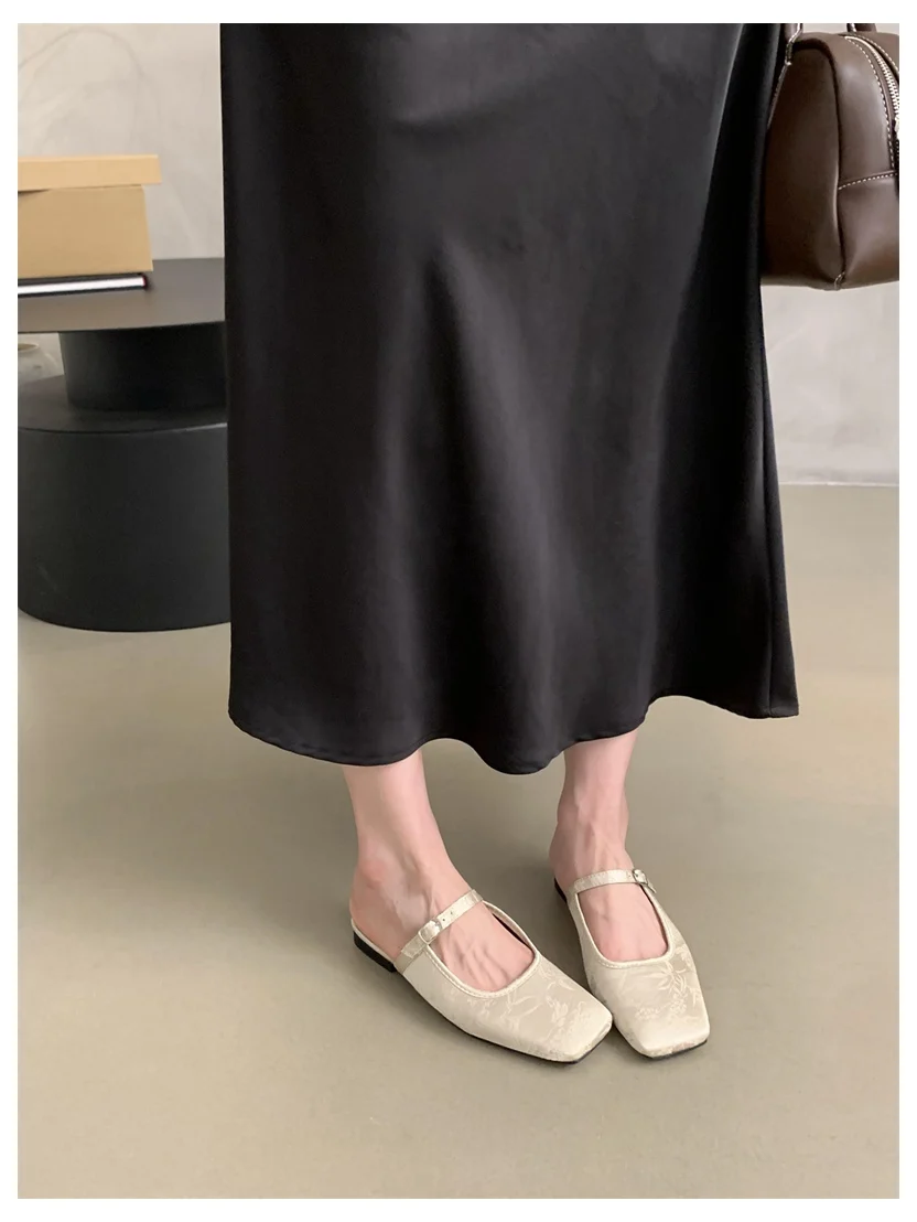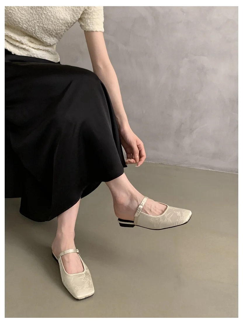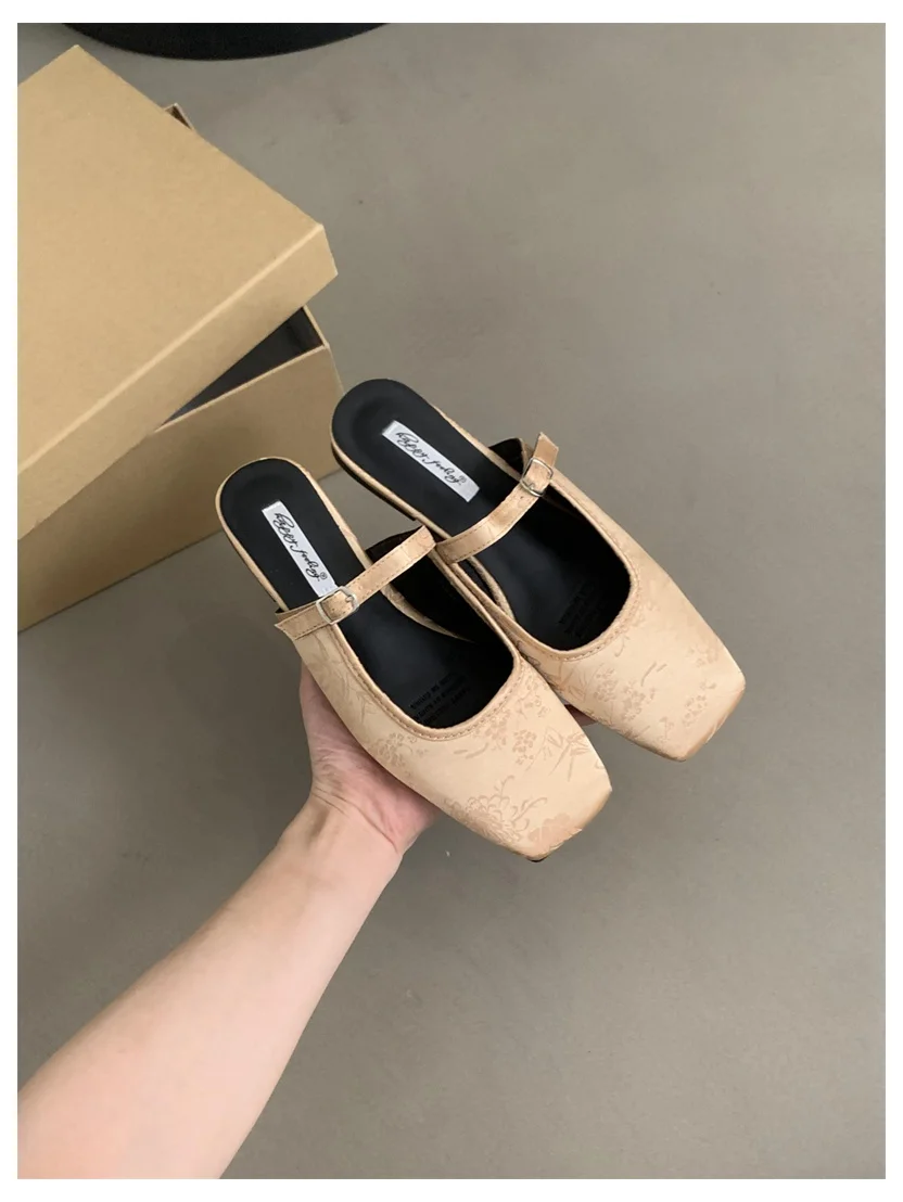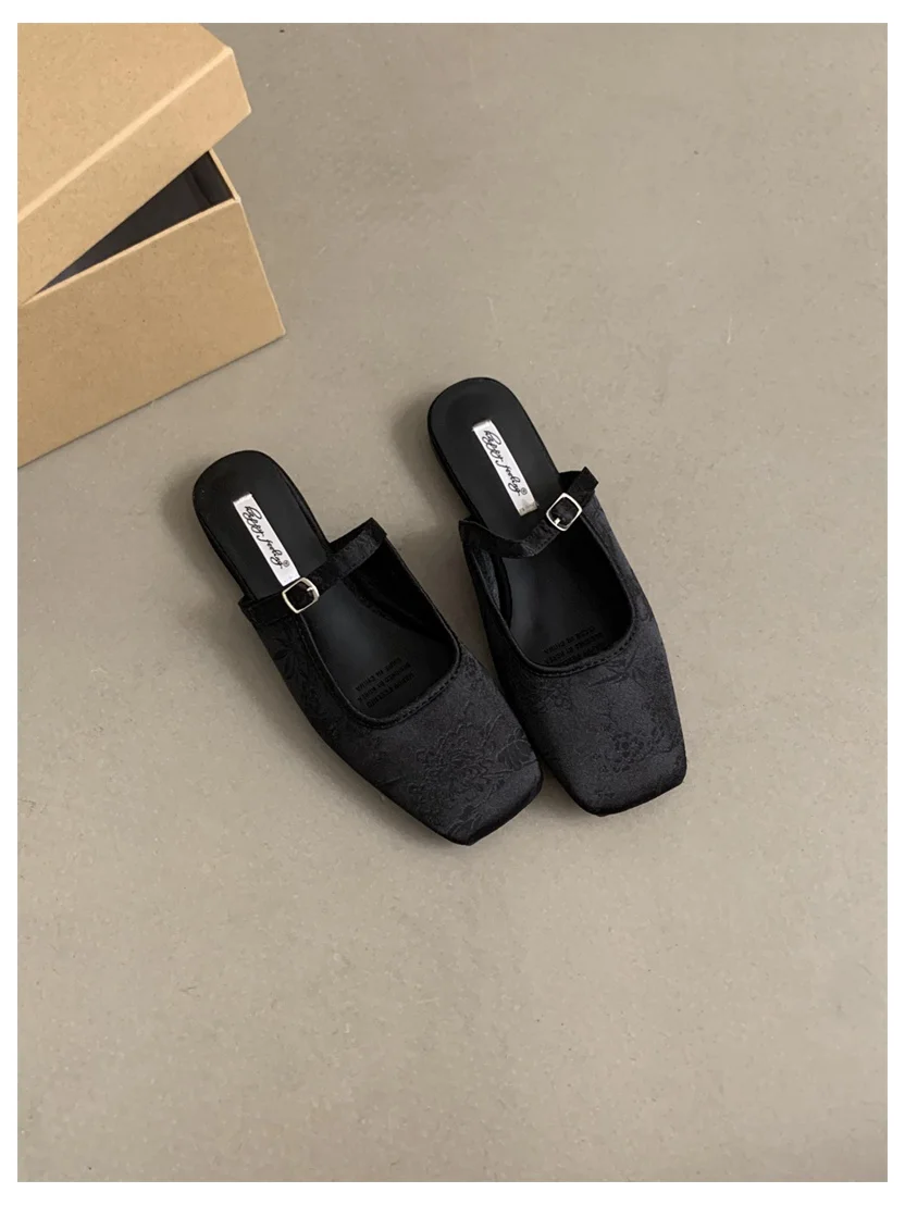 LBSFY -Fashion Brand Close Toe Mule Slippers Women Slides Flats Ballet Outdoor Flip Flops Ladies Shoes Loafer Elegant Silk Sandal Mujer