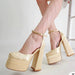 LBSFY  -  Fashion Ivory Satin Evening Party Platform Womens Sandals High Heels  15 cm Thick Heels Wedding Womens Shoes