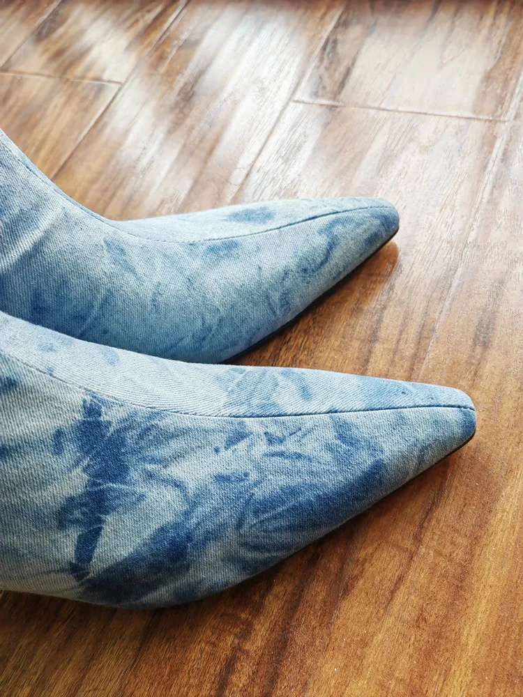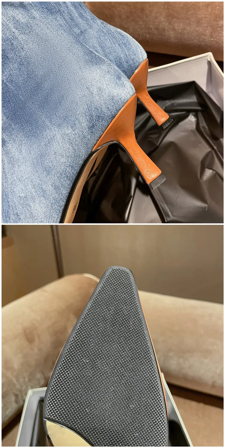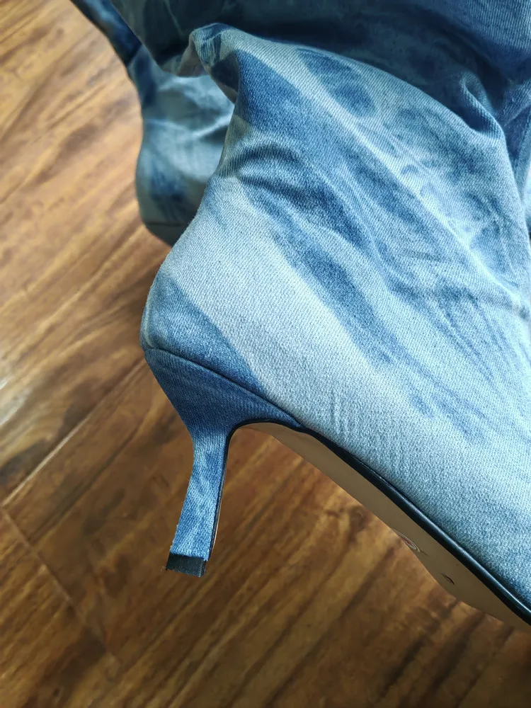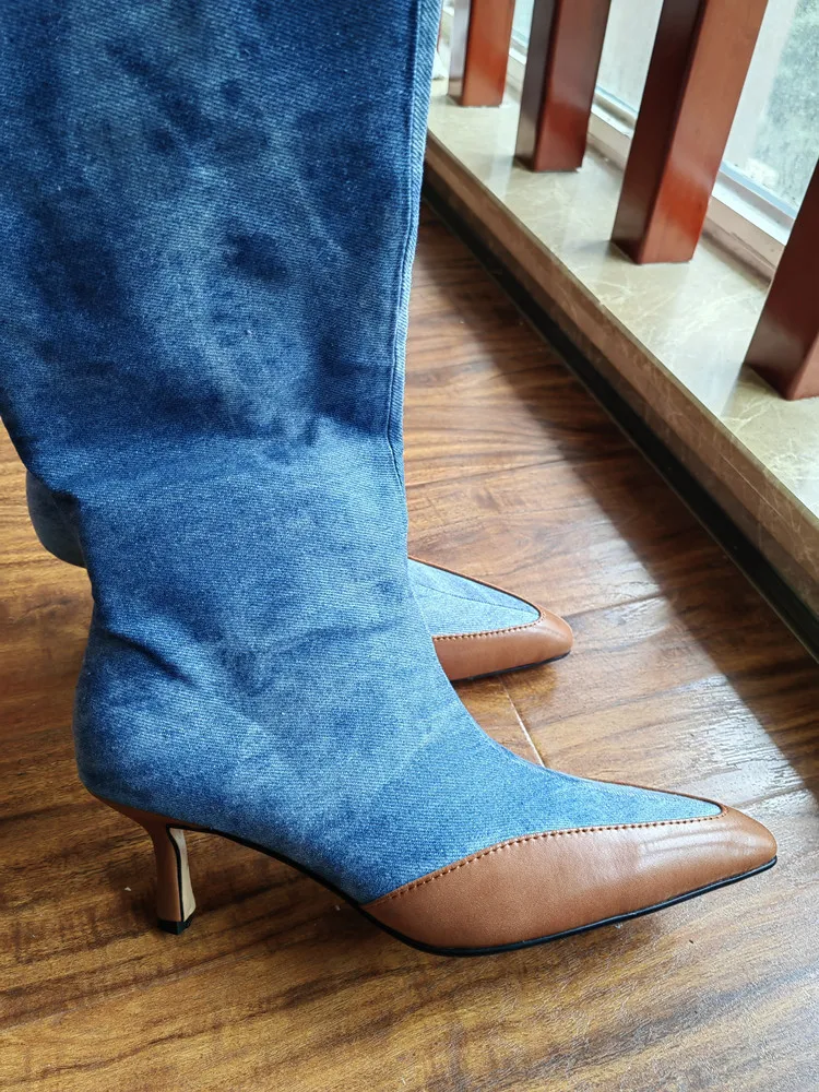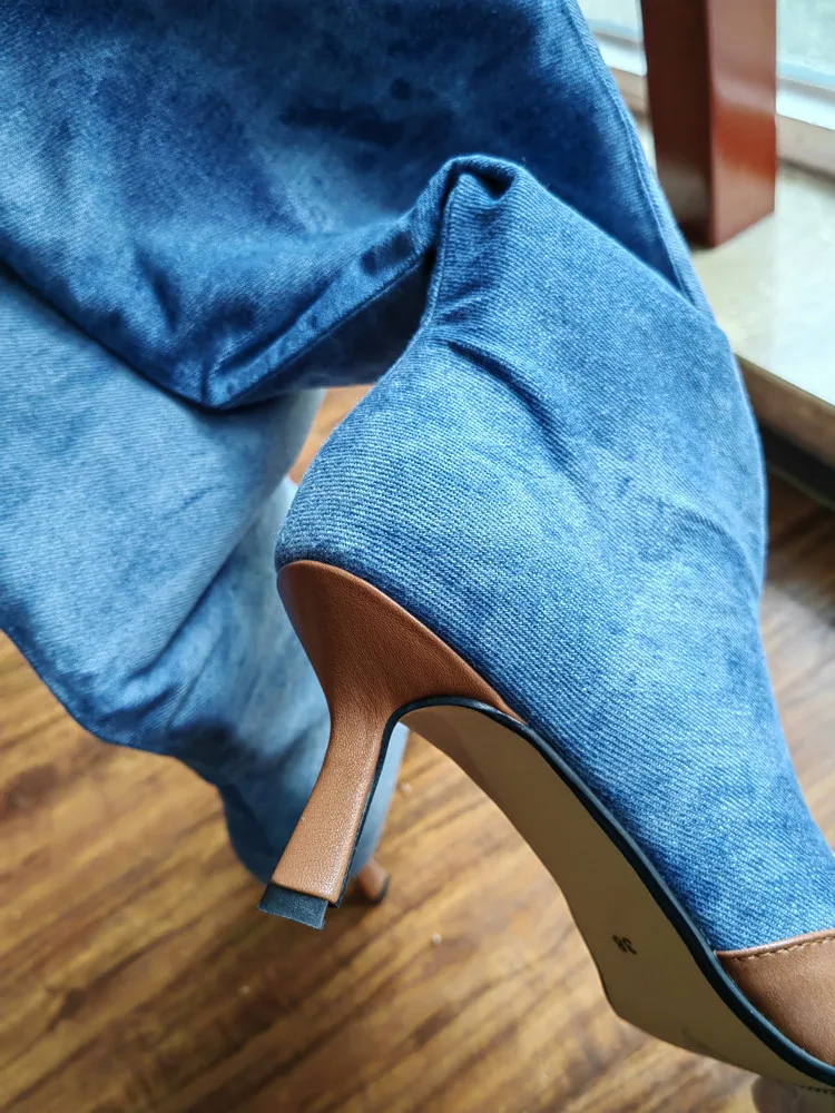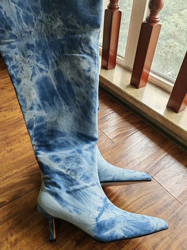 LBSFY - Fashion Knee-High Women Boots New High Quality Denim Boots Pointed Toe Wide Tube High Heel High Boots Street Hot Girl