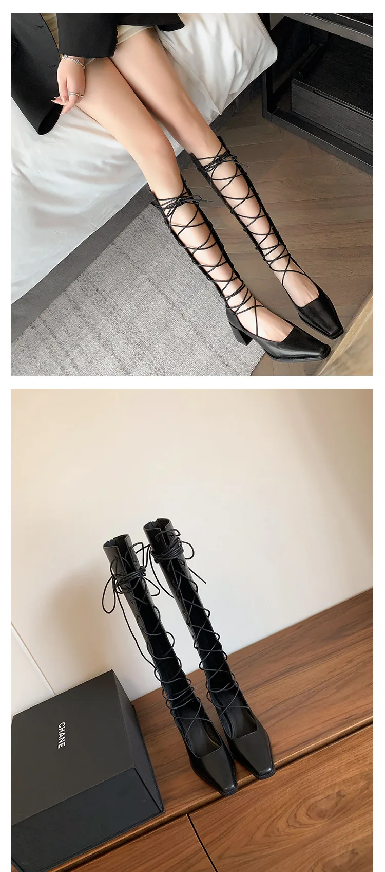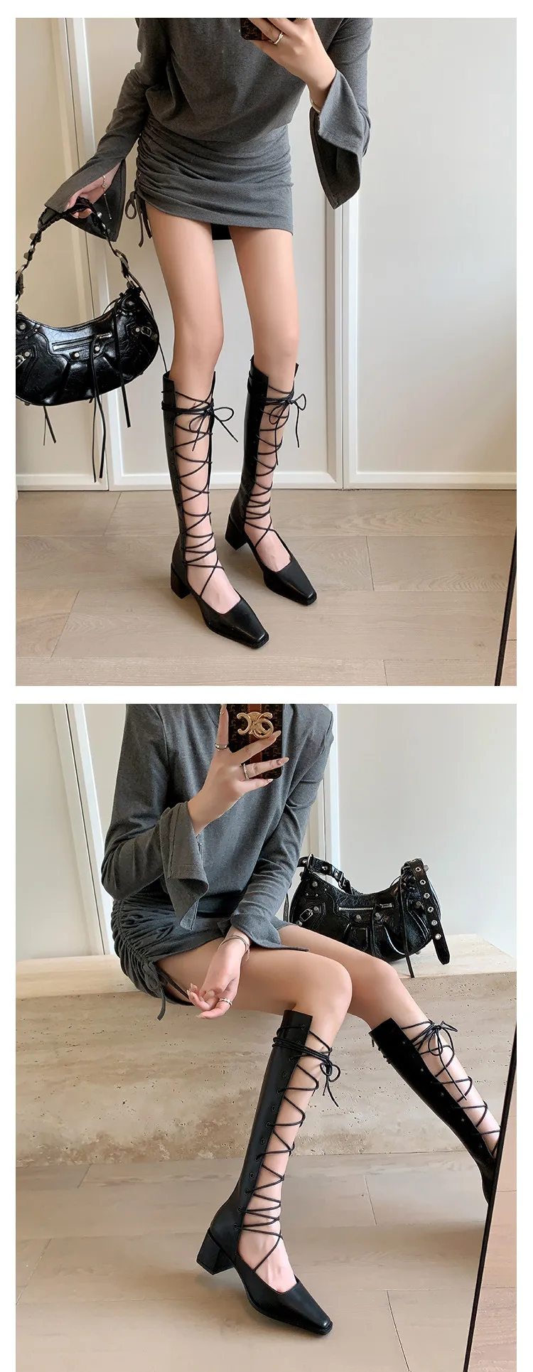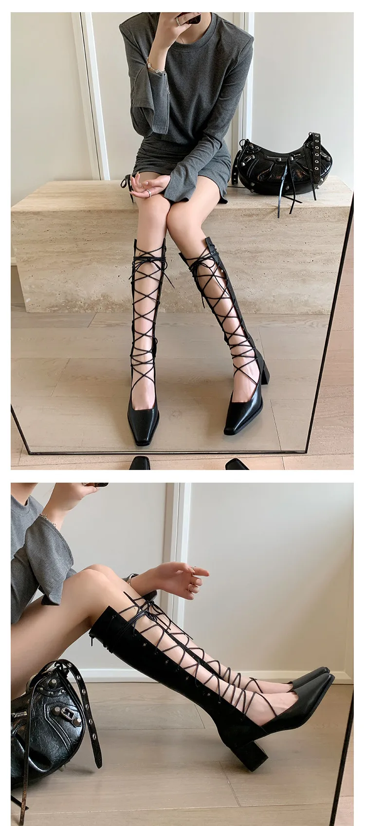 LBSFY - Fashion Knee Length Boots Women's New High-Quality Genuine Leather Roman Cross Strap Summer Open Leather Sandals Boots