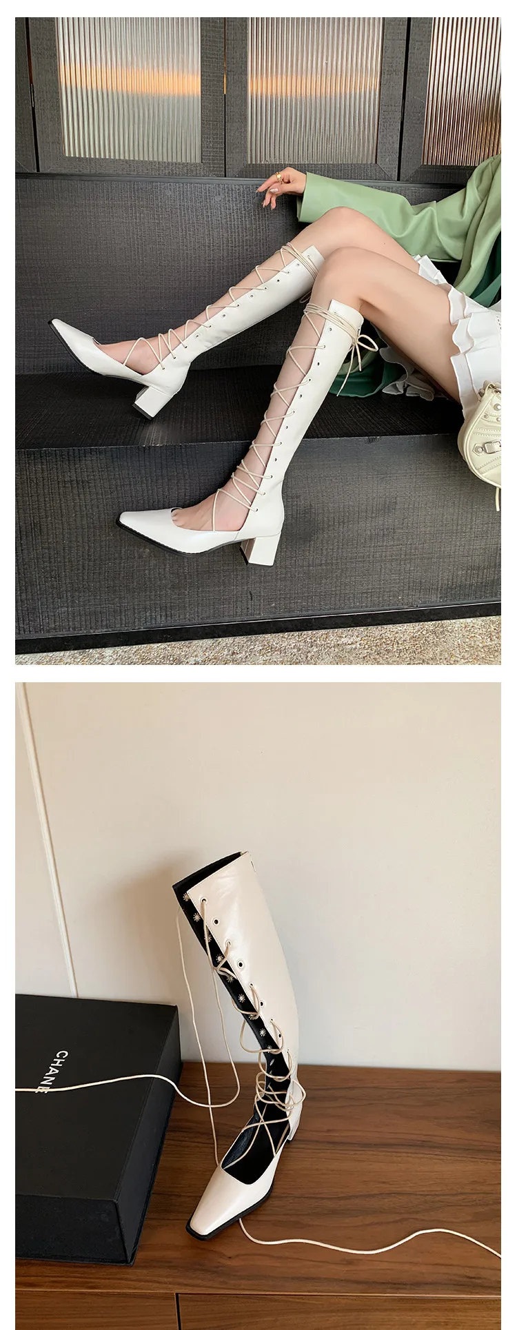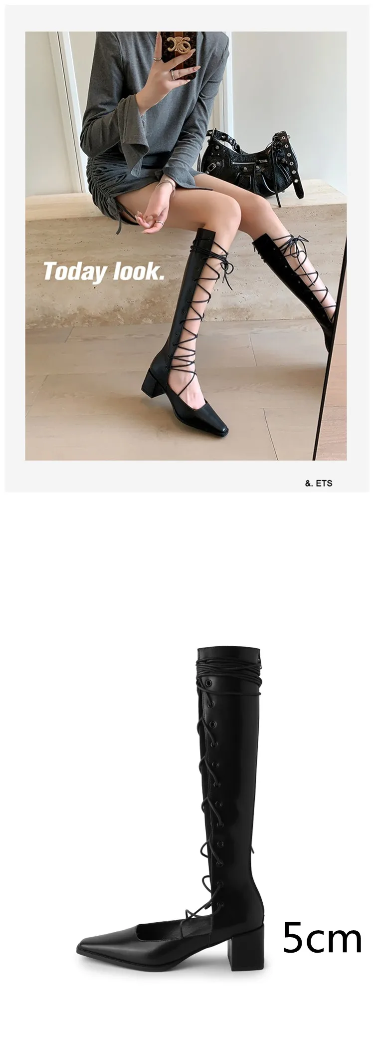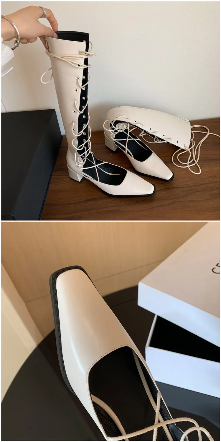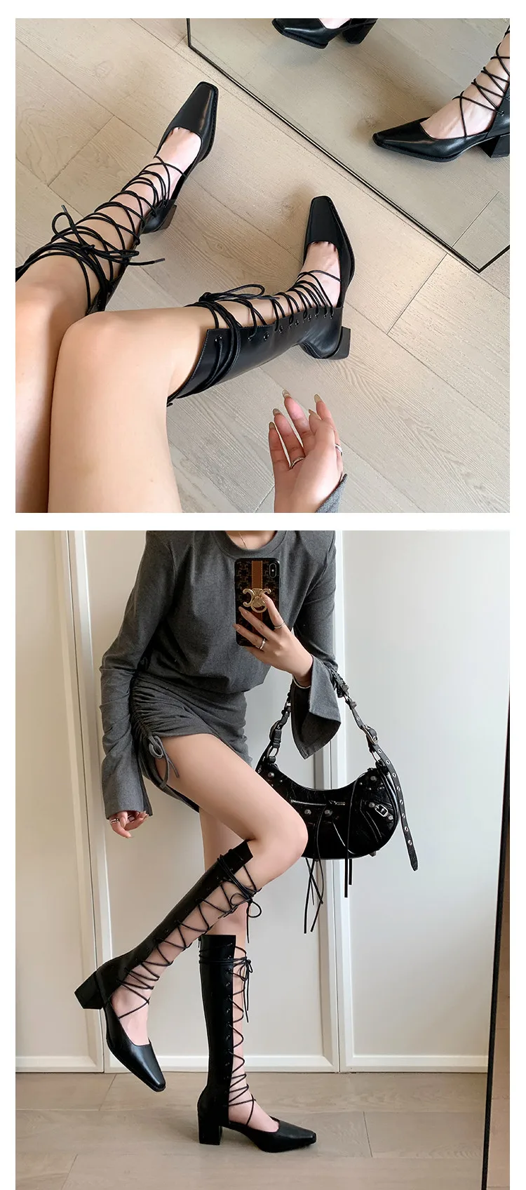 LBSFY - Fashion Knee Length Boots Women's New High-Quality Genuine Leather Roman Cross Strap Summer Open Leather Sandals Boots