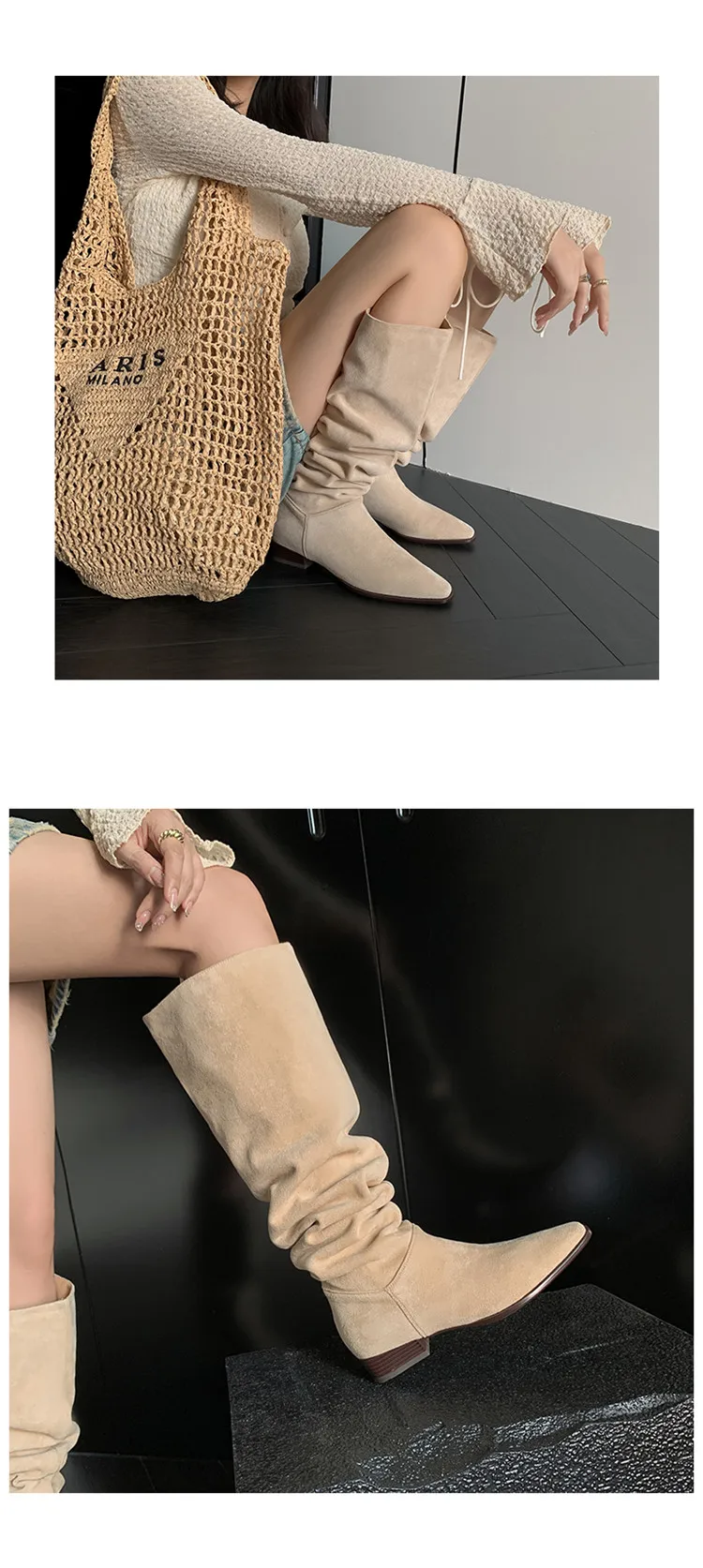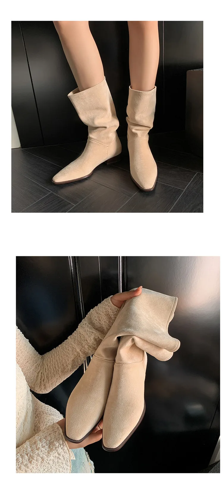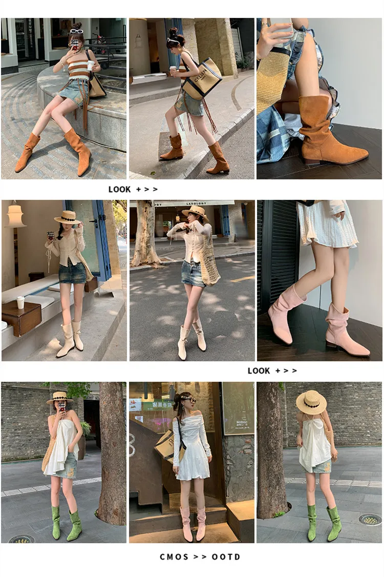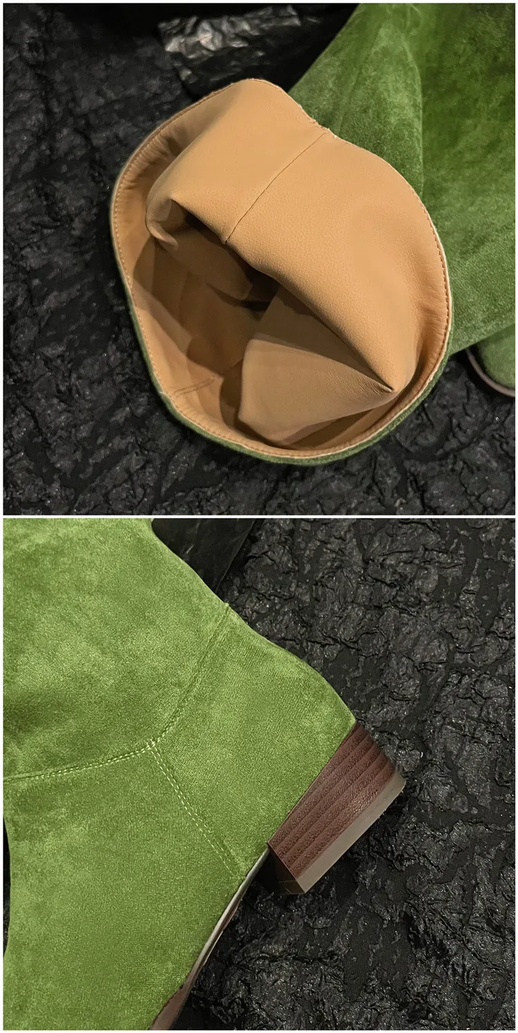 LBSFY - Fashion Knee Length Women Boots New High Quality Frosted Leather Pointed Pleated Low Heel Long Boots Four Seasons Boots