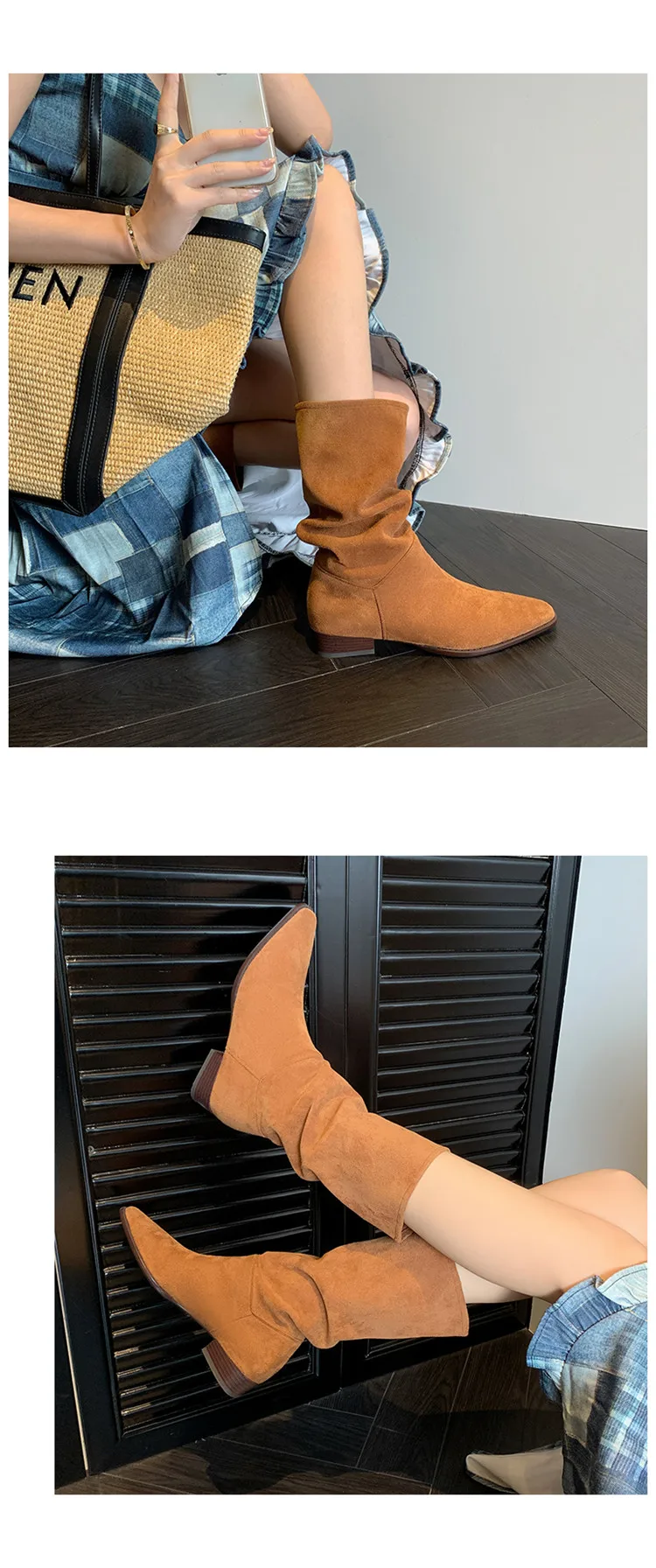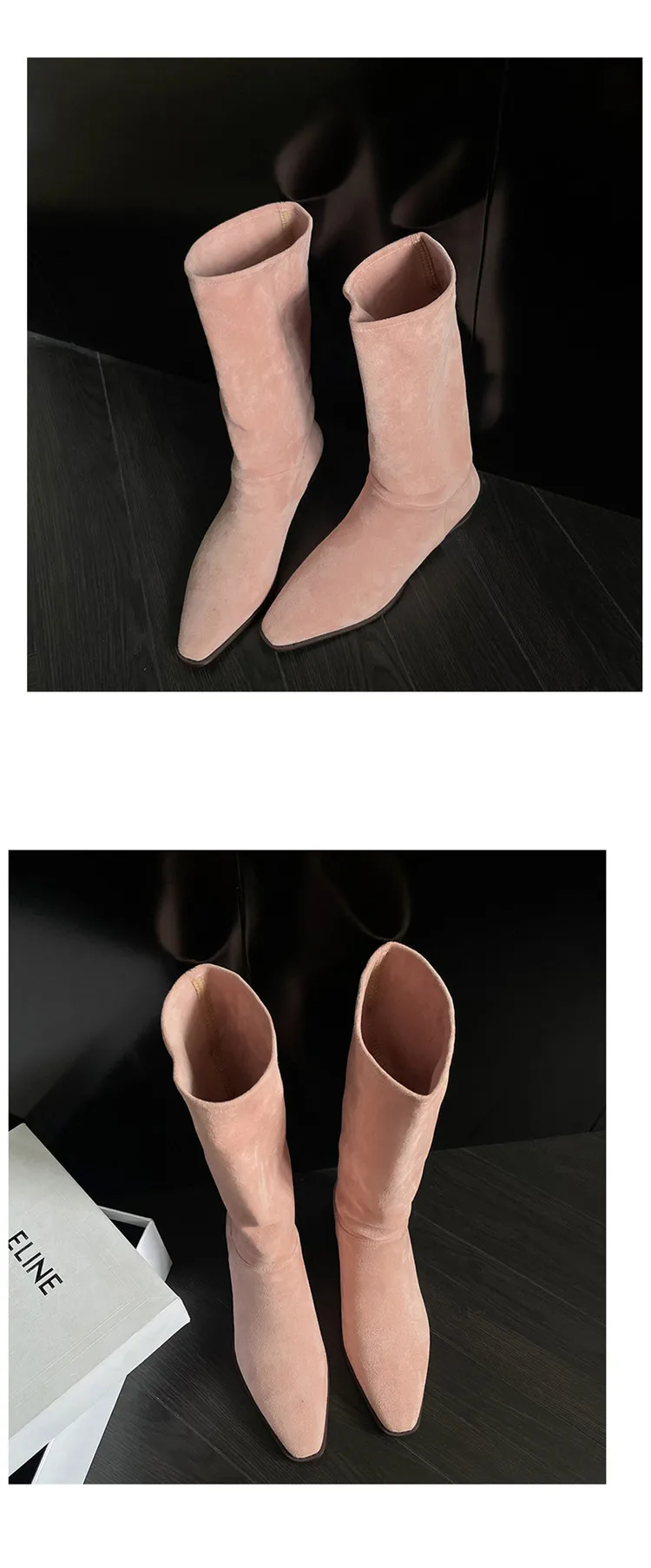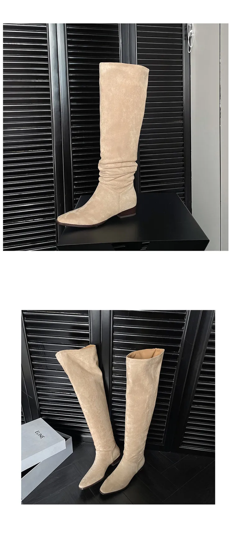 LBSFY - Fashion Knee Length Women Boots New High Quality Frosted Leather Pointed Pleated Low Heel Long Boots Four Seasons Boots