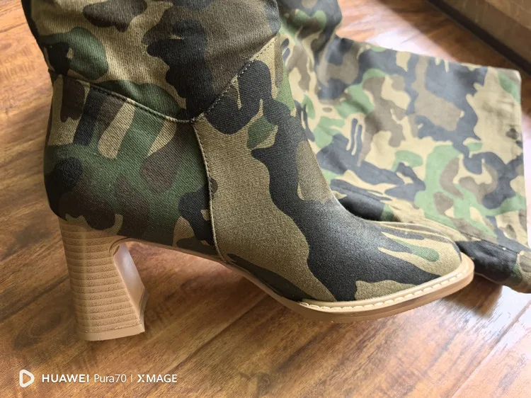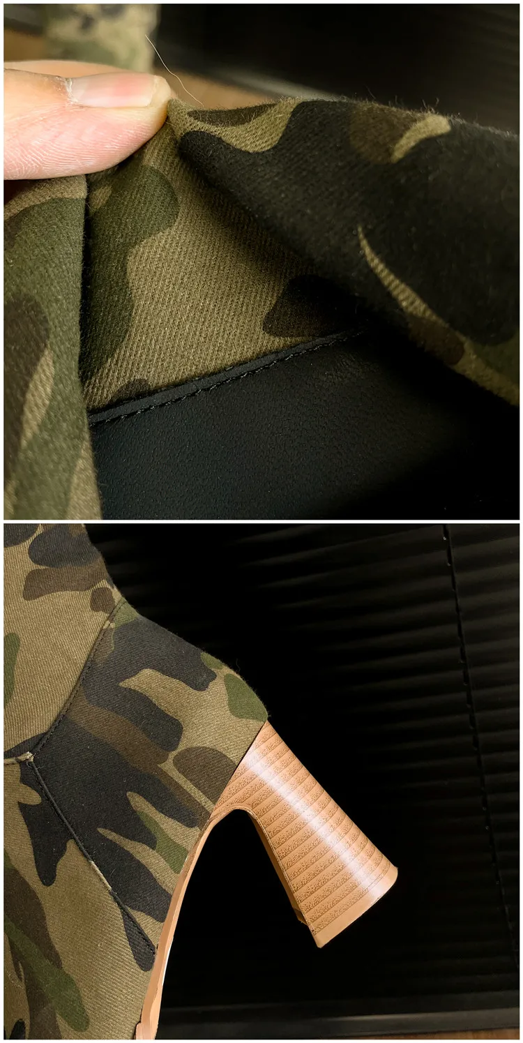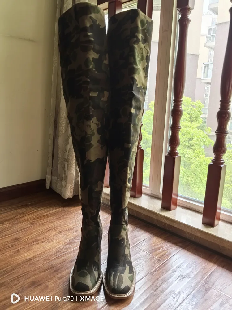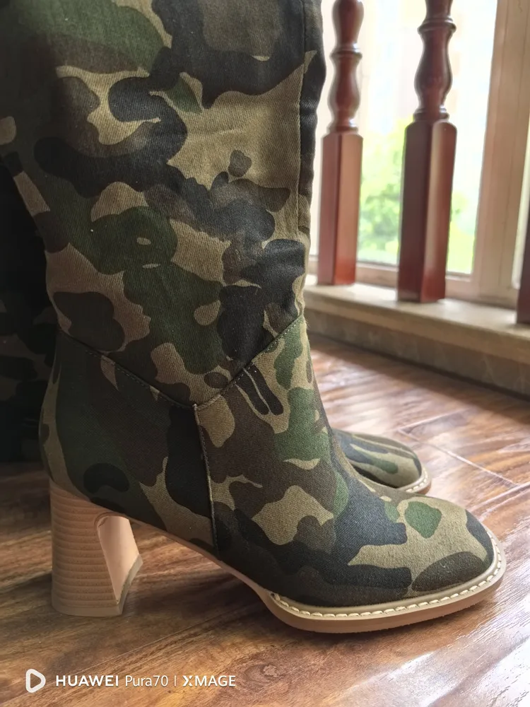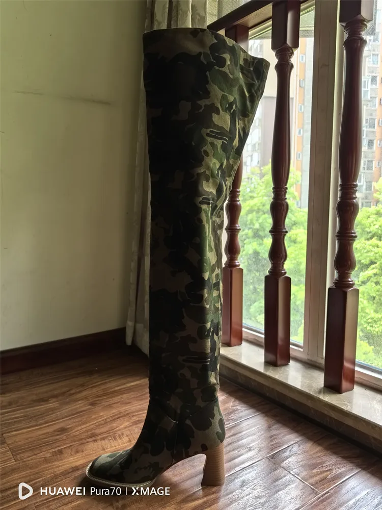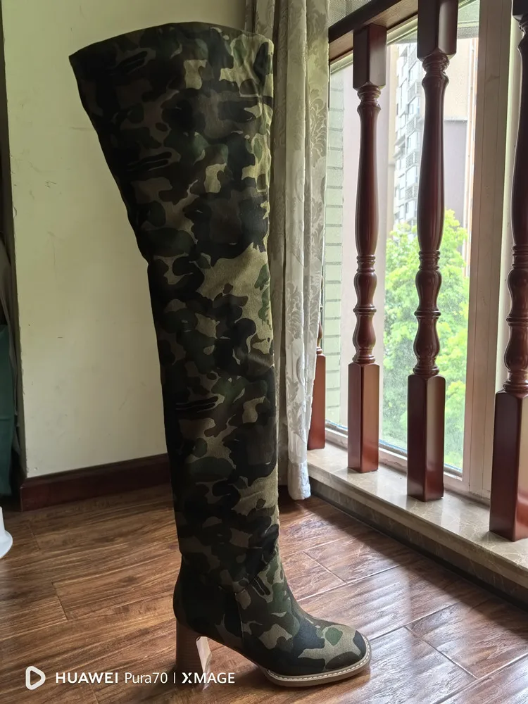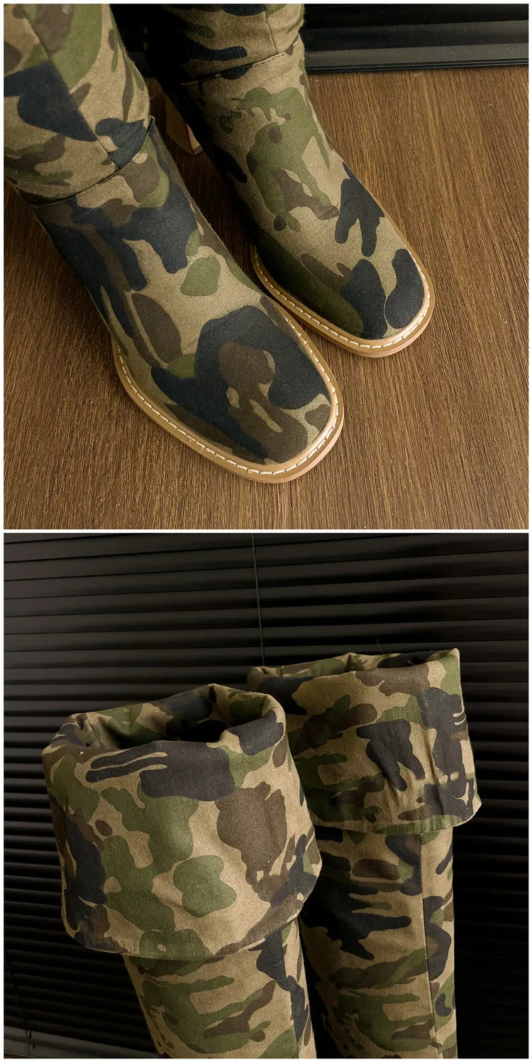 LBSFY - Fashion Over Knee Boots Women New High Quality Camo Boots Round Head Pleated High Heel Boots Street Hot Girl Modern Boots