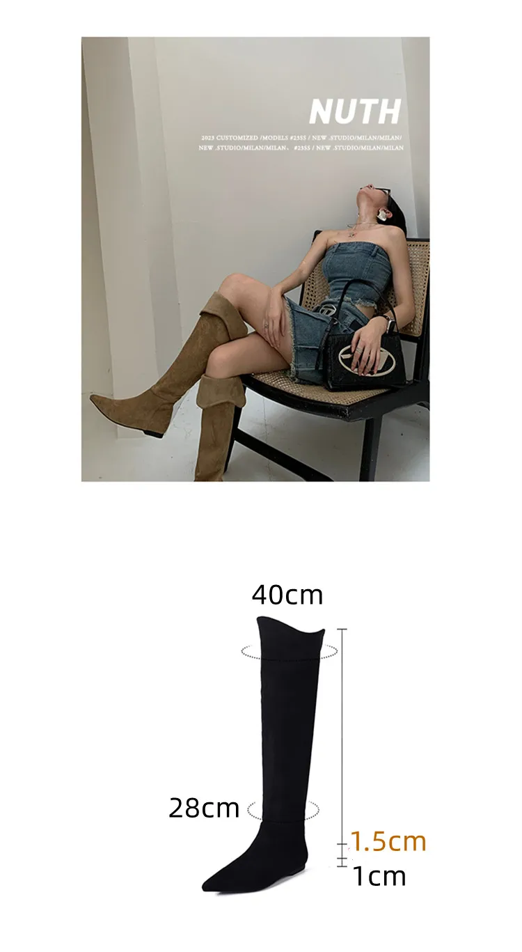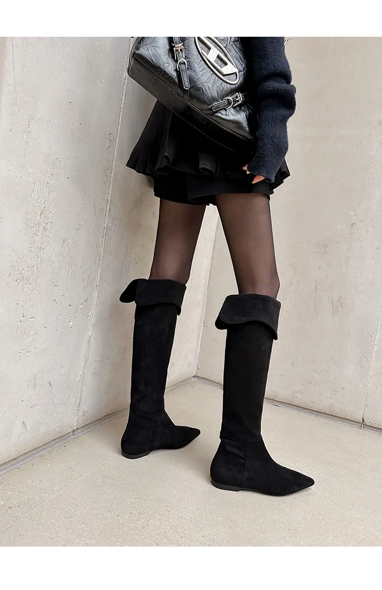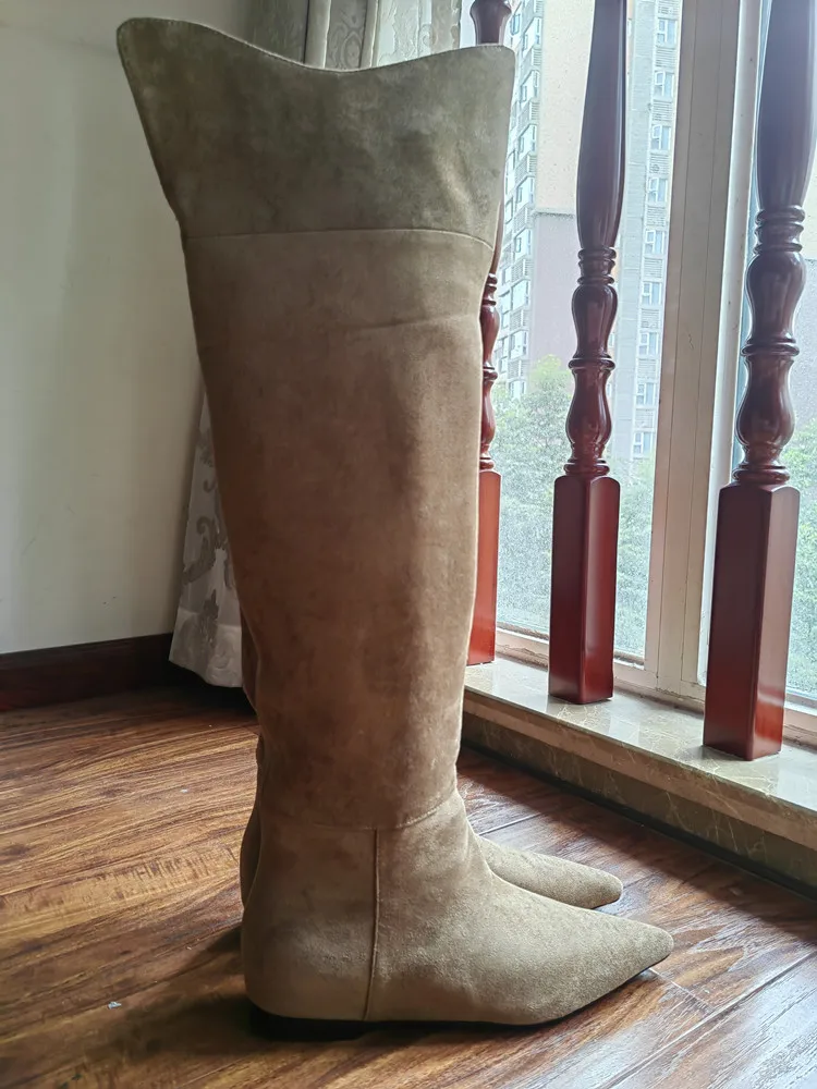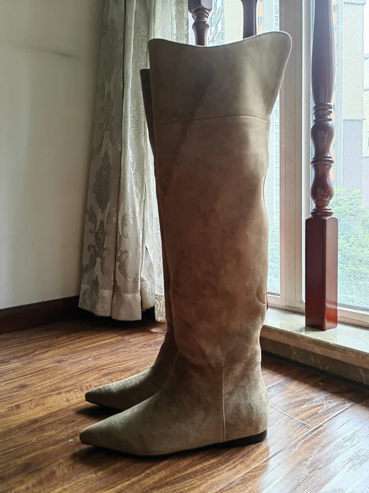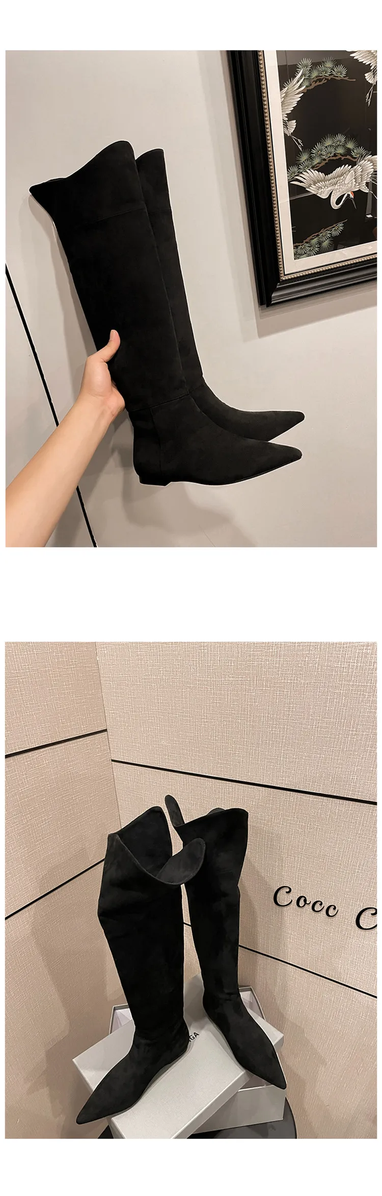 LBSFY - Fashion Over Knee Boots Women's New High Quality Suede Pointed Wide Tube Comfortable Flat Bottom Boots Modern Long Boots