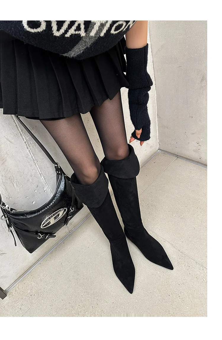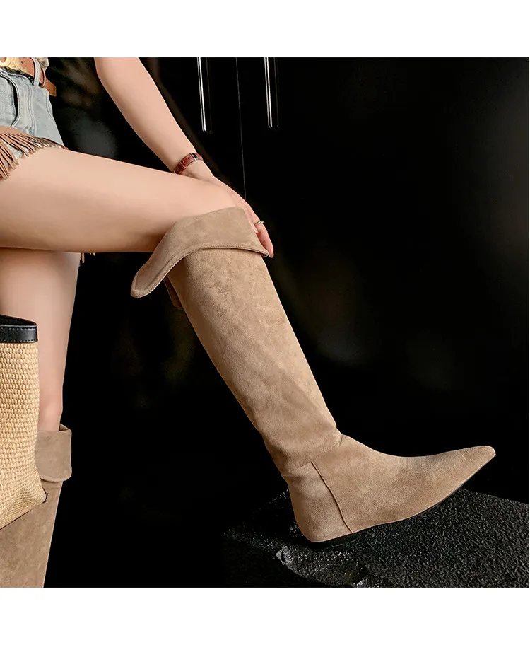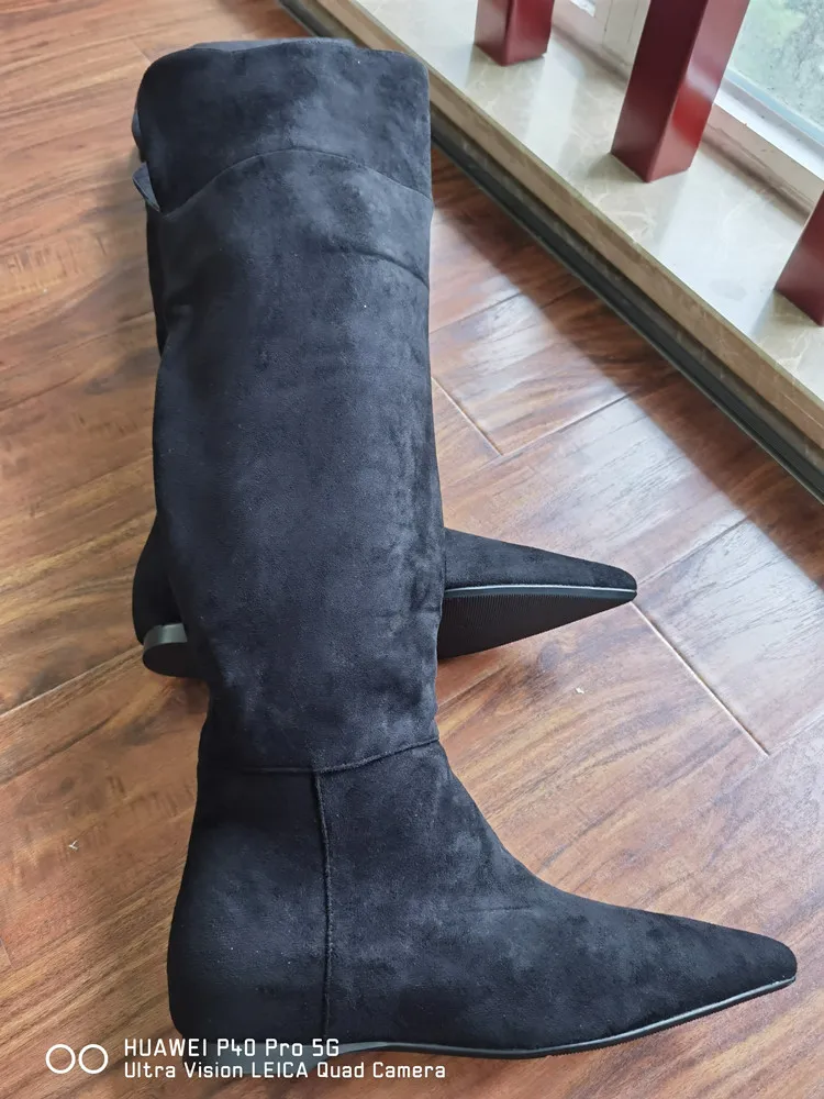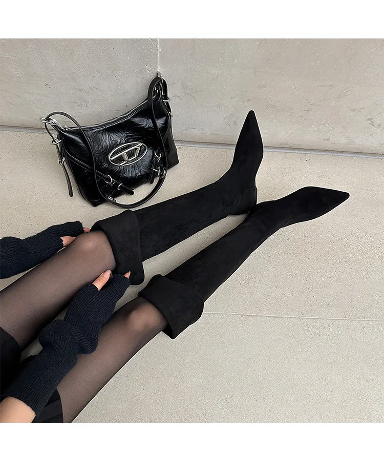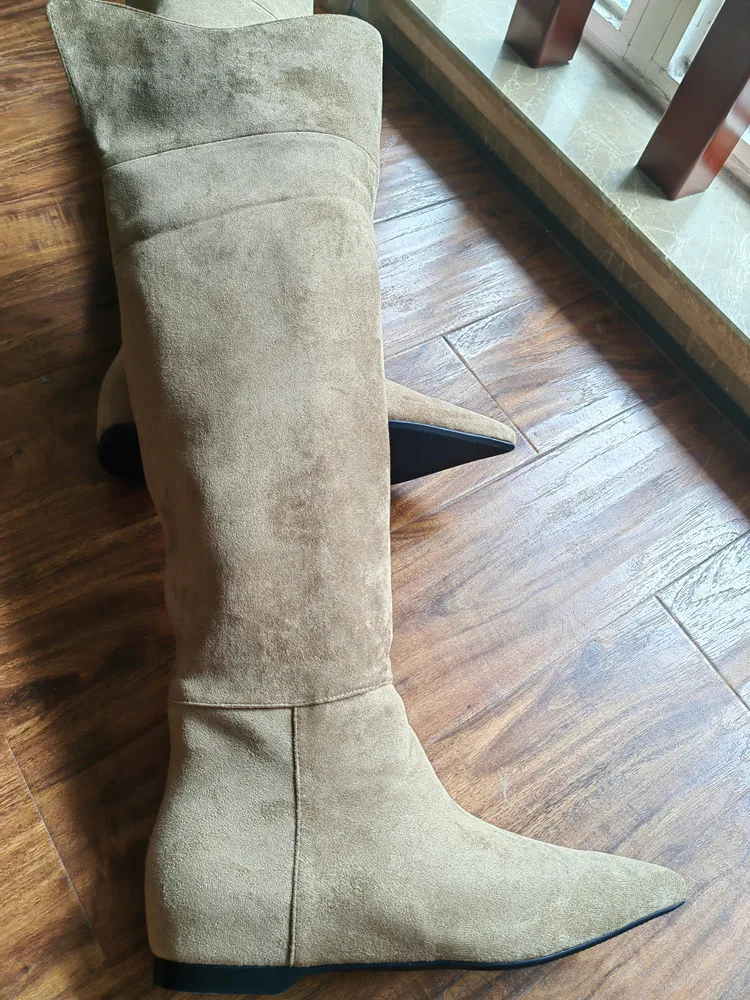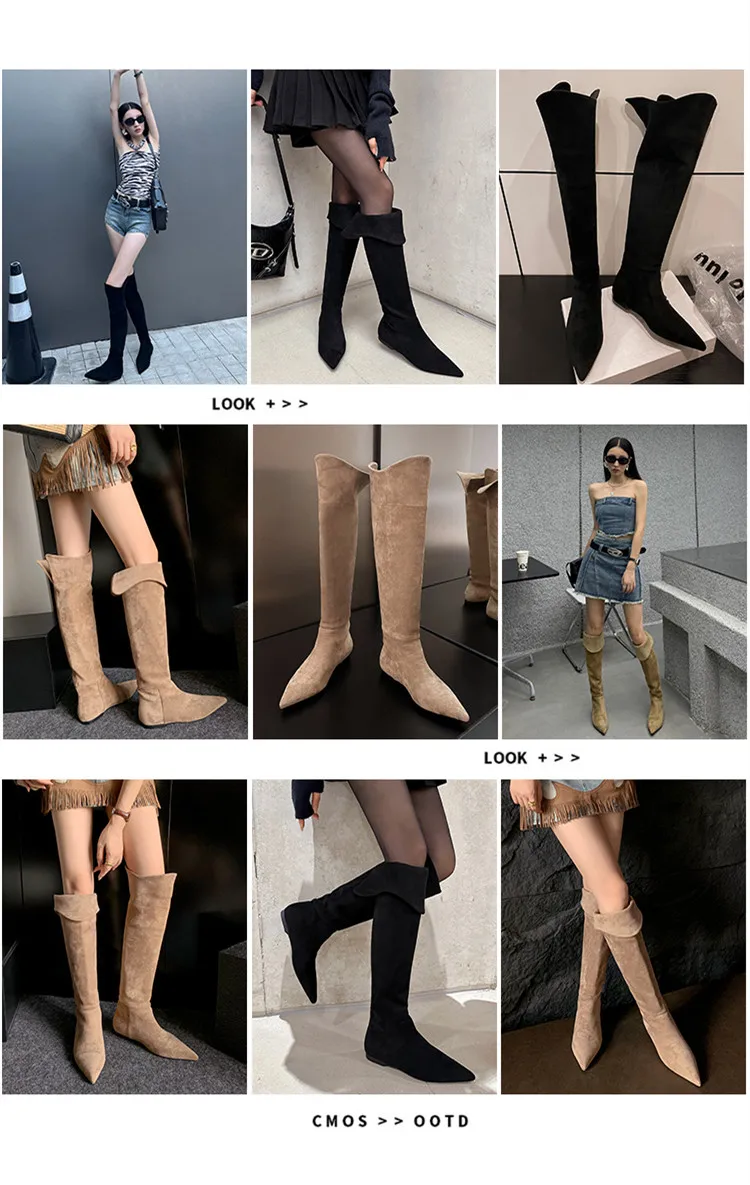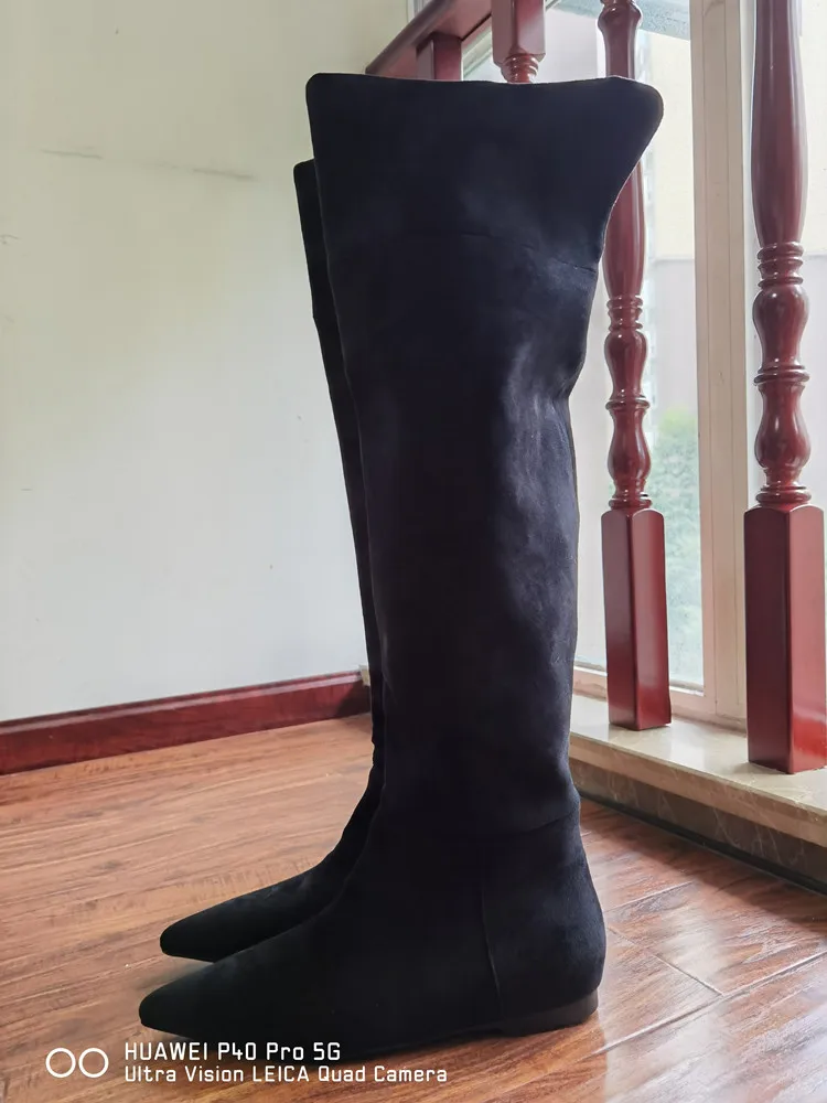 LBSFY - Fashion Over Knee Boots Women's New High Quality Suede Pointed Wide Tube Comfortable Flat Bottom Boots Modern Long Boots