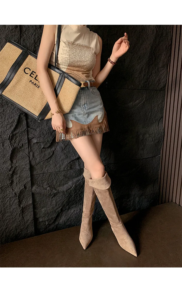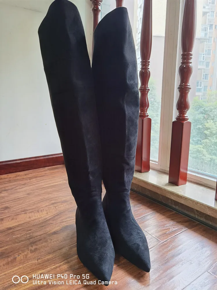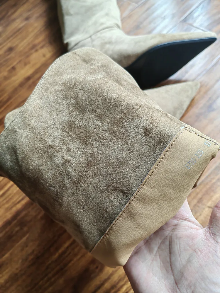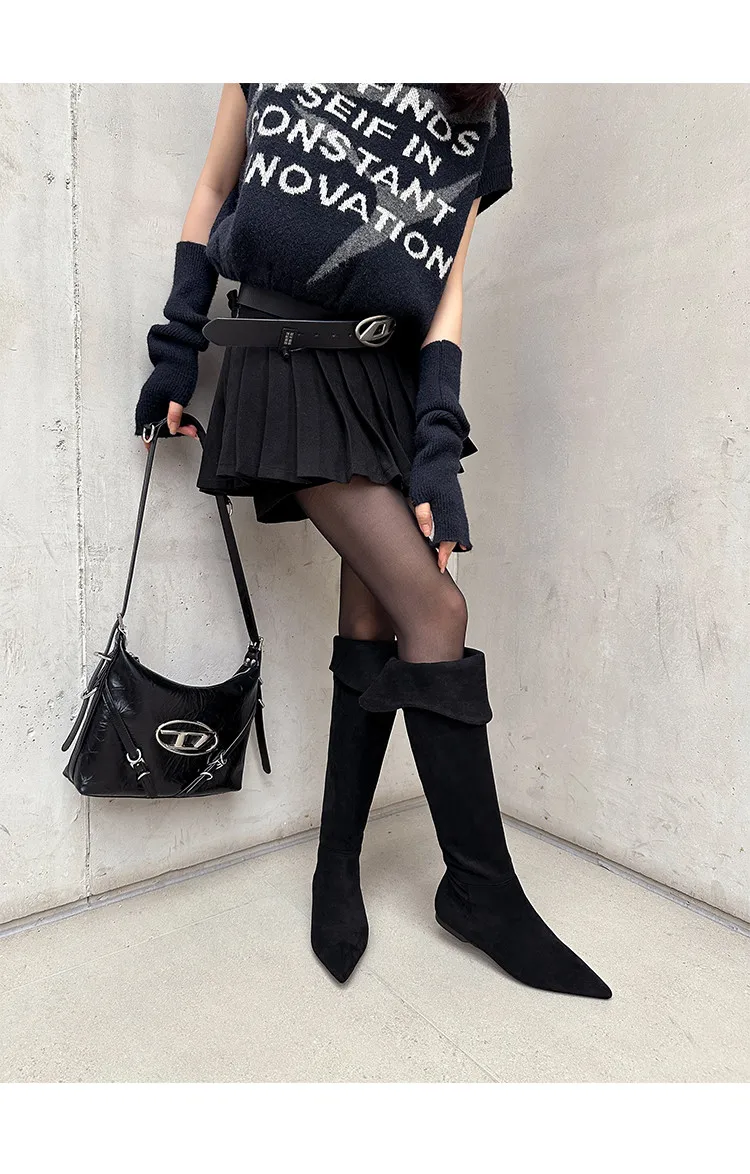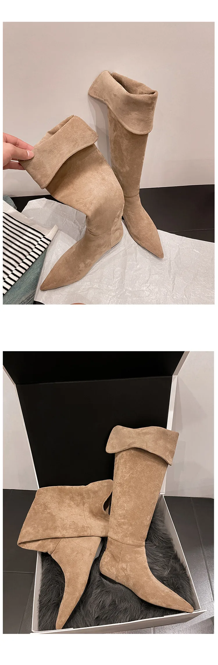 LBSFY - Fashion Over Knee Boots Women's New High Quality Suede Pointed Wide Tube Comfortable Flat Bottom Boots Modern Long Boots