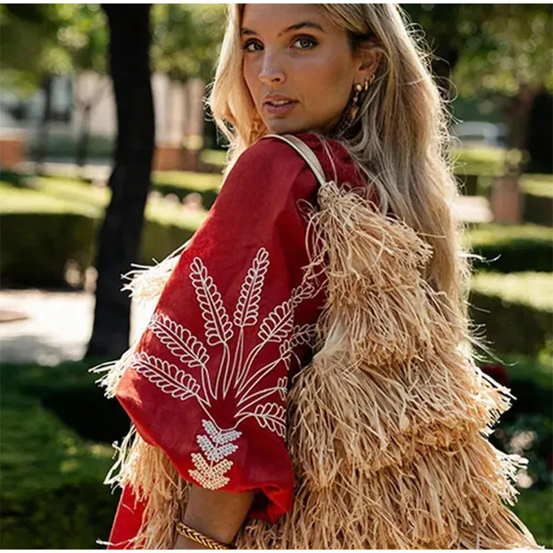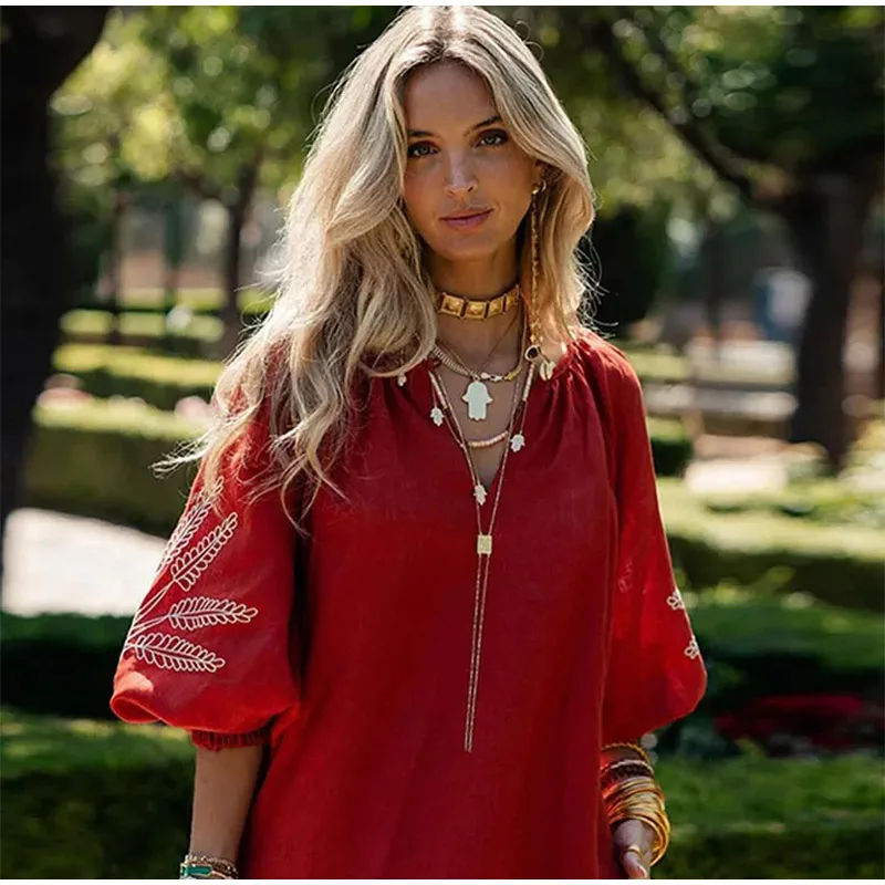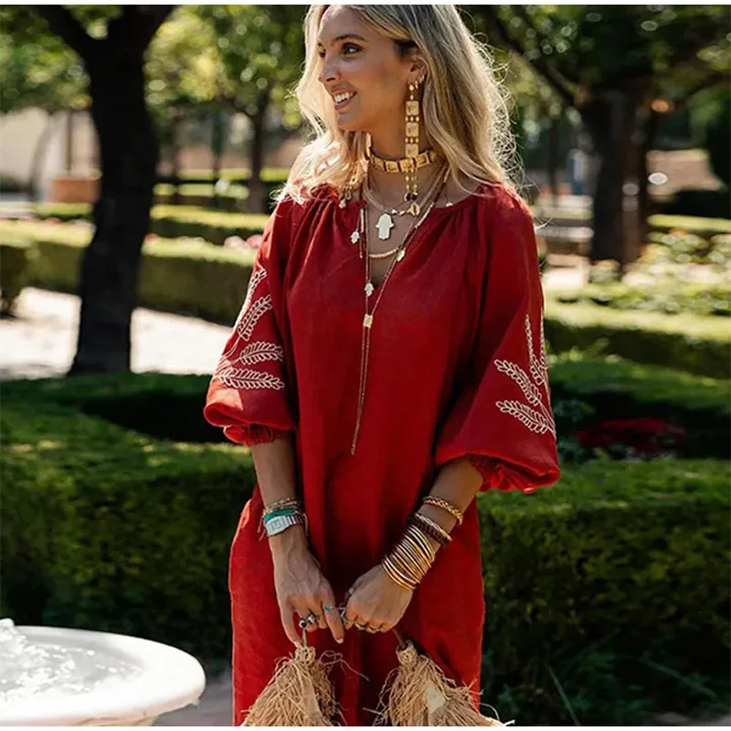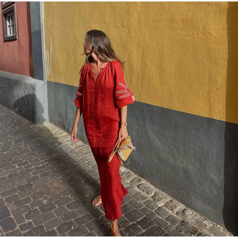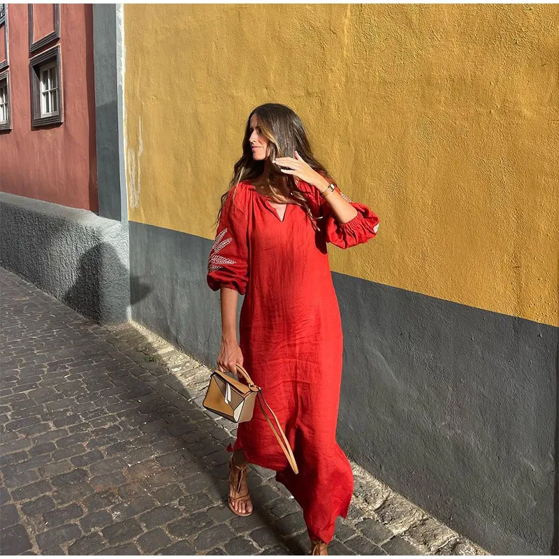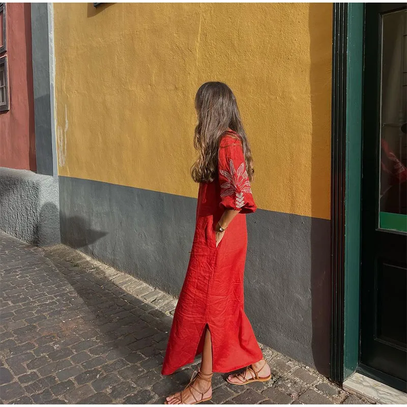 LBSFY - Fashion Printing Half Sleeve Loose Split Dress For Women 2025 Vintage V Neck Maxi Casual Dresses Elegant New Lady Vacation Robes