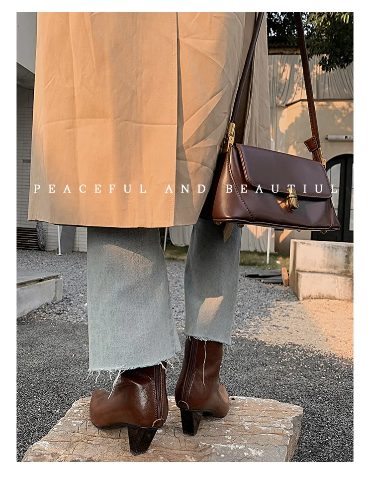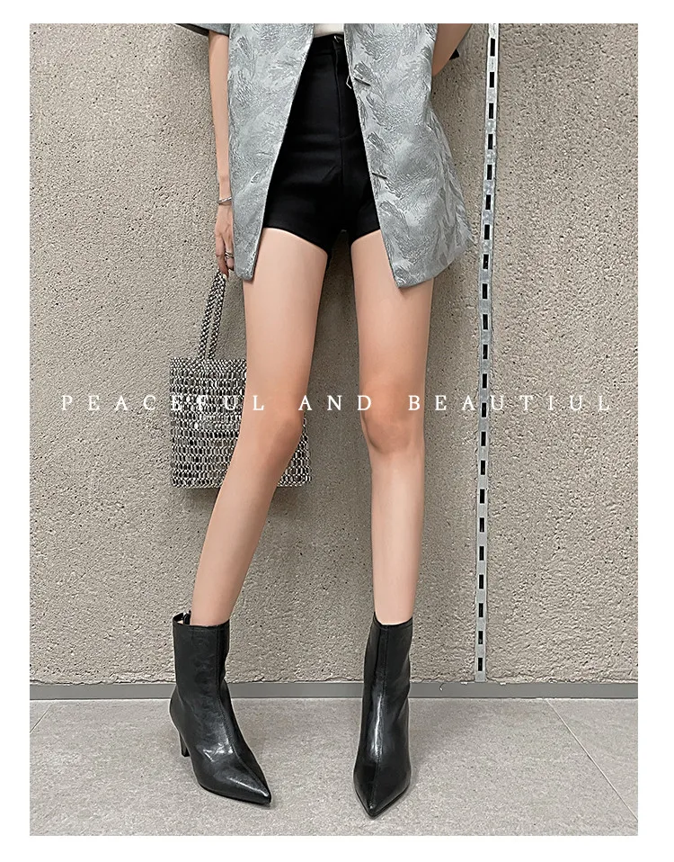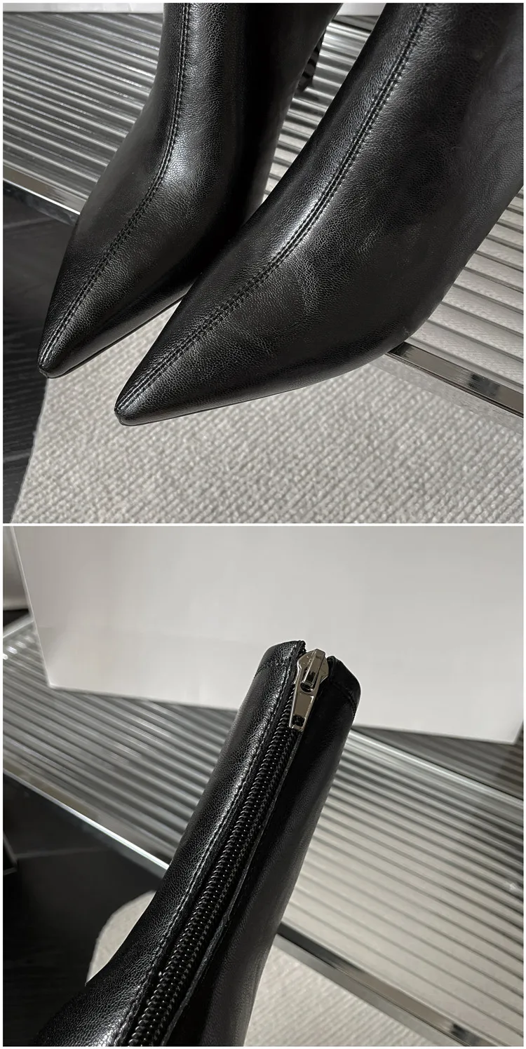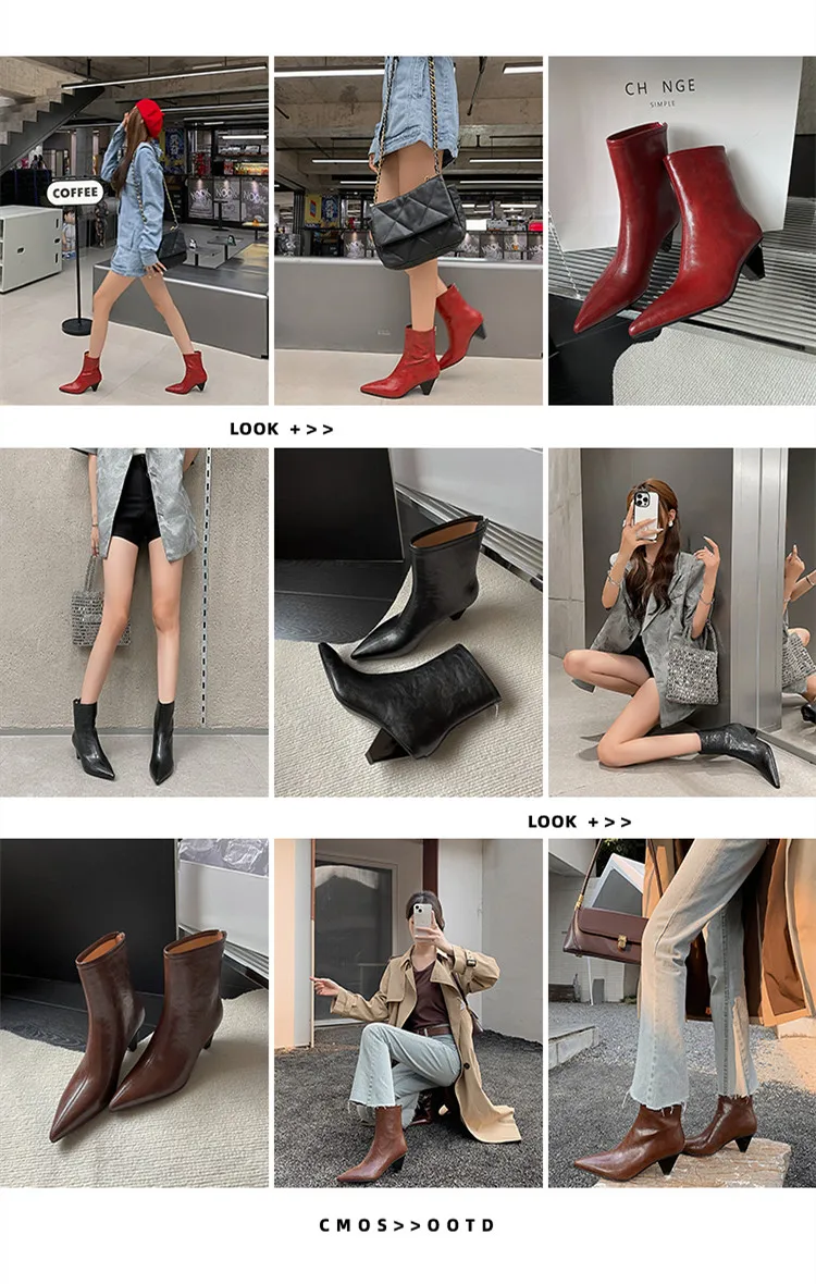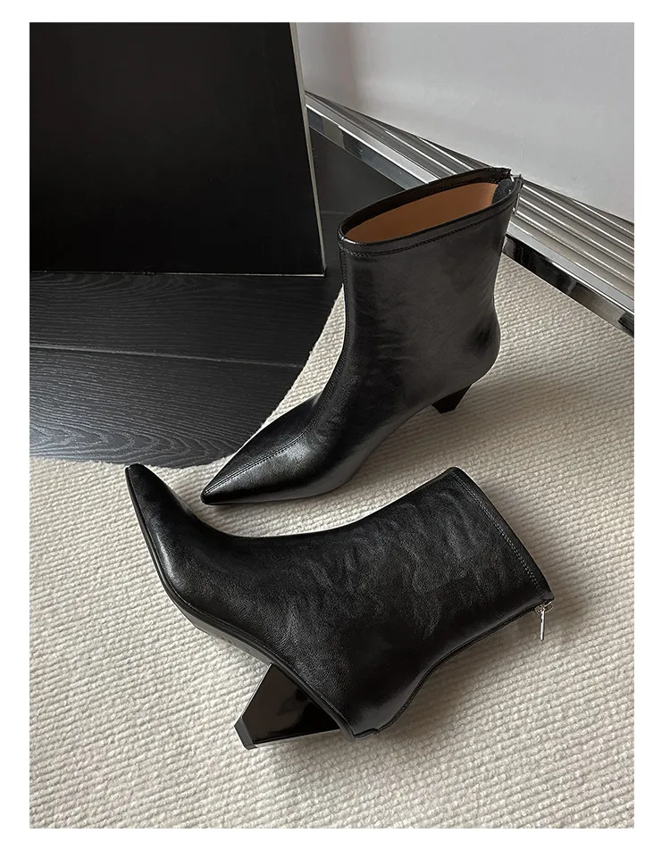 LBSFY - Fashion Short Boots Women's New High Quality Genuine Leather Pointed Head Cone Heel Boots Commuter Calf Ankle Boots