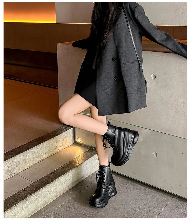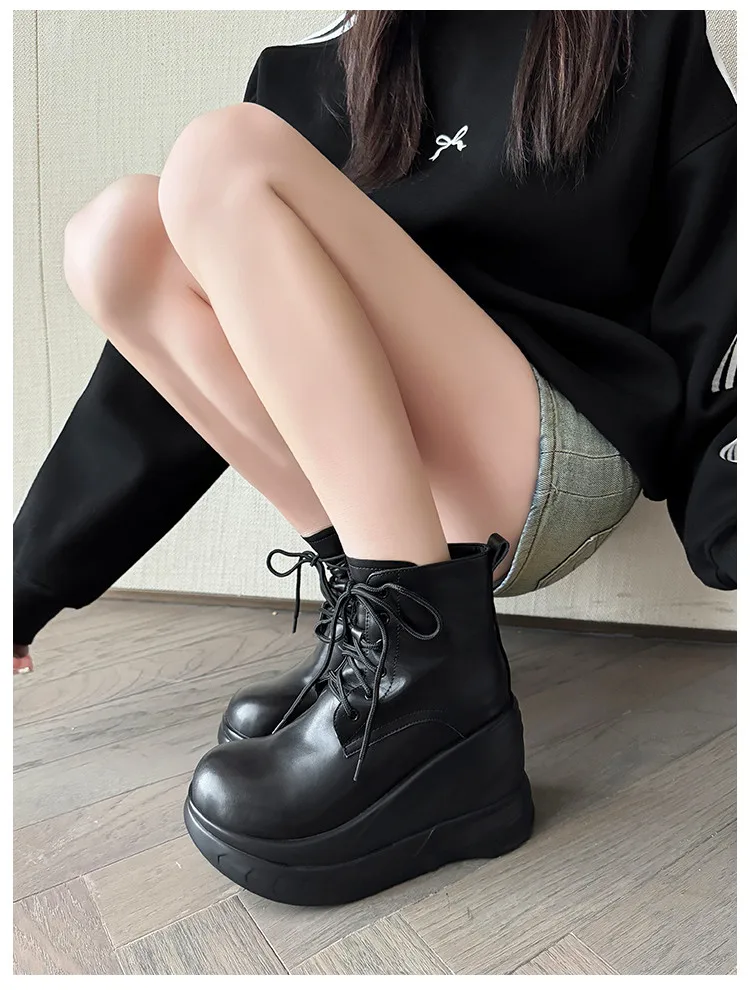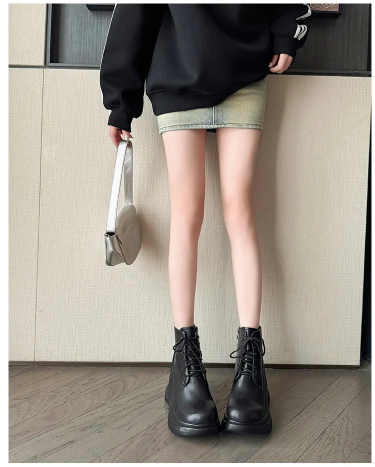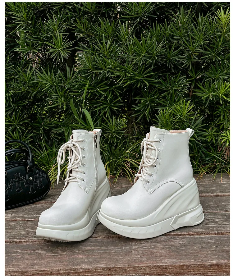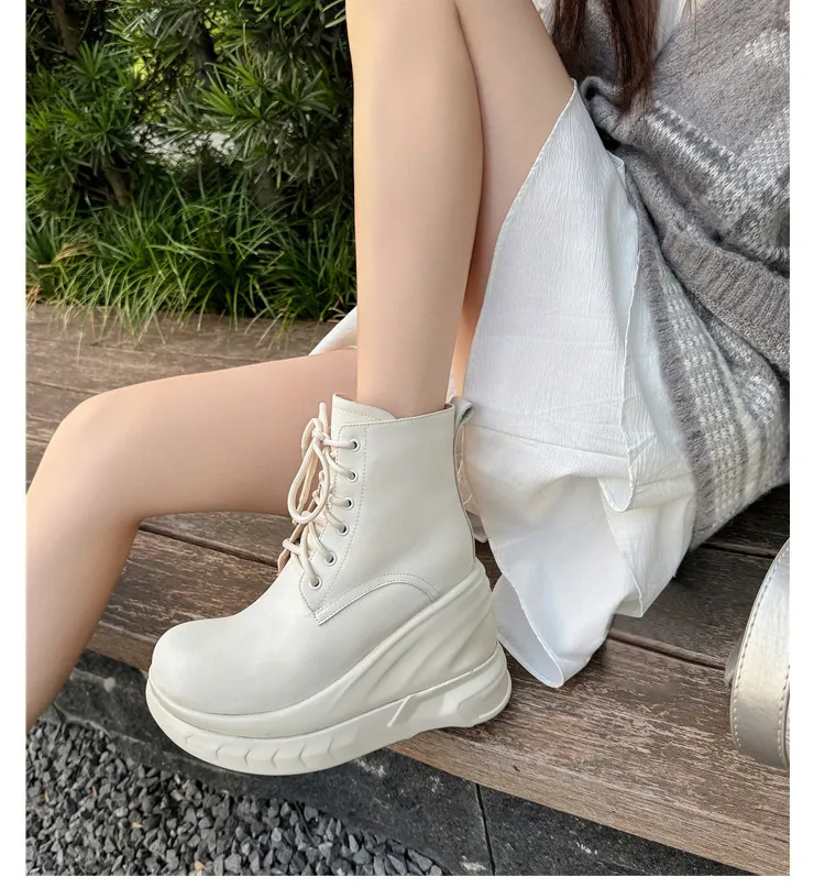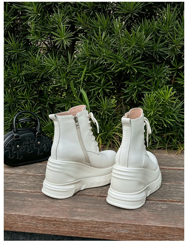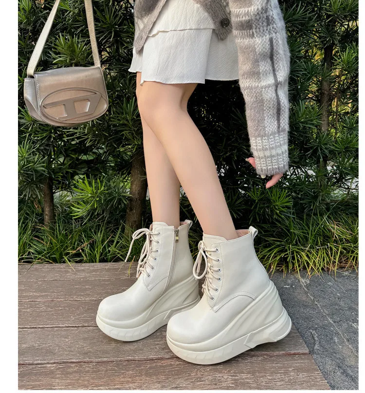LBSFY - Fashion Short Boots Women's New High Quality Genuine Leather Round Head Tall White Thick soled Shoes Flat Bottom Boots