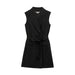 LBSFY -Fashion Simple Slim Fit Blended Short Dress Elegant Solid Color Lapel Summer Dress With Belt Dresses Bouble Breasted Dress