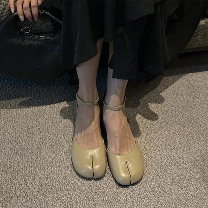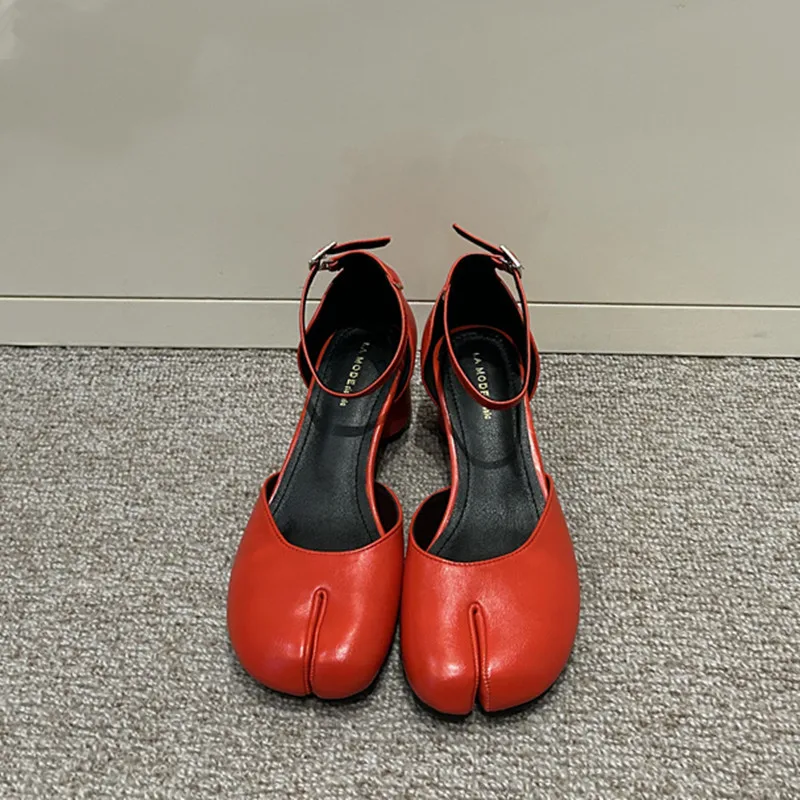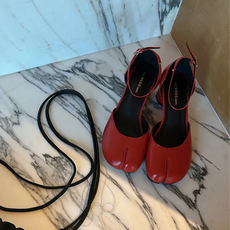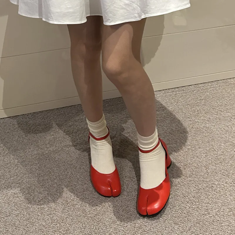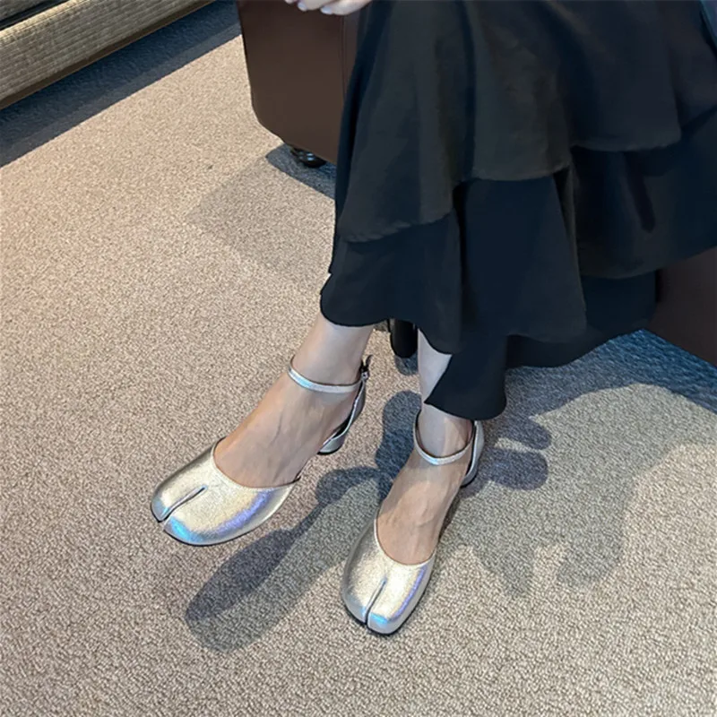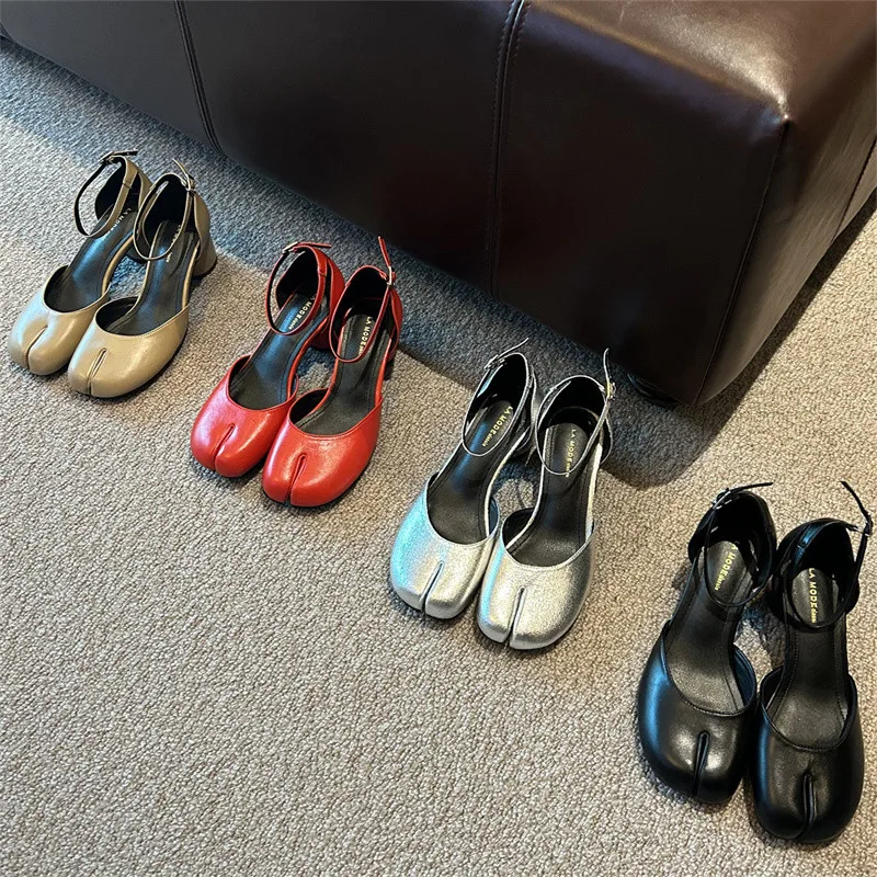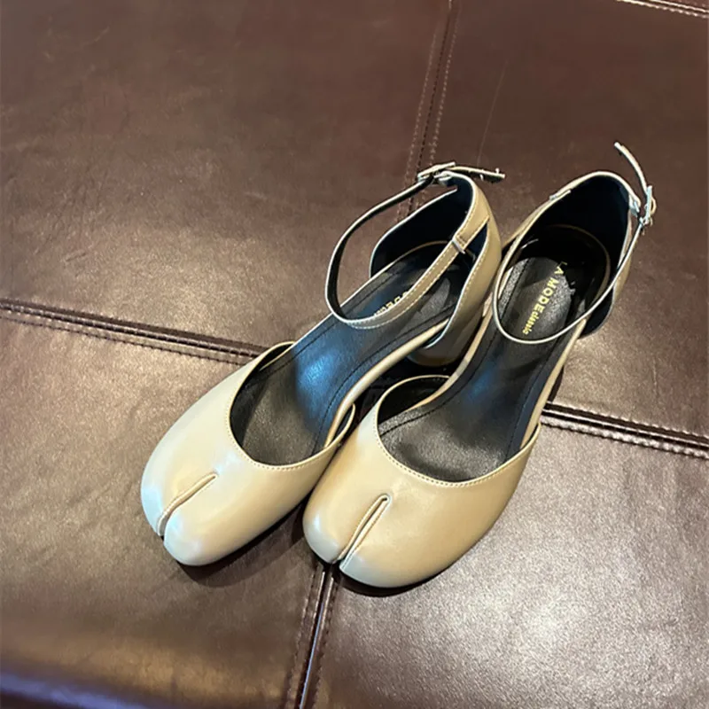 LBSFY -Fashion Tabi Ninja Women Shoes Round Split Toe Shallow Thick Heel Sandals Mid Heel Mary Janes Shoes Female Pumps Mujer