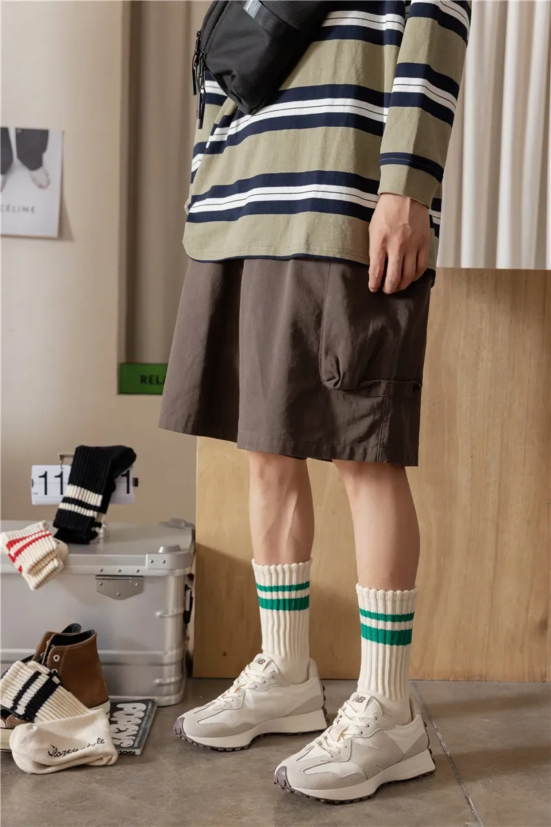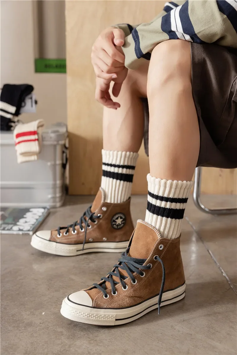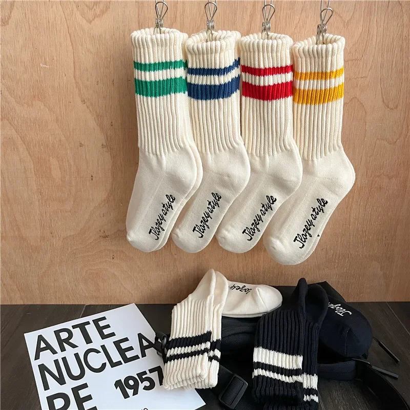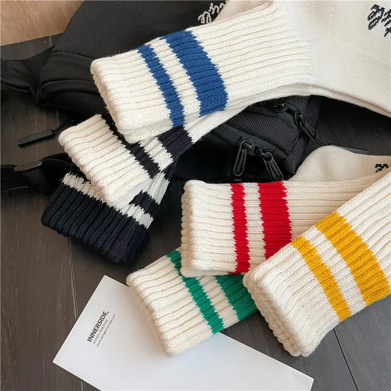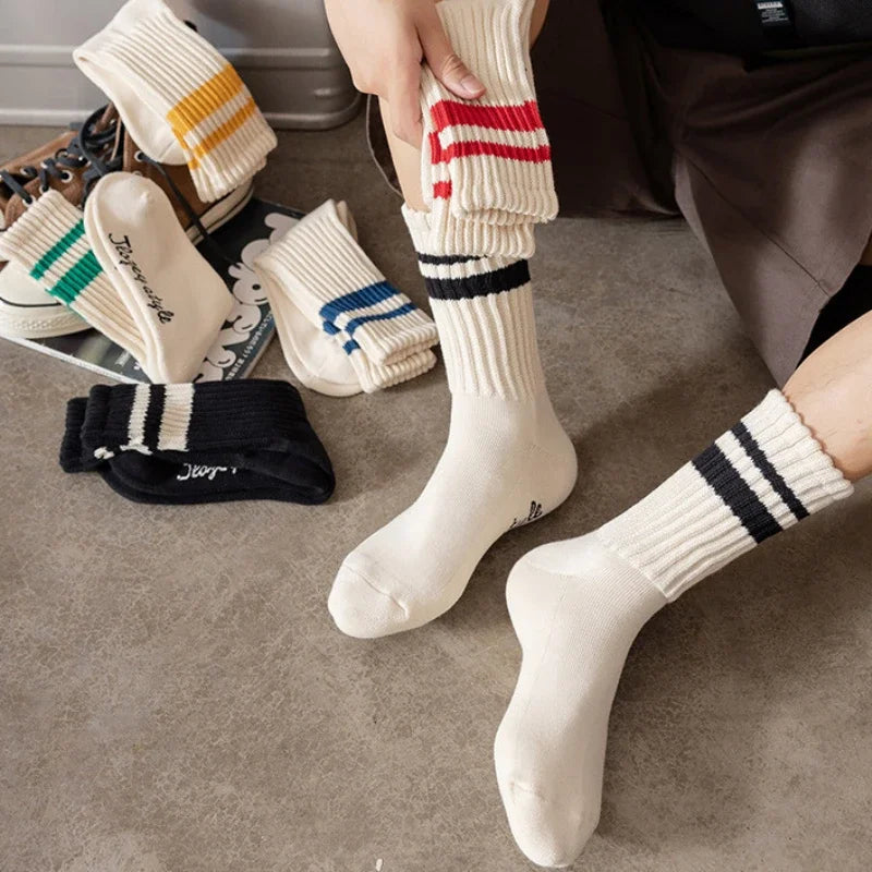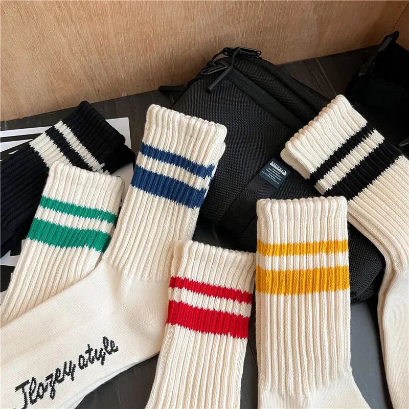 Lbsfy Fashion Unisex Striped Cotton Mid-calf Warm Socks Sweat-absorbent Anti-friction Sports Socks Men Basketball Socks Running Socks