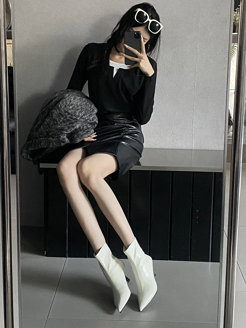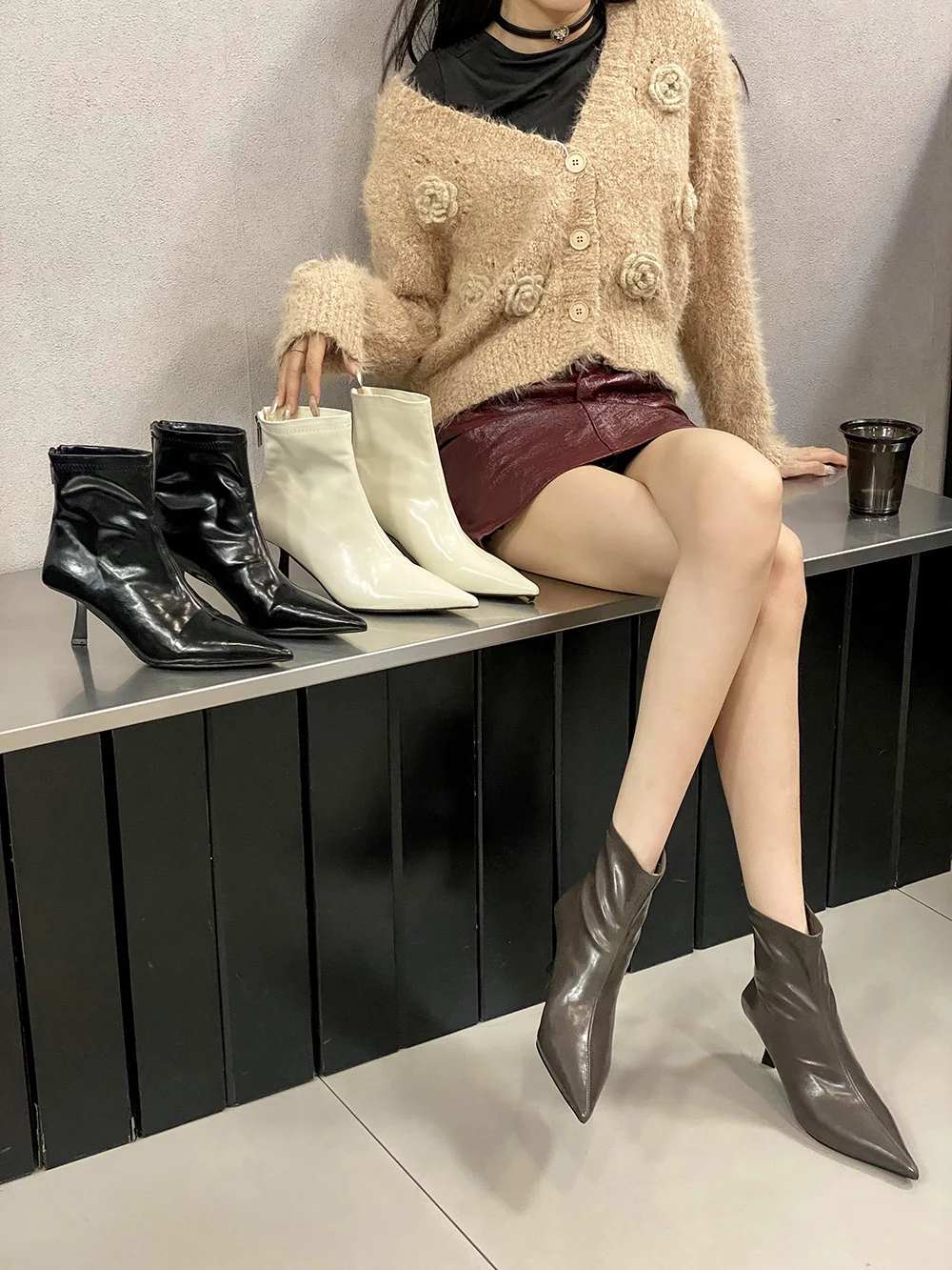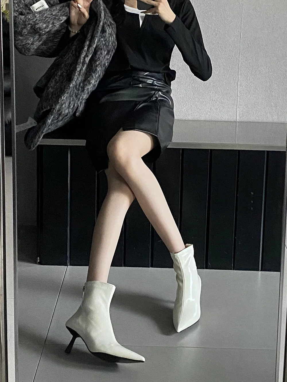 LBSFY - Fashion Women Ankle Boots Ladies Sock Stretch Shoes Thin High Heels Party Pumps Dress Shoes Sexy Sock Boots Woman Size 35-40