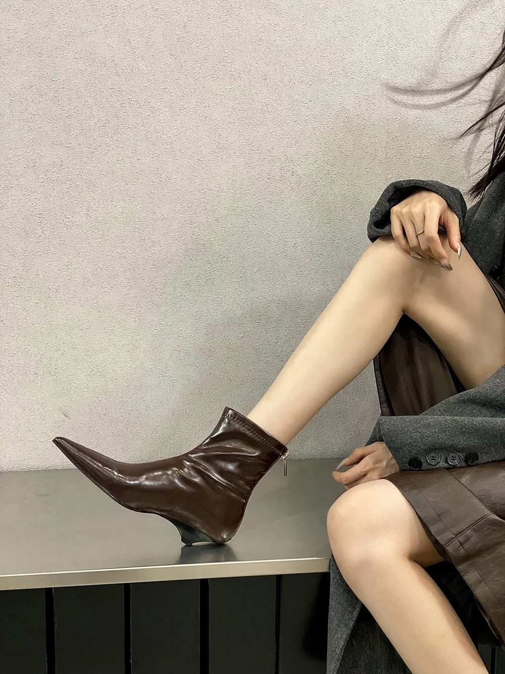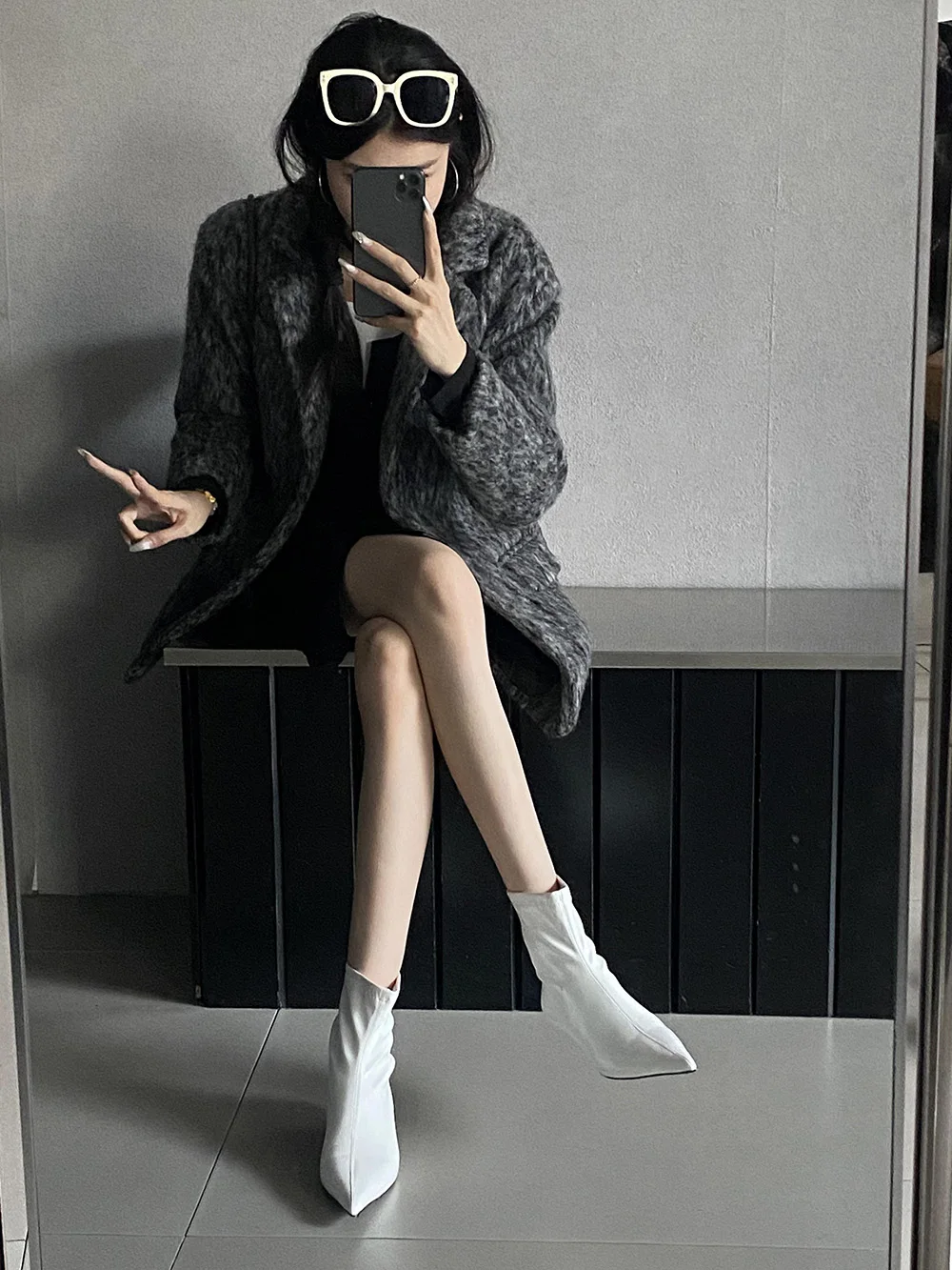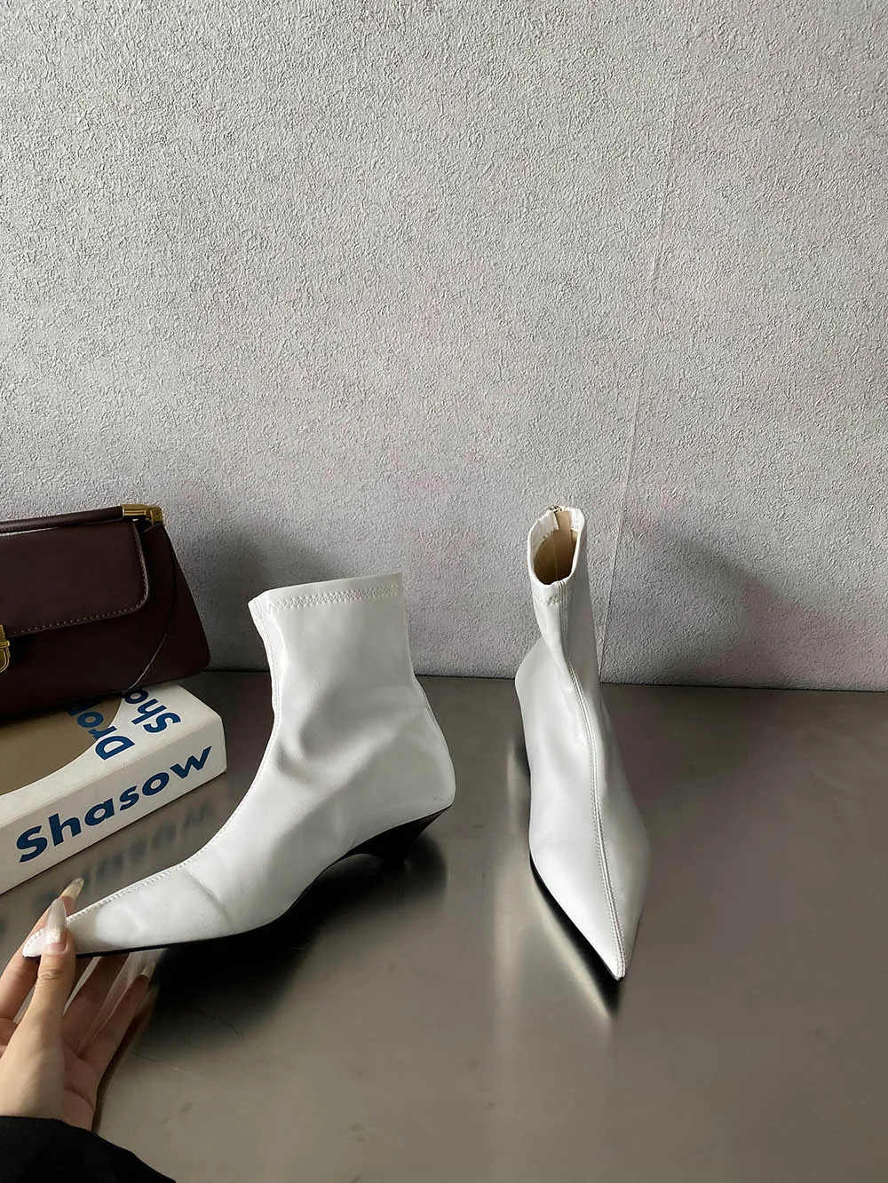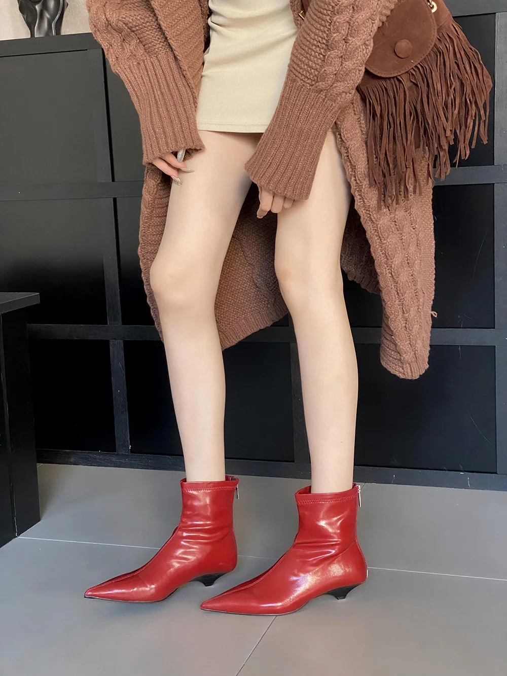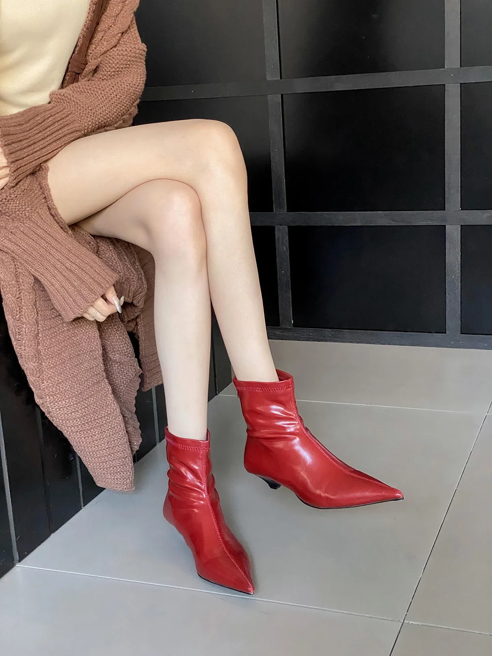 LBSFY - Fashion Women Ankle Boots Sock Botas Wedge Mid Heels Black White Red Stretch Boots Back Zipper Winter Autumn Short Boots 35-39