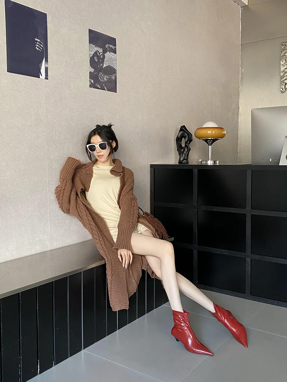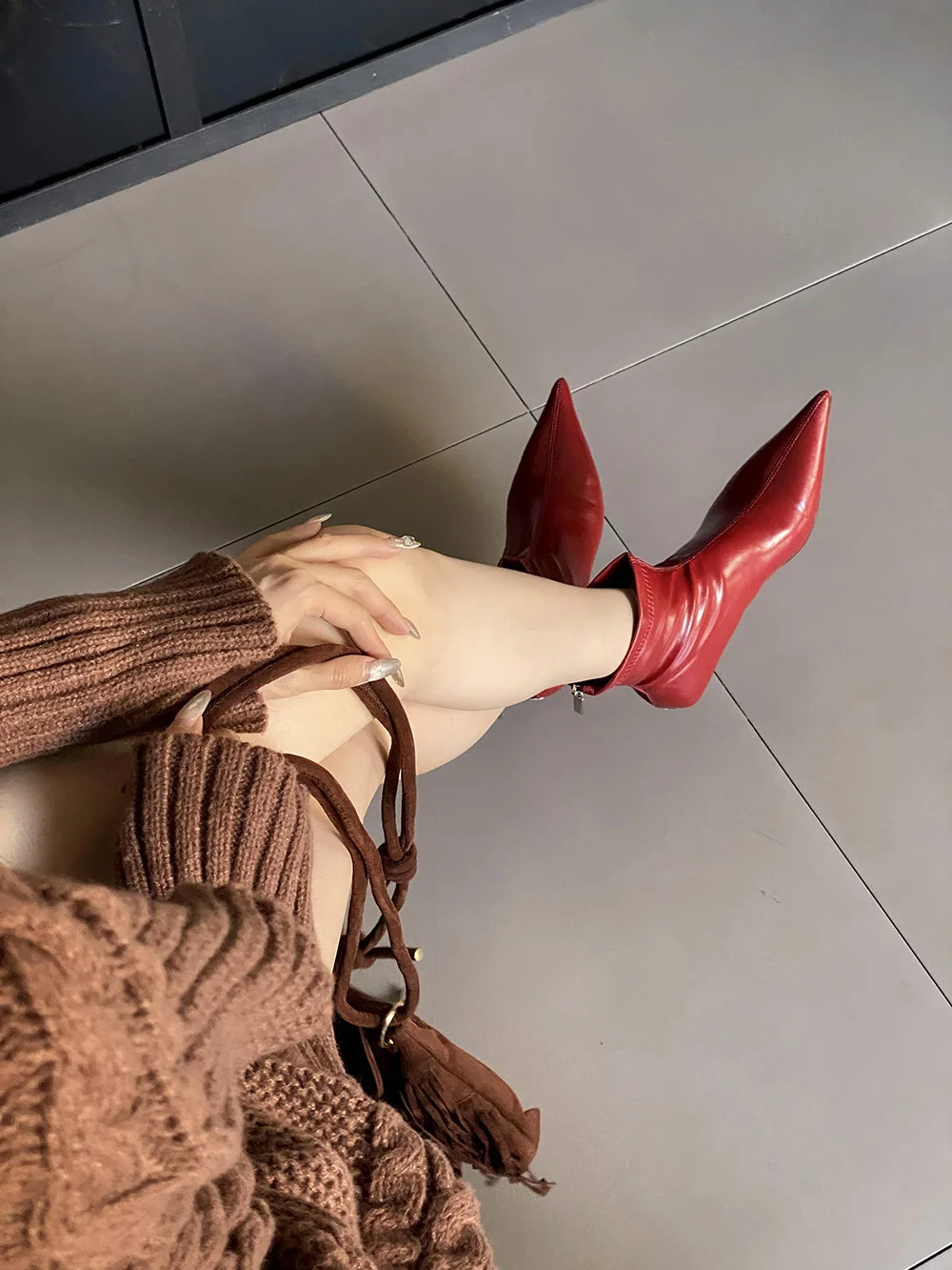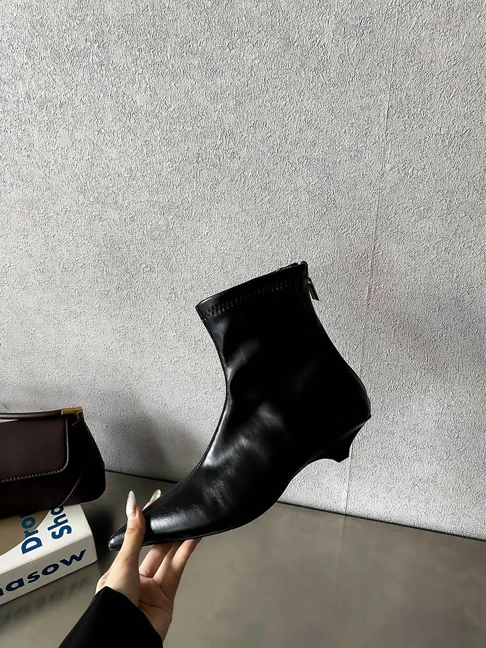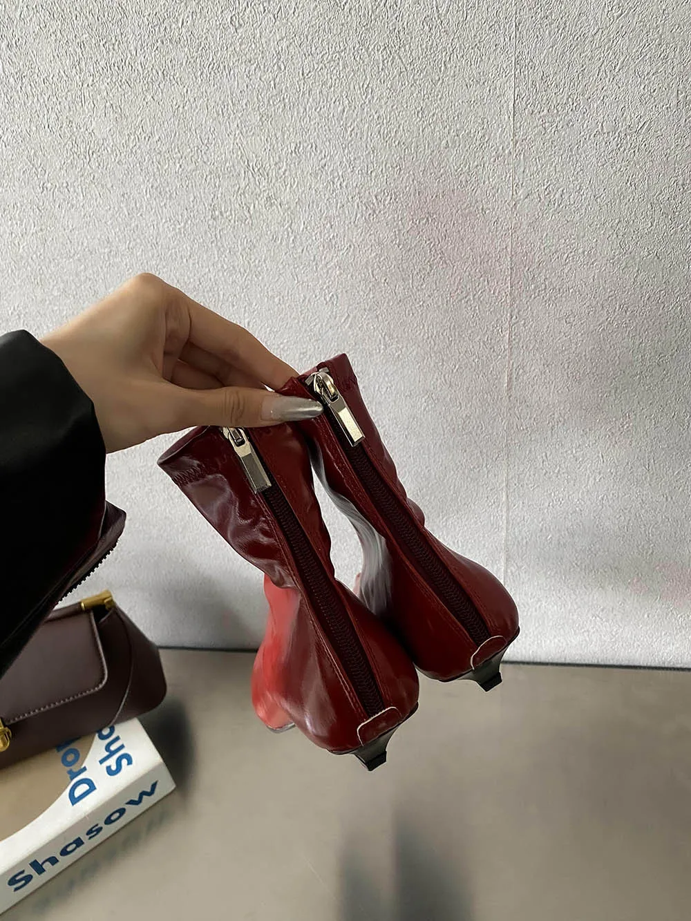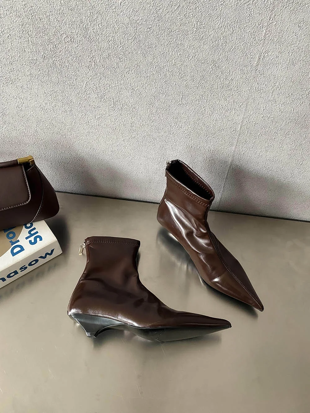 LBSFY - Fashion Women Ankle Boots Sock Botas Wedge Mid Heels Black White Red Stretch Boots Back Zipper Winter Autumn Short Boots 35-39