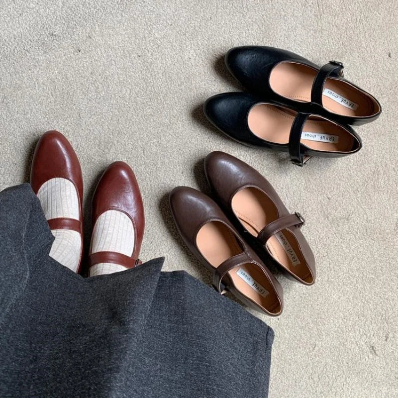 LBSFY  -  Fashion Women Flats Brand Design Square Toe Women Ballet Shoes Casual Buckle Strap Female Dress Shoes Low Heels Mu