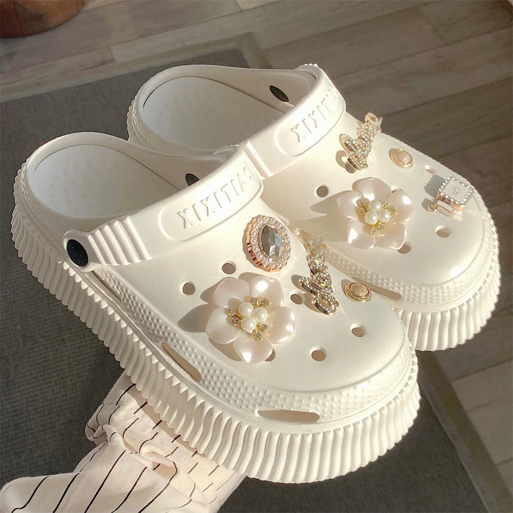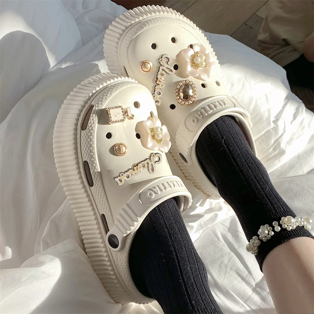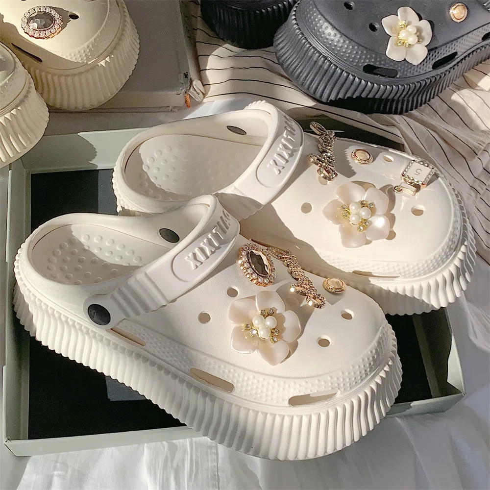 LBSFY - Fashion Women Hole Shoes EVA Soft Thick Sole Baotou Slippers Comfortable Thick Sole Elevated Accessories DIY Beach Hole Shoes