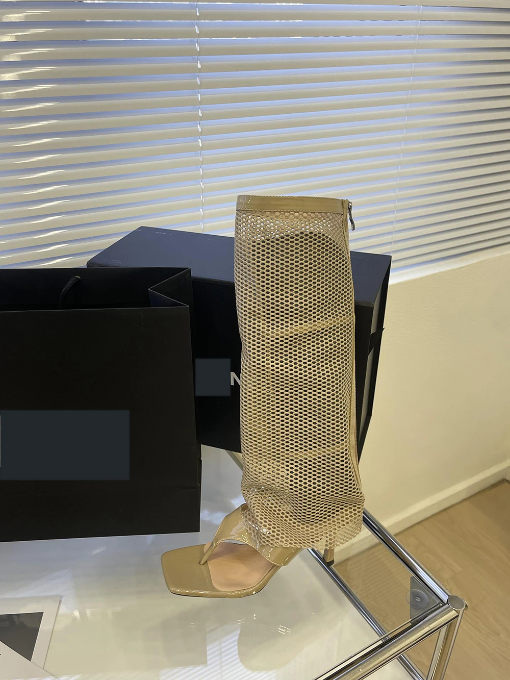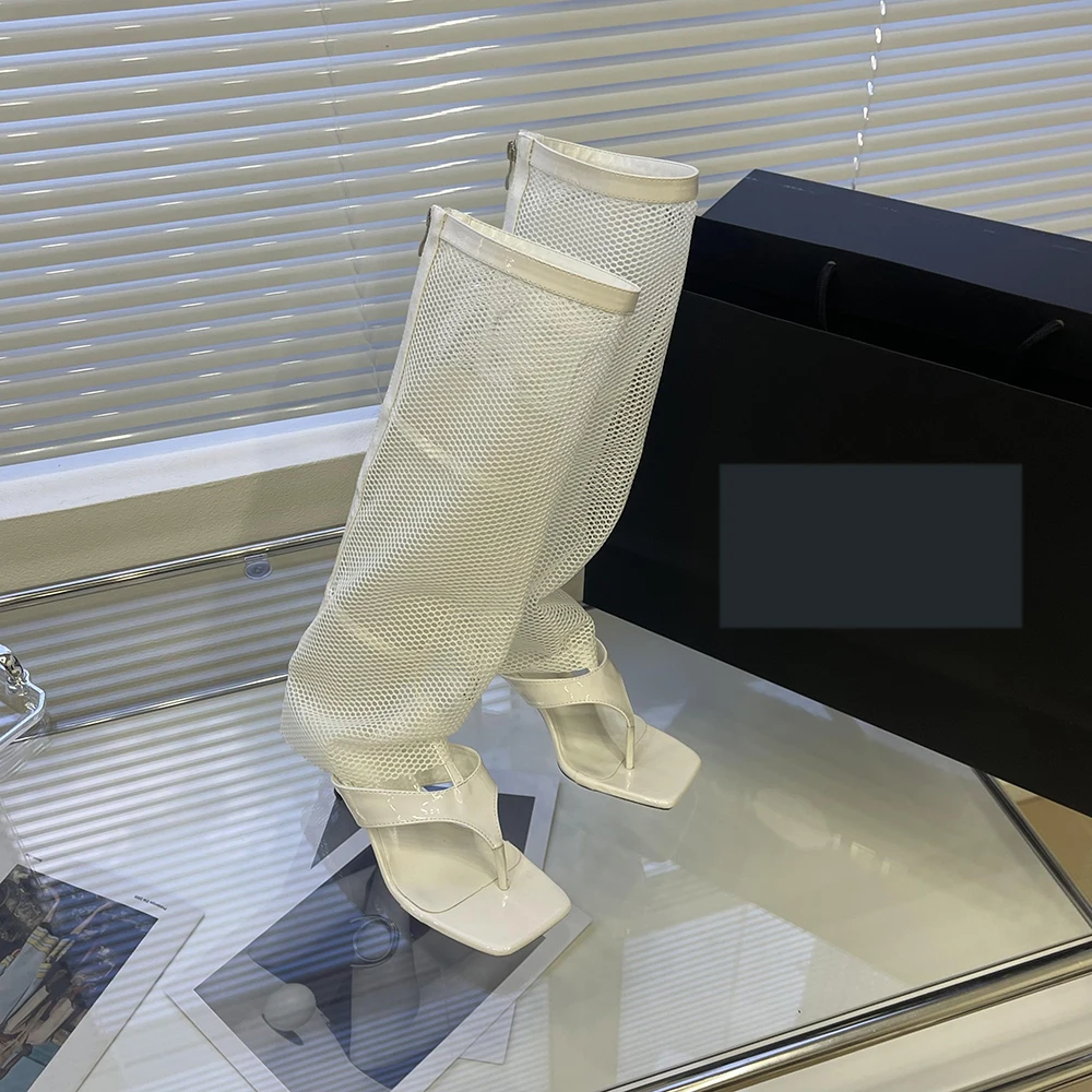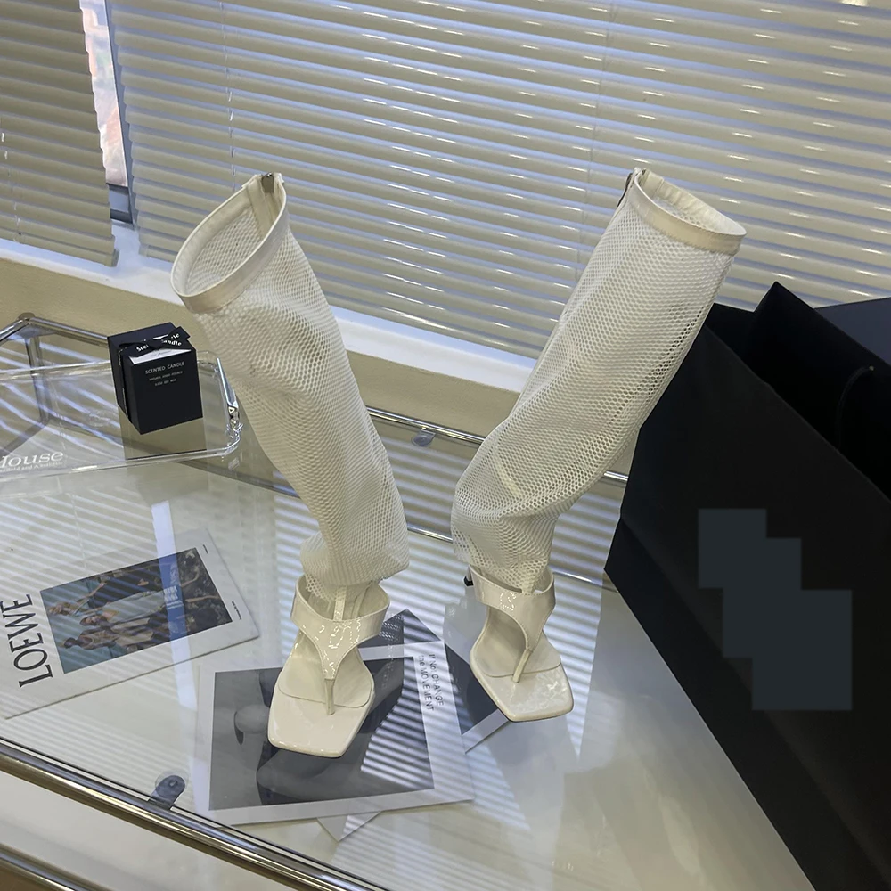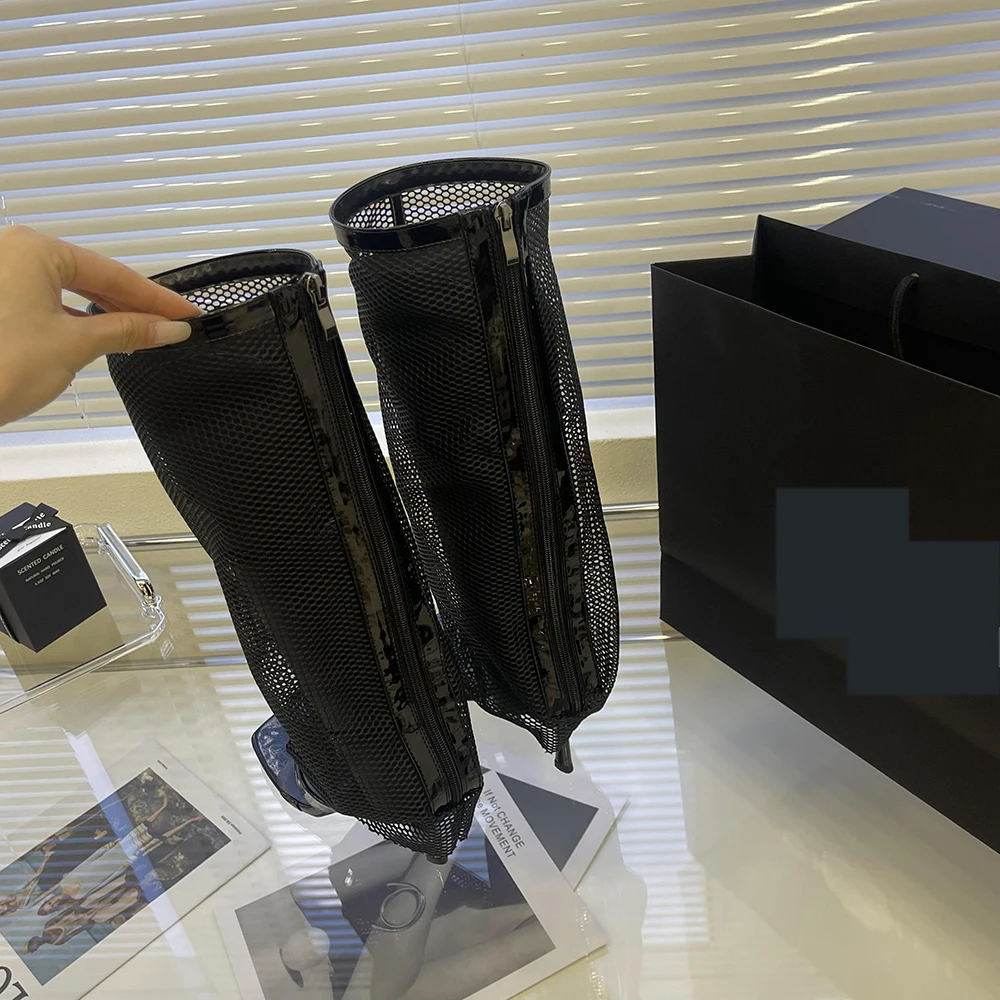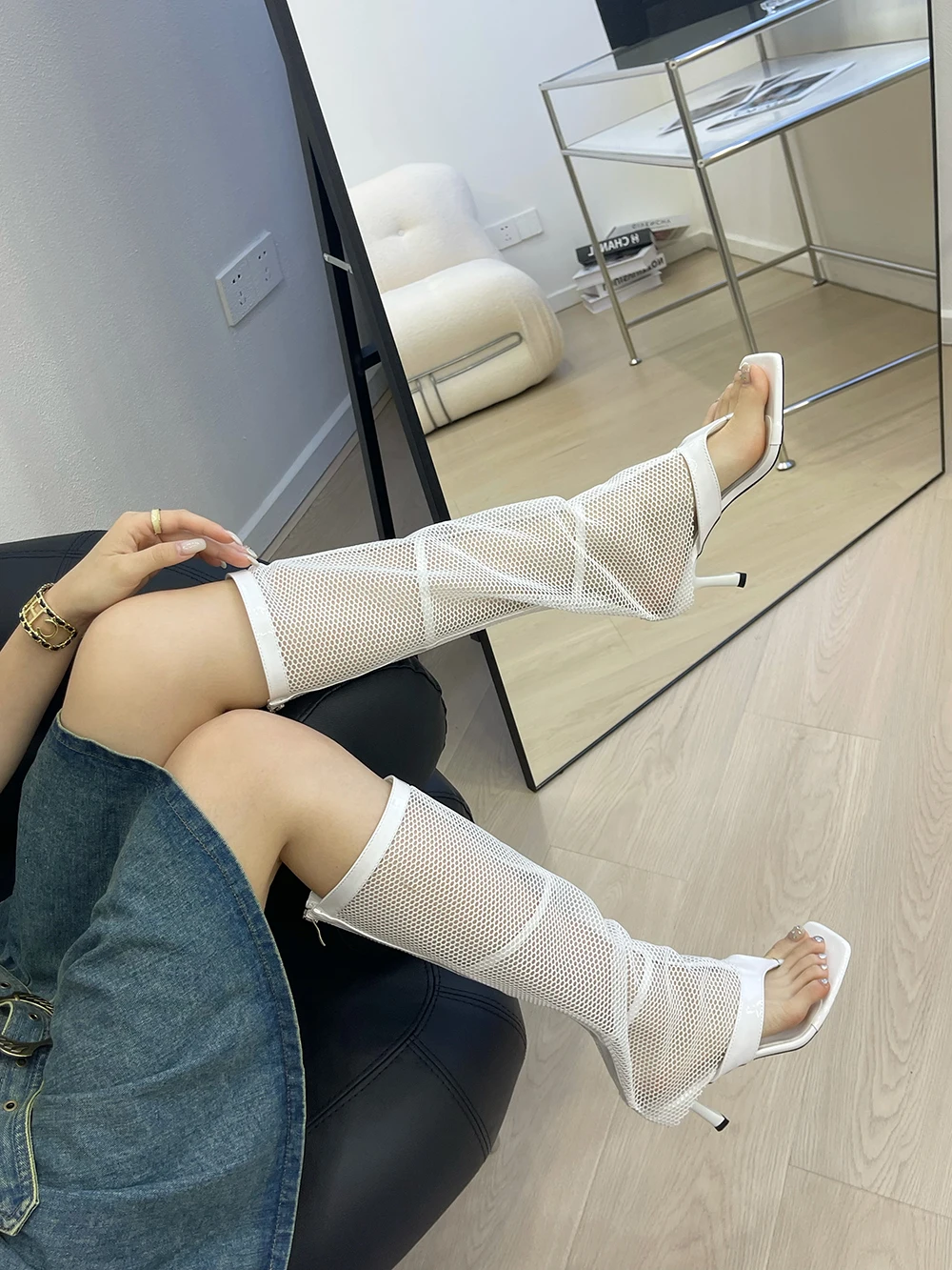 LBSFY - Fashion Women Knee High Boots Air Mesh Thin High Heels Summer Dress Shoes Back Zipper Clip Toe Fashion Party Pumps Size 35-39