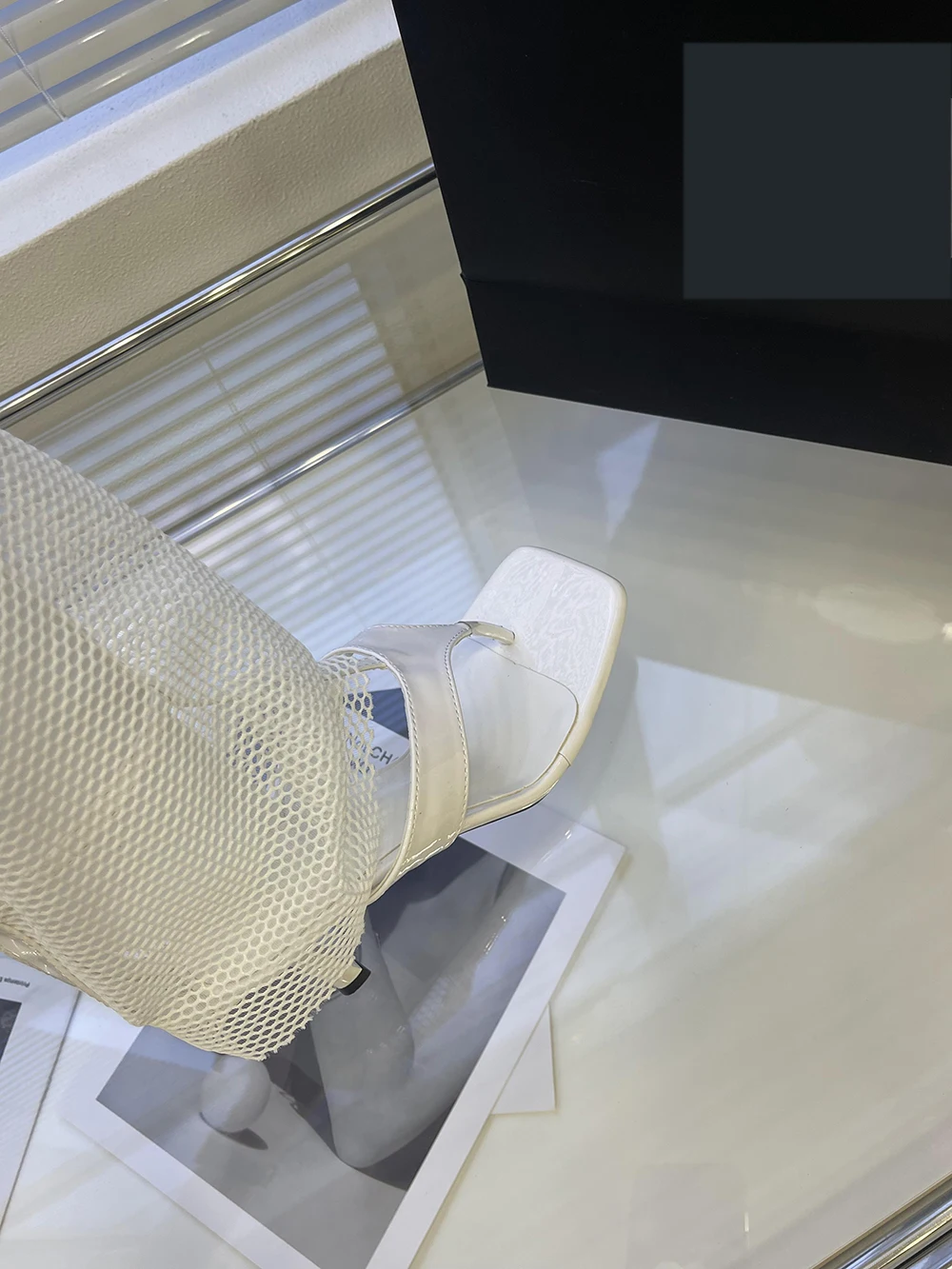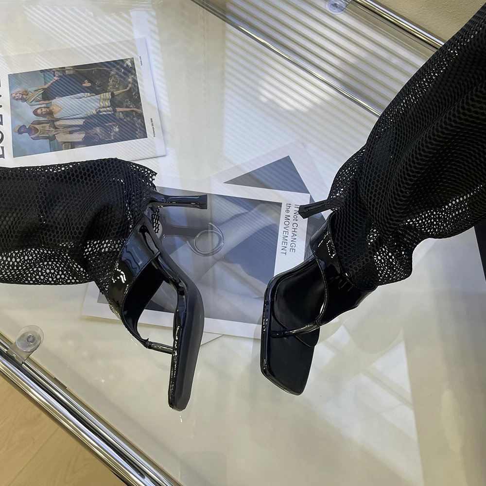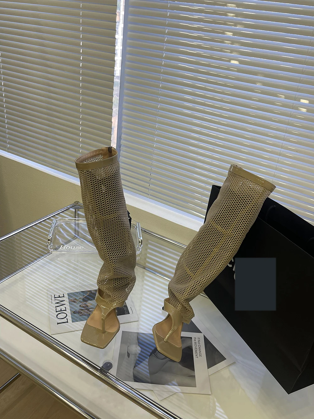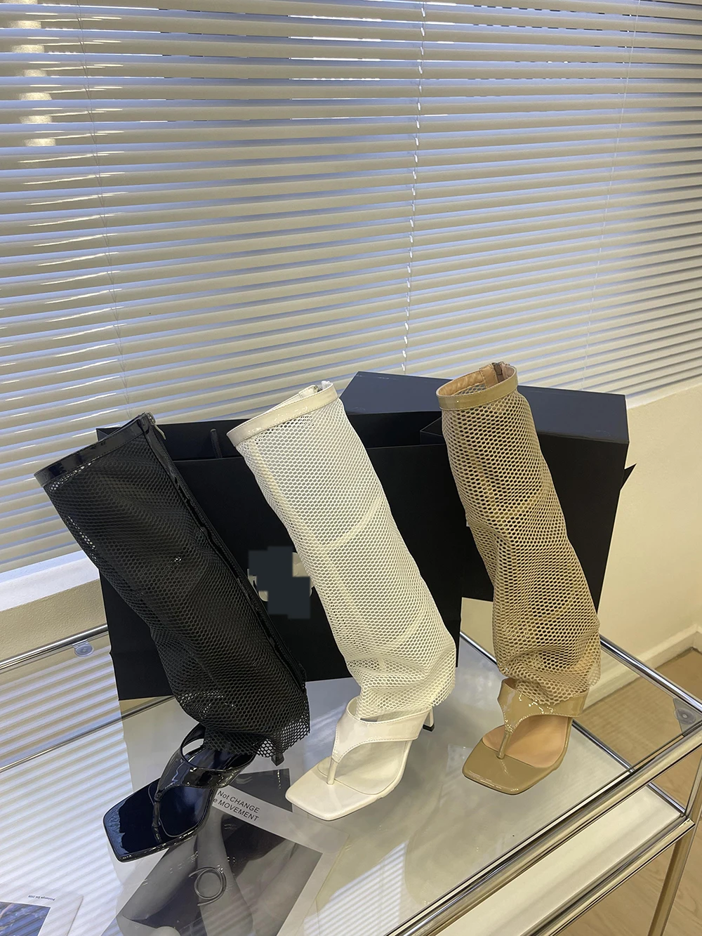 LBSFY - Fashion Women Knee High Boots Air Mesh Thin High Heels Summer Dress Shoes Back Zipper Clip Toe Fashion Party Pumps Size 35-39
