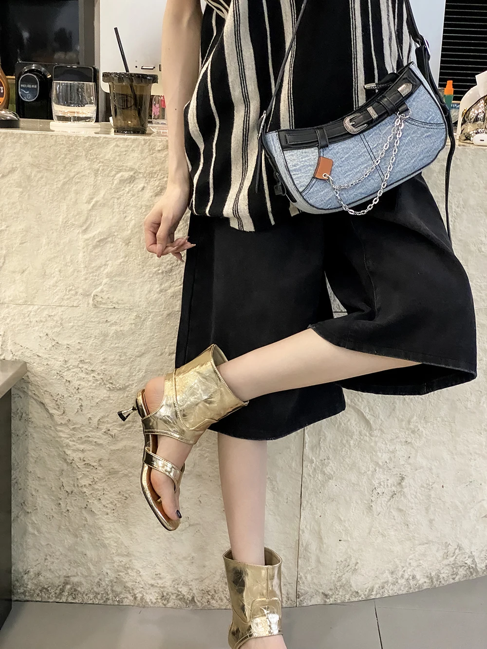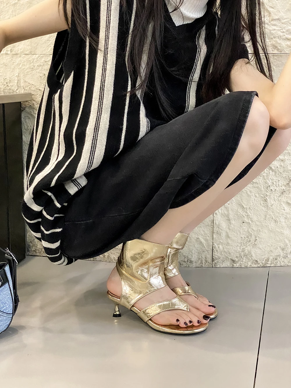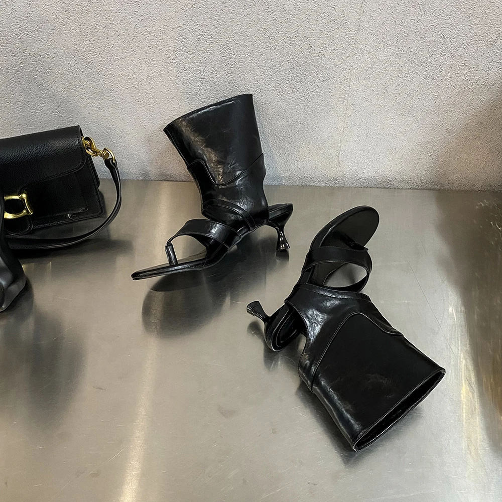 LBSFY - Fashion Women Sandals Boots Woman Summer Dress Shoes Thin Mid Heels Side Zipper Party Pumps Elegant Party Pumps Size 35-40