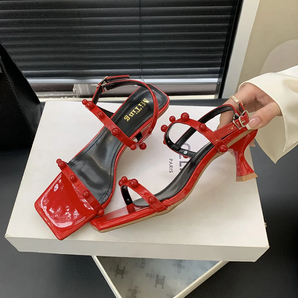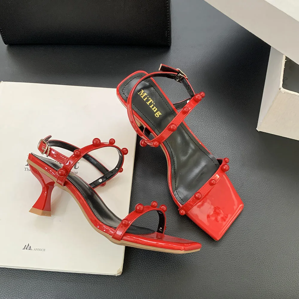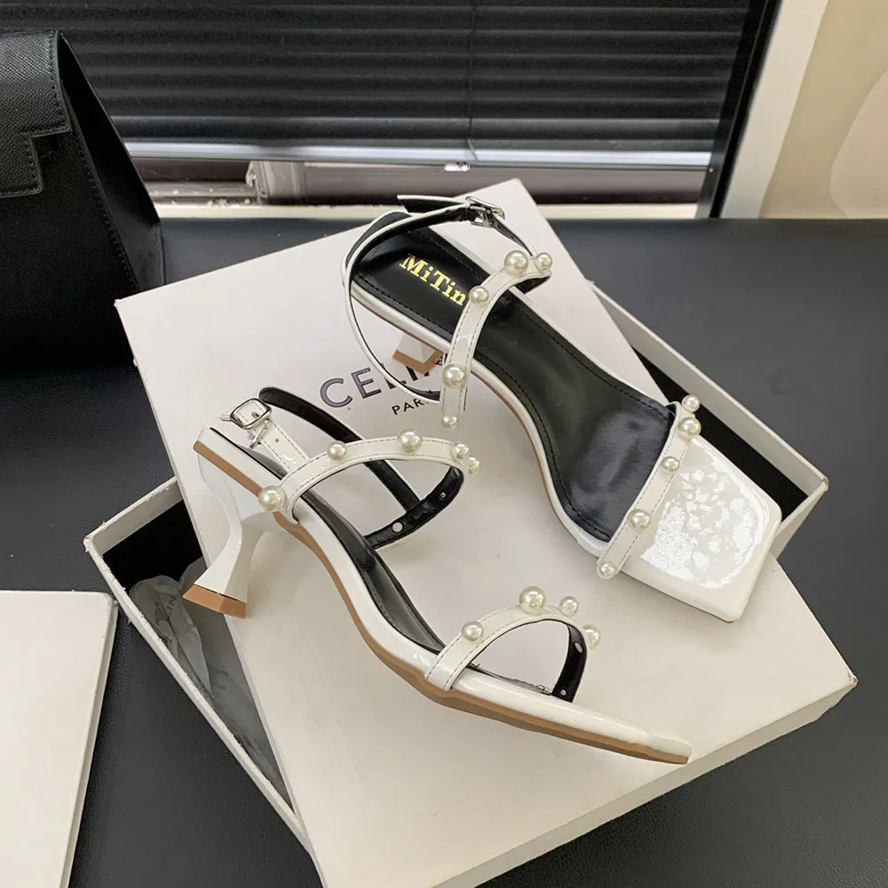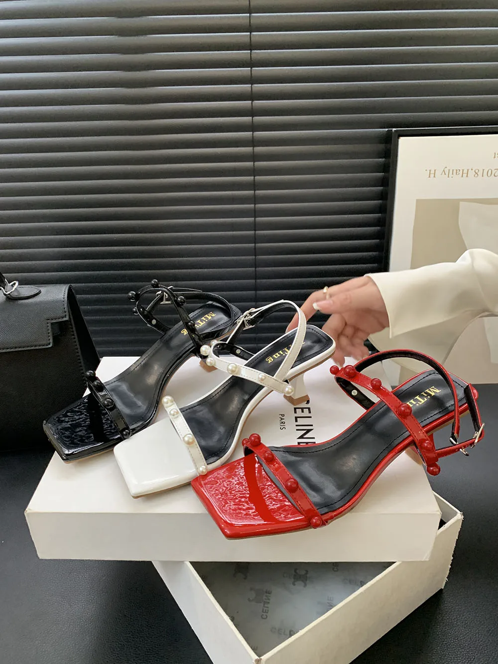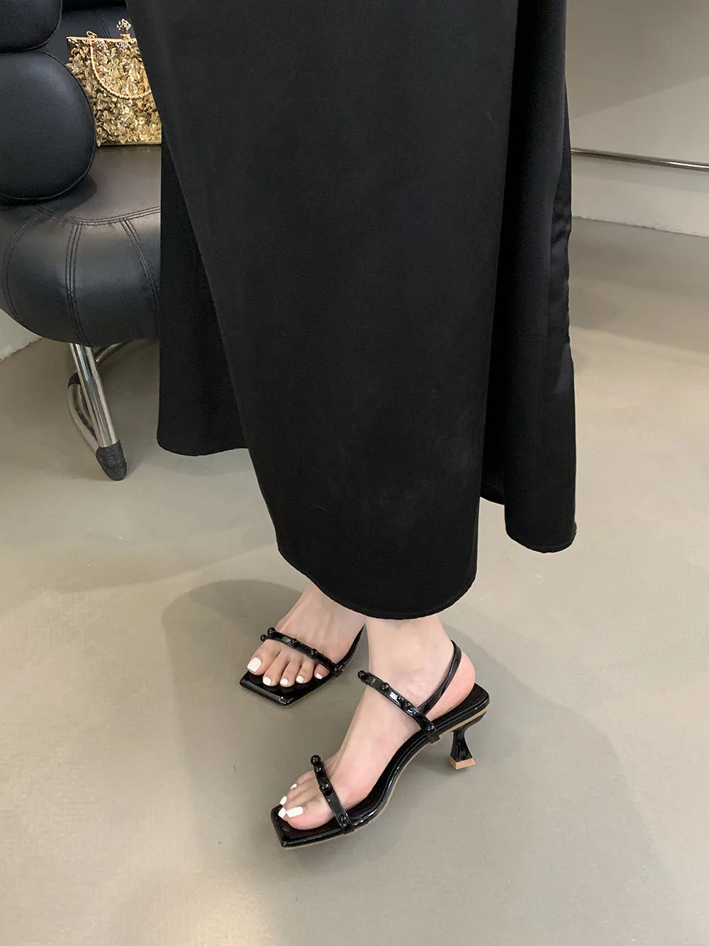 LBSFY - Fashion Women Sandals Narrow Band Patent Leather Summer Dress Shoes Thin High Heels Ankle Strap Party Slides Mules Shoes Size 39