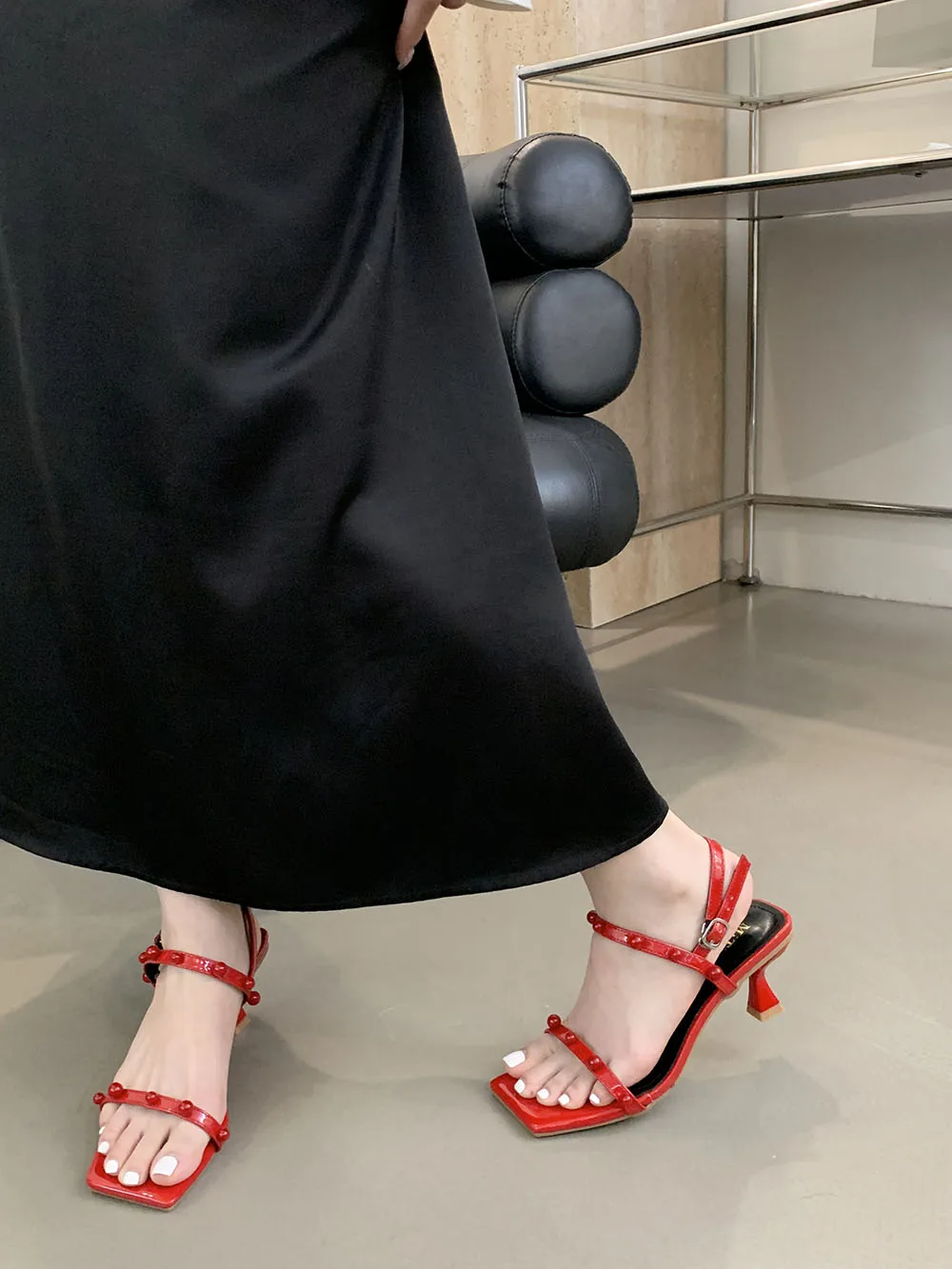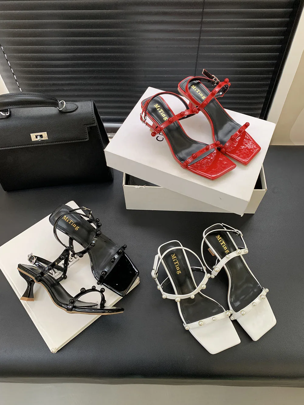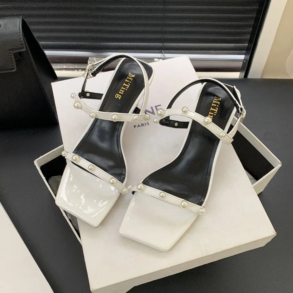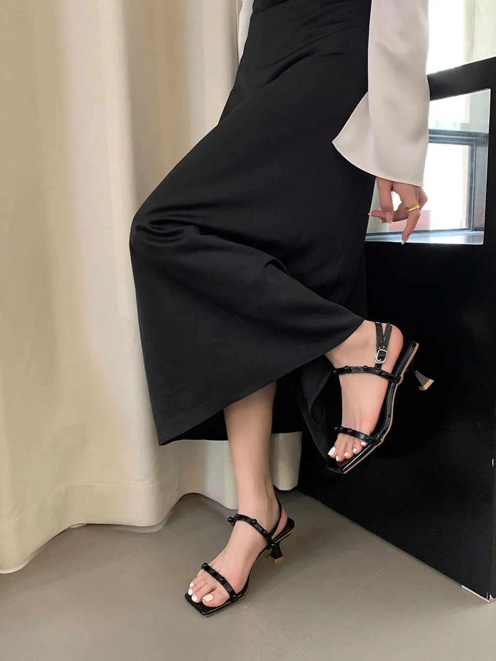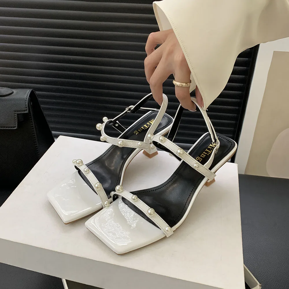 LBSFY - Fashion Women Sandals Narrow Band Patent Leather Summer Dress Shoes Thin High Heels Ankle Strap Party Slides Mules Shoes Size 39