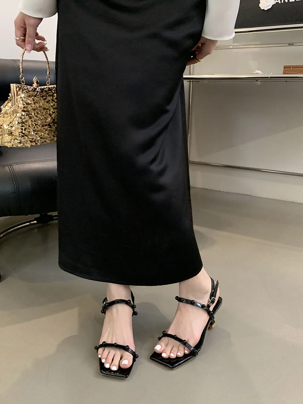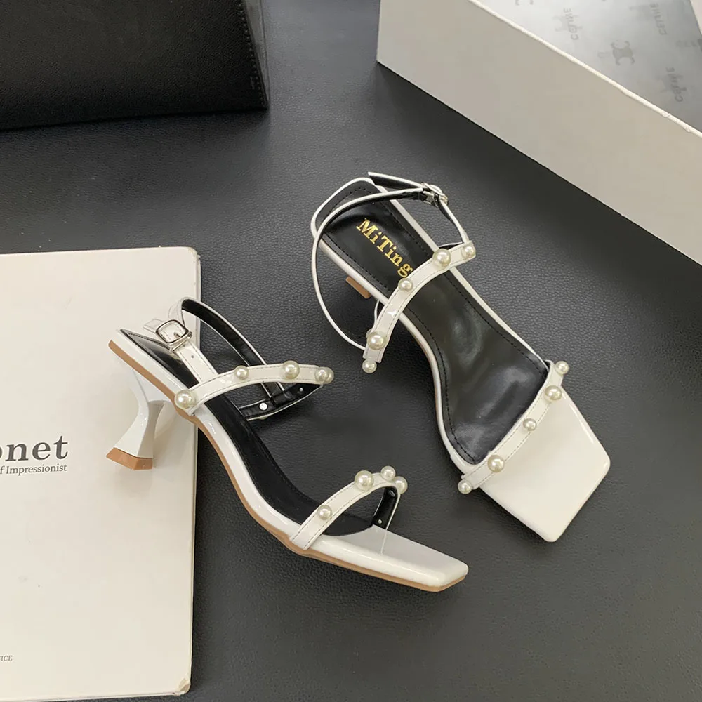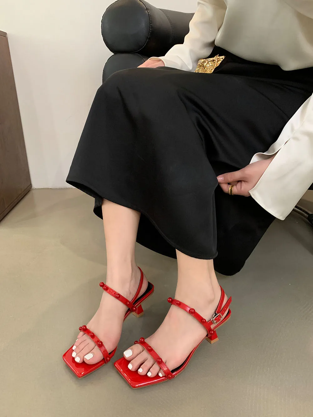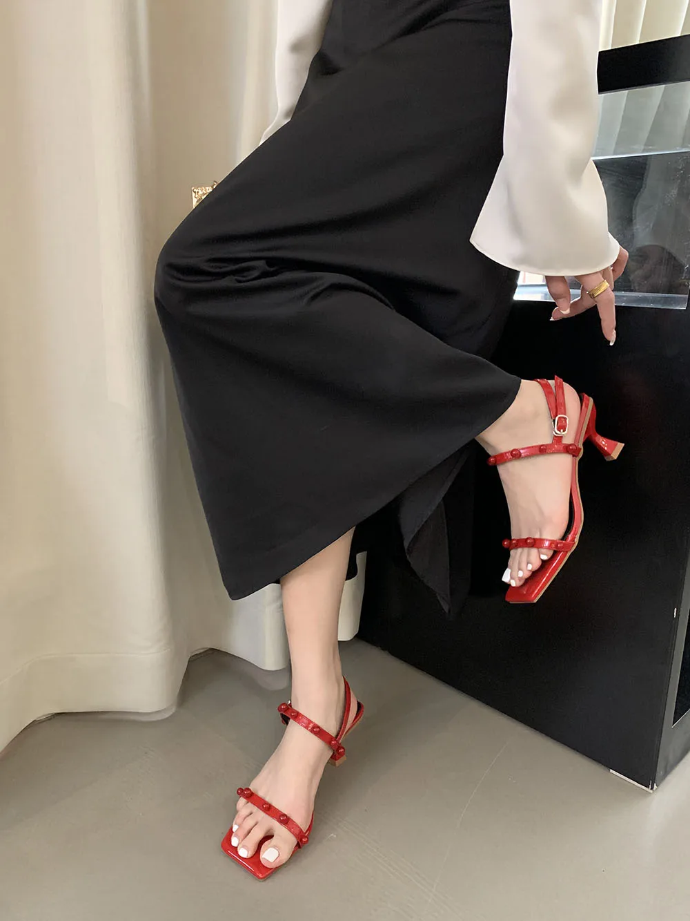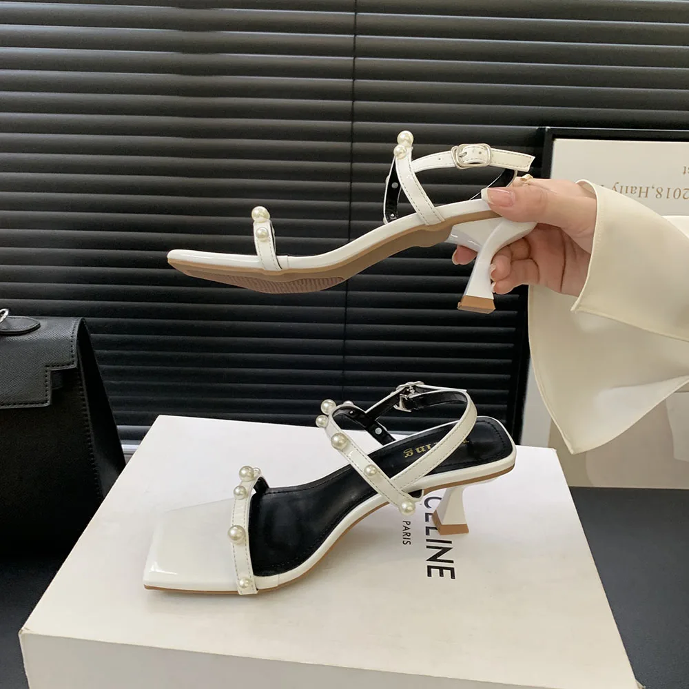 LBSFY - Fashion Women Sandals Narrow Band Patent Leather Summer Dress Shoes Thin High Heels Ankle Strap Party Slides Mules Shoes Size 39