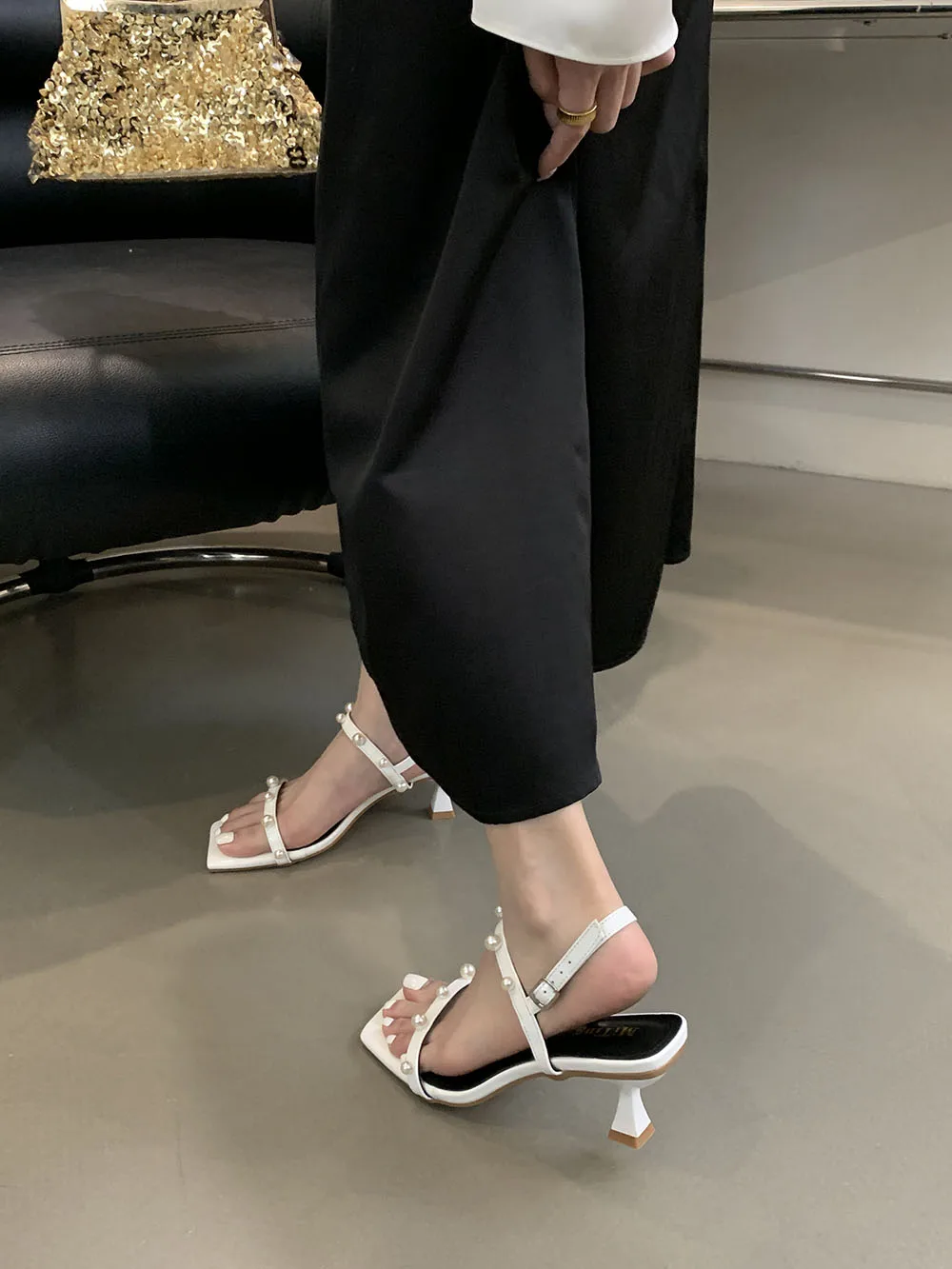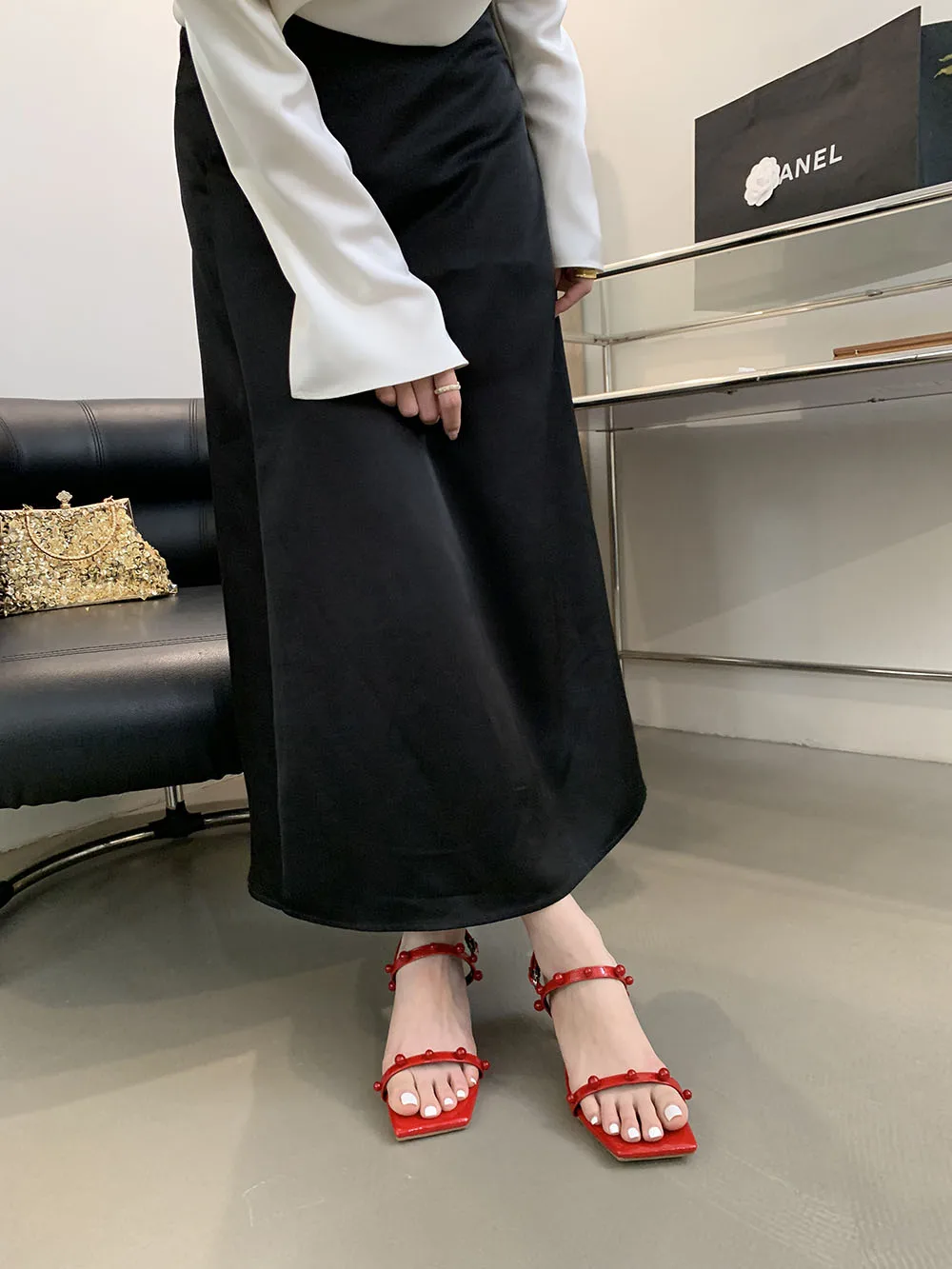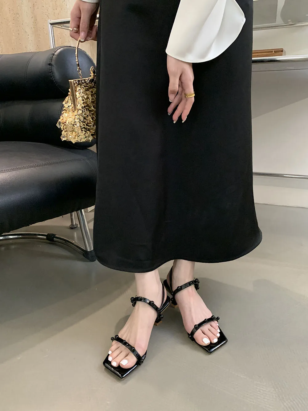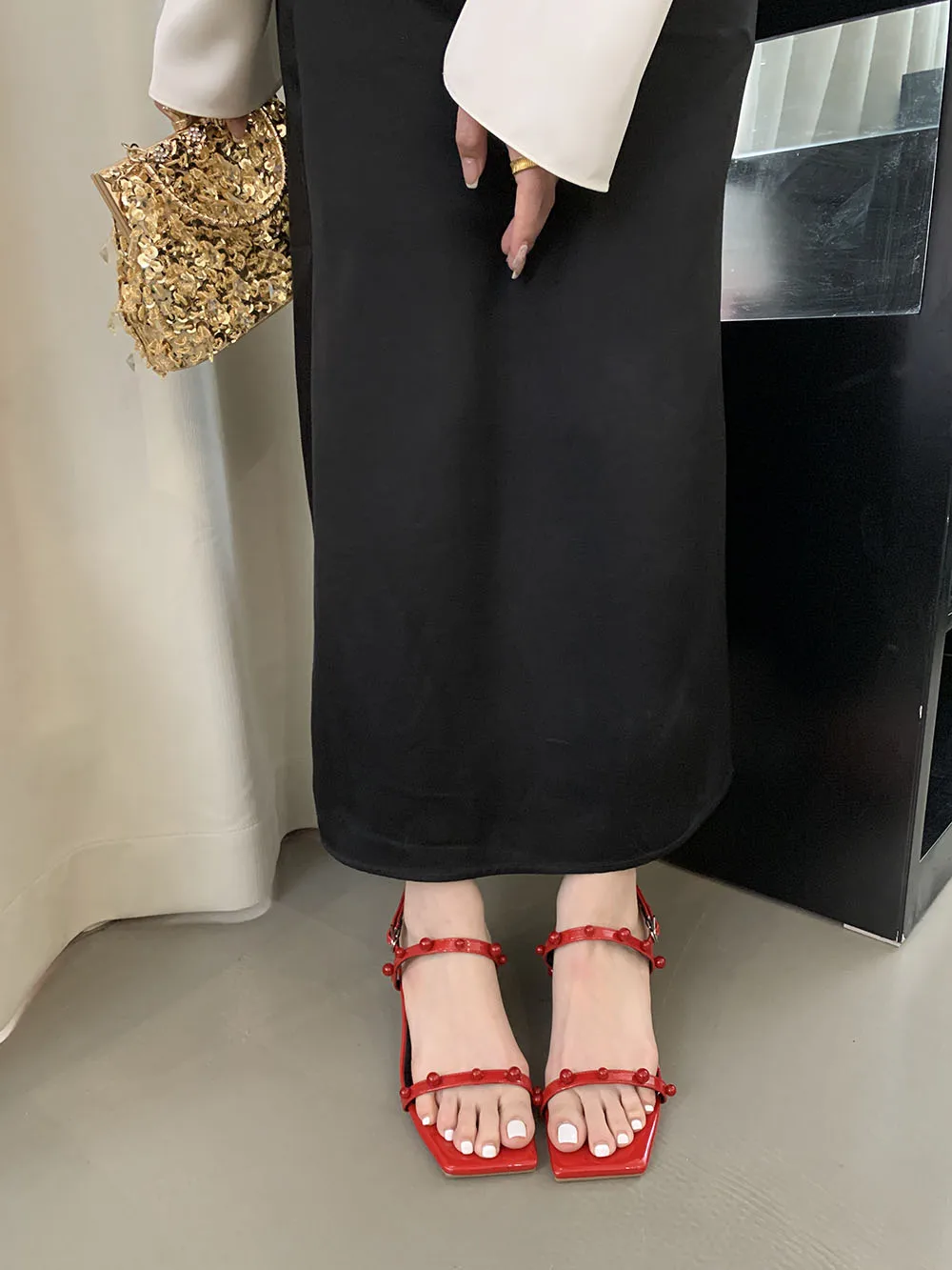 LBSFY - Fashion Women Sandals Narrow Band Patent Leather Summer Dress Shoes Thin High Heels Ankle Strap Party Slides Mules Shoes Size 39