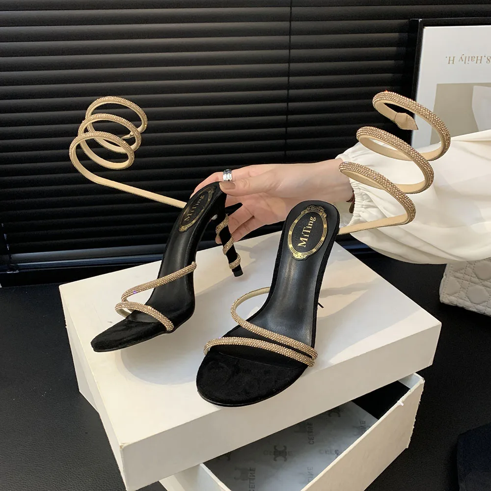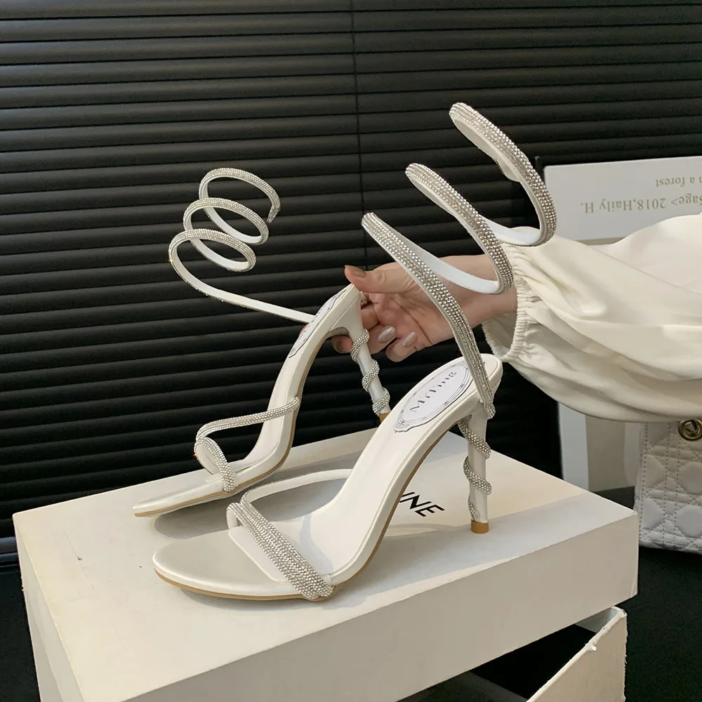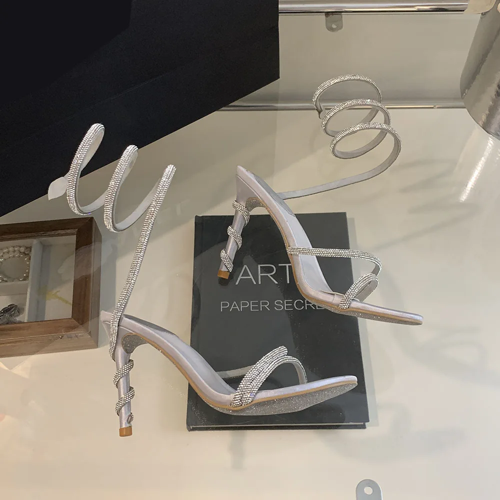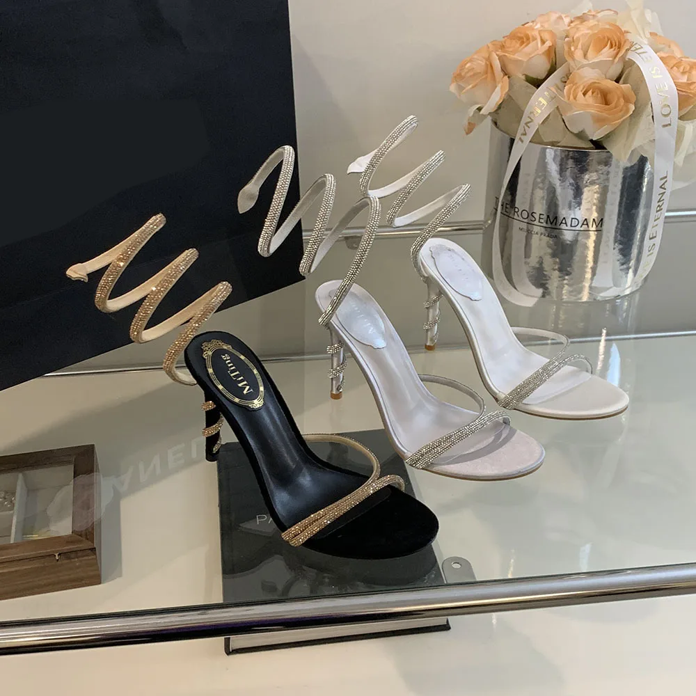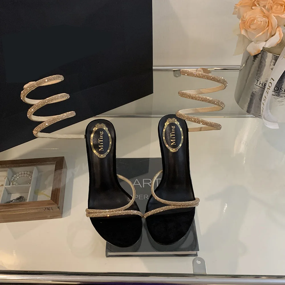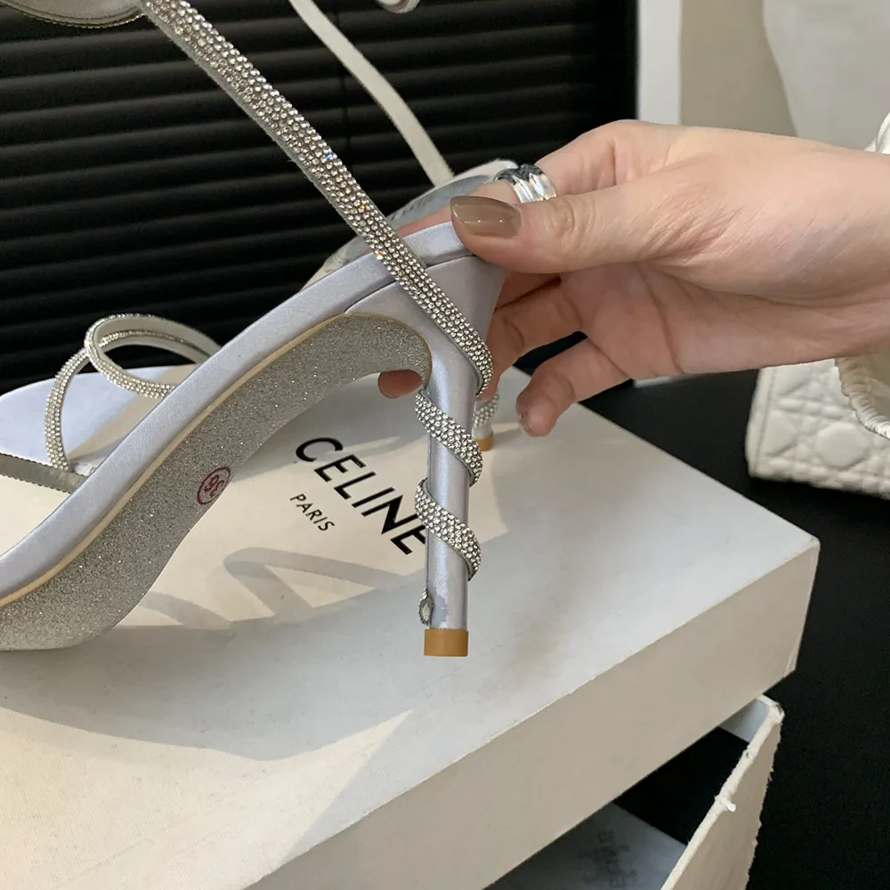 LBSFY - Fashion Women Sandals Narrow Band Summer Dress Shoes Thin High Heels Stiletto Party Pumps Crystal Shallow Slip On Sandals 35-39