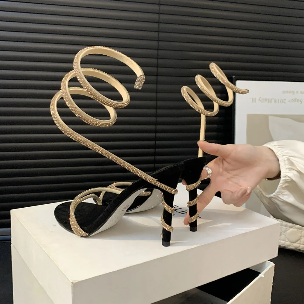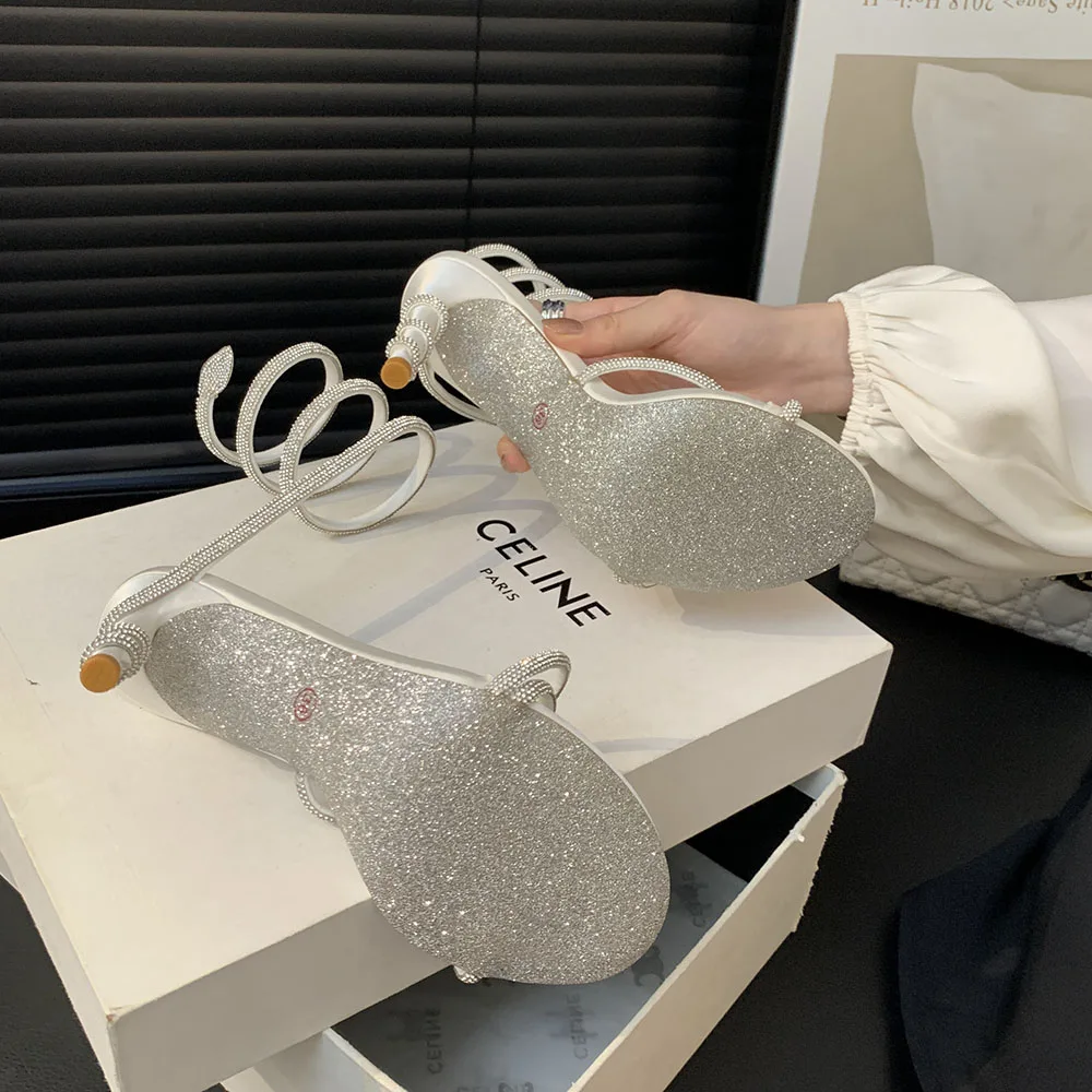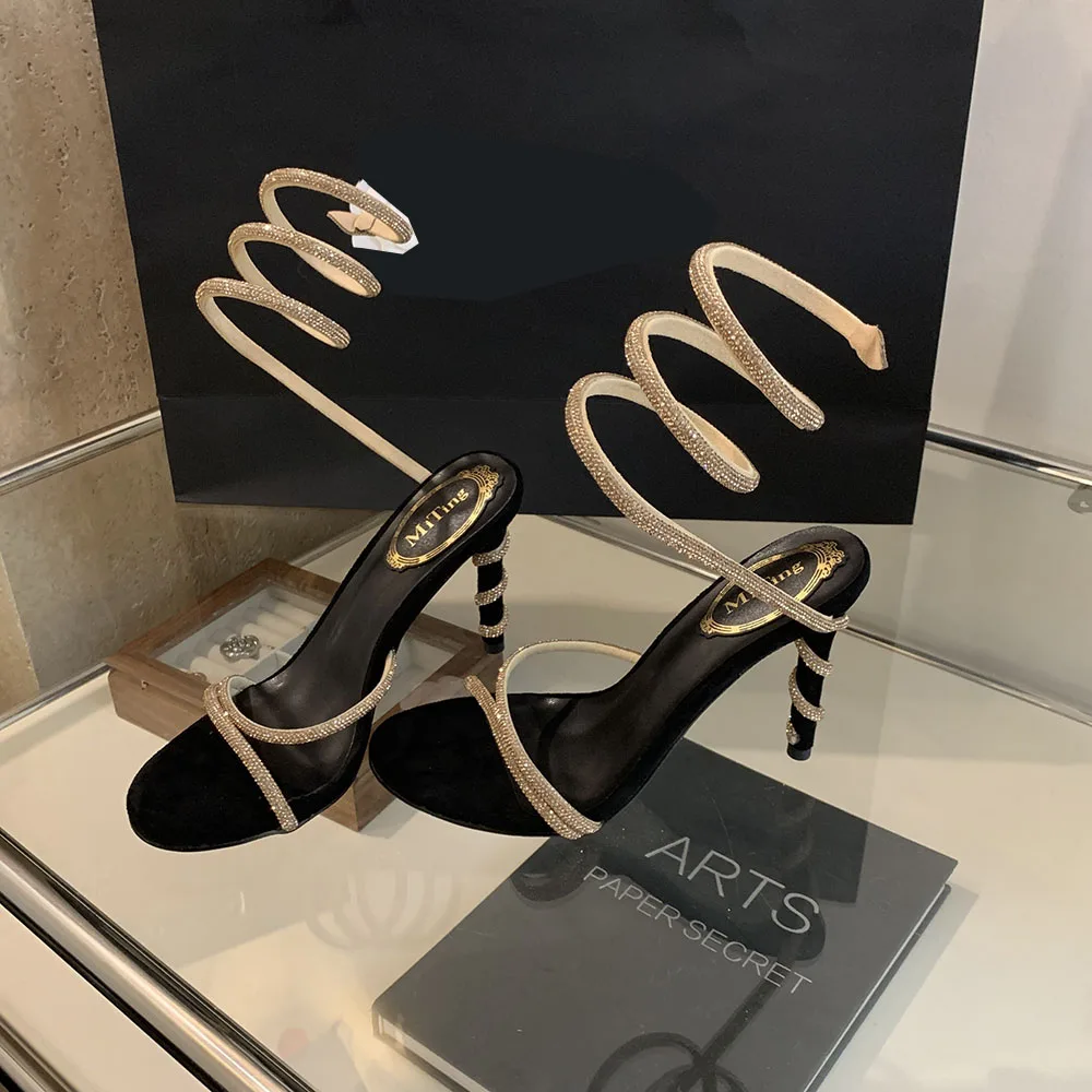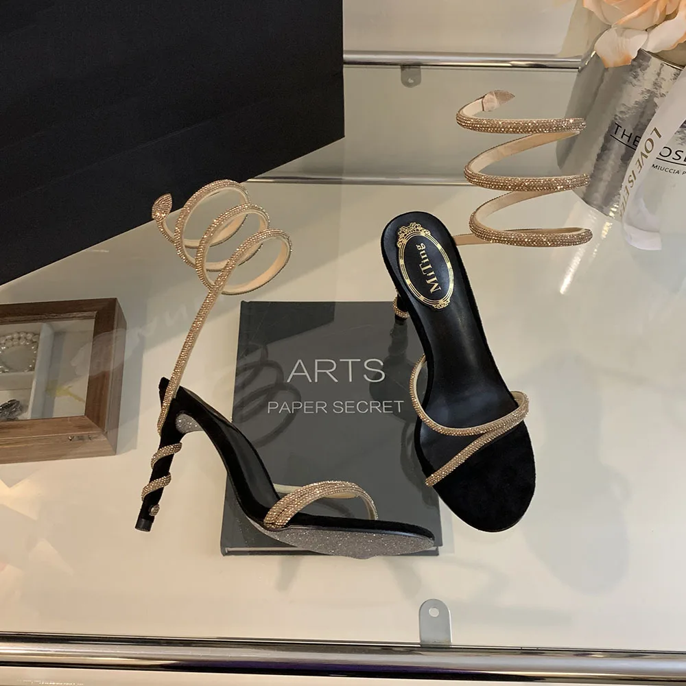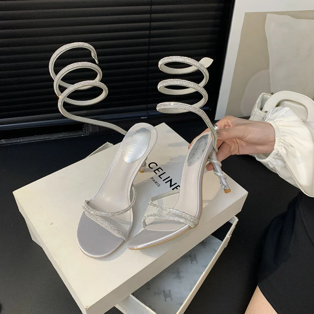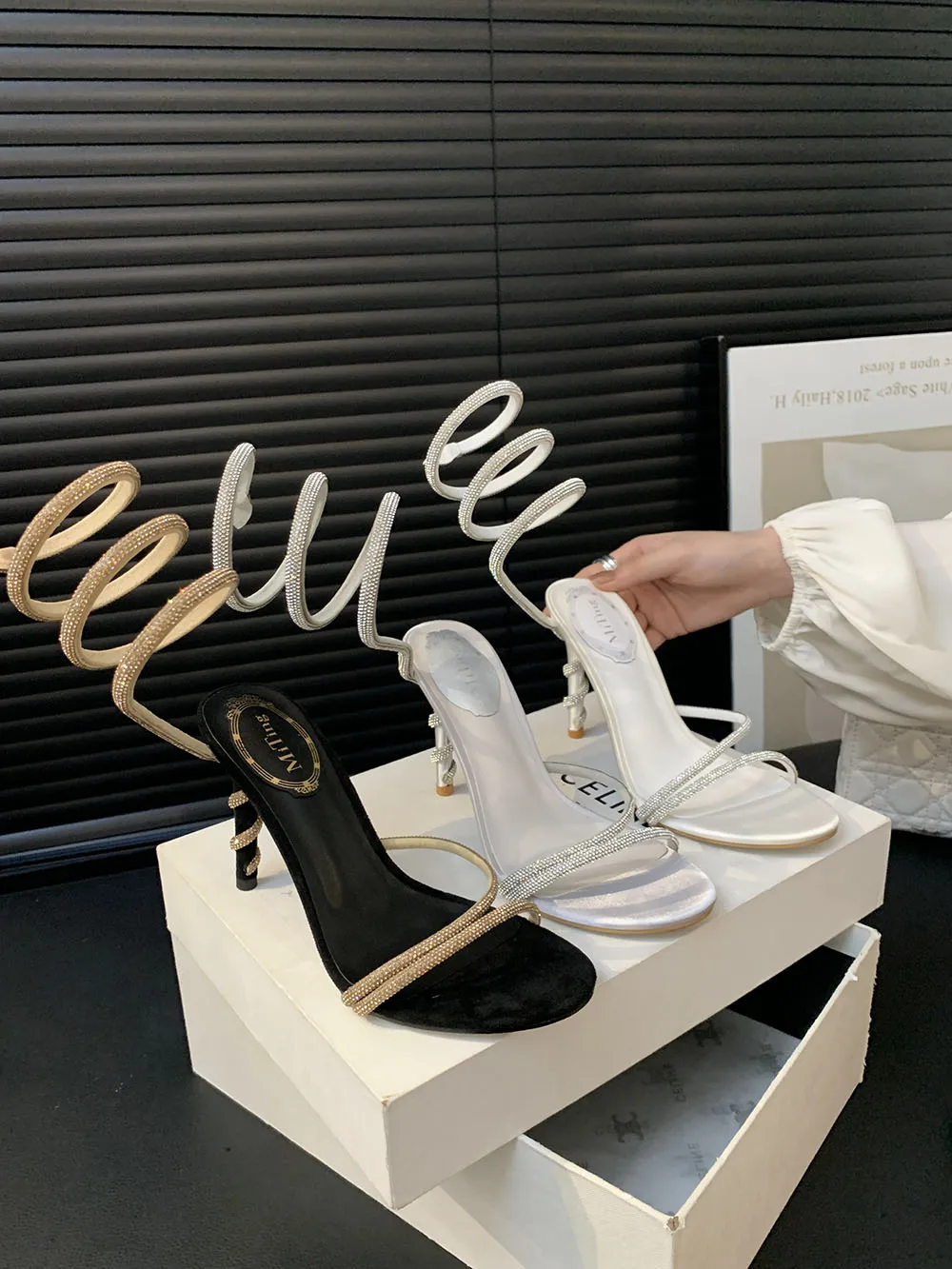 LBSFY - Fashion Women Sandals Narrow Band Summer Dress Shoes Thin High Heels Stiletto Party Pumps Crystal Shallow Slip On Sandals 35-39